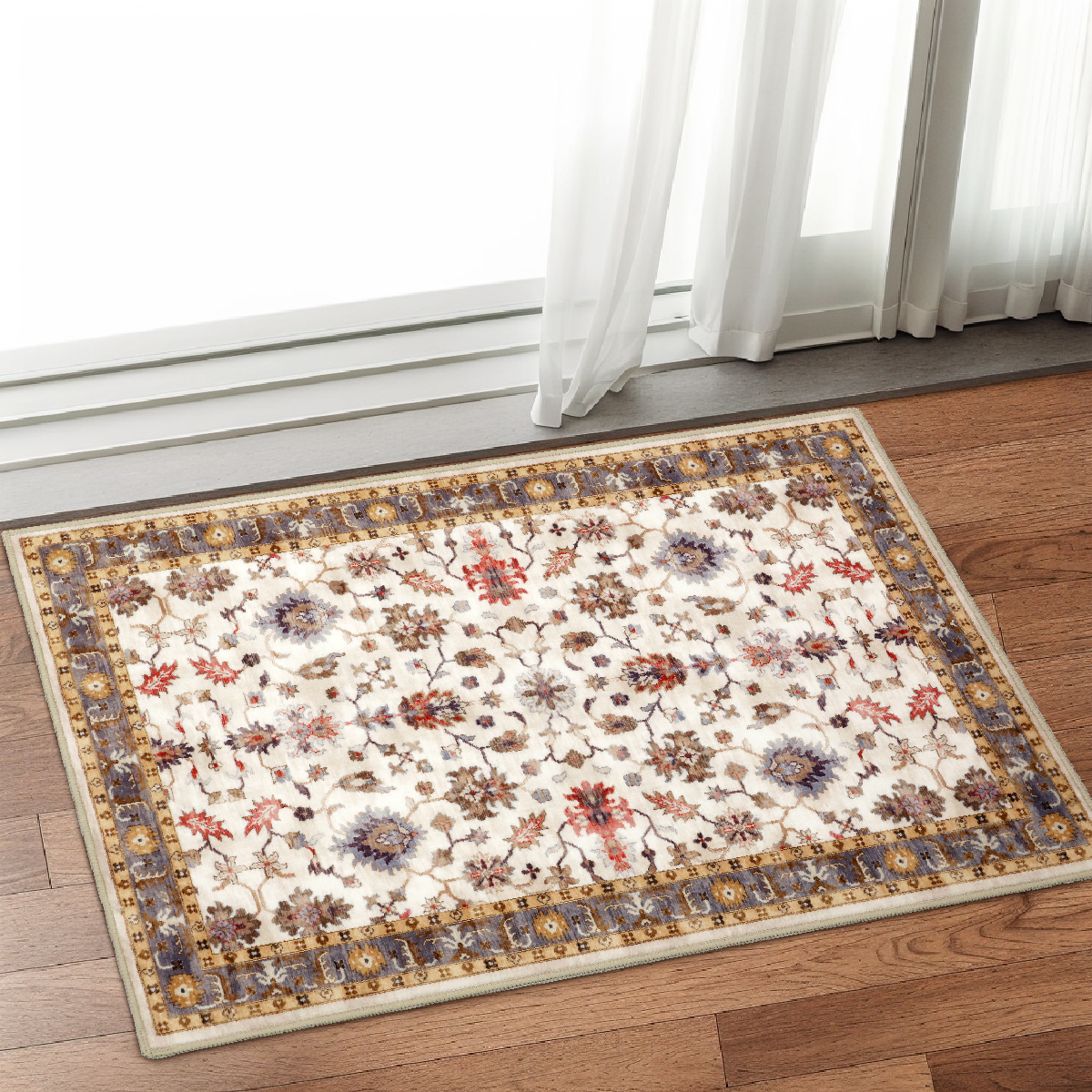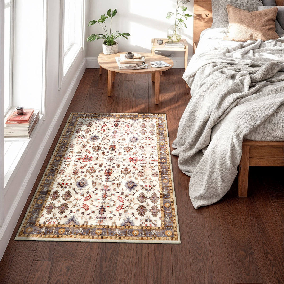 Decor Non-Slip Back Soft Runner Area Carpet Floor Area Rug Indoor Accent Decorative Mat, Elegant Ivory Floral and Leaves