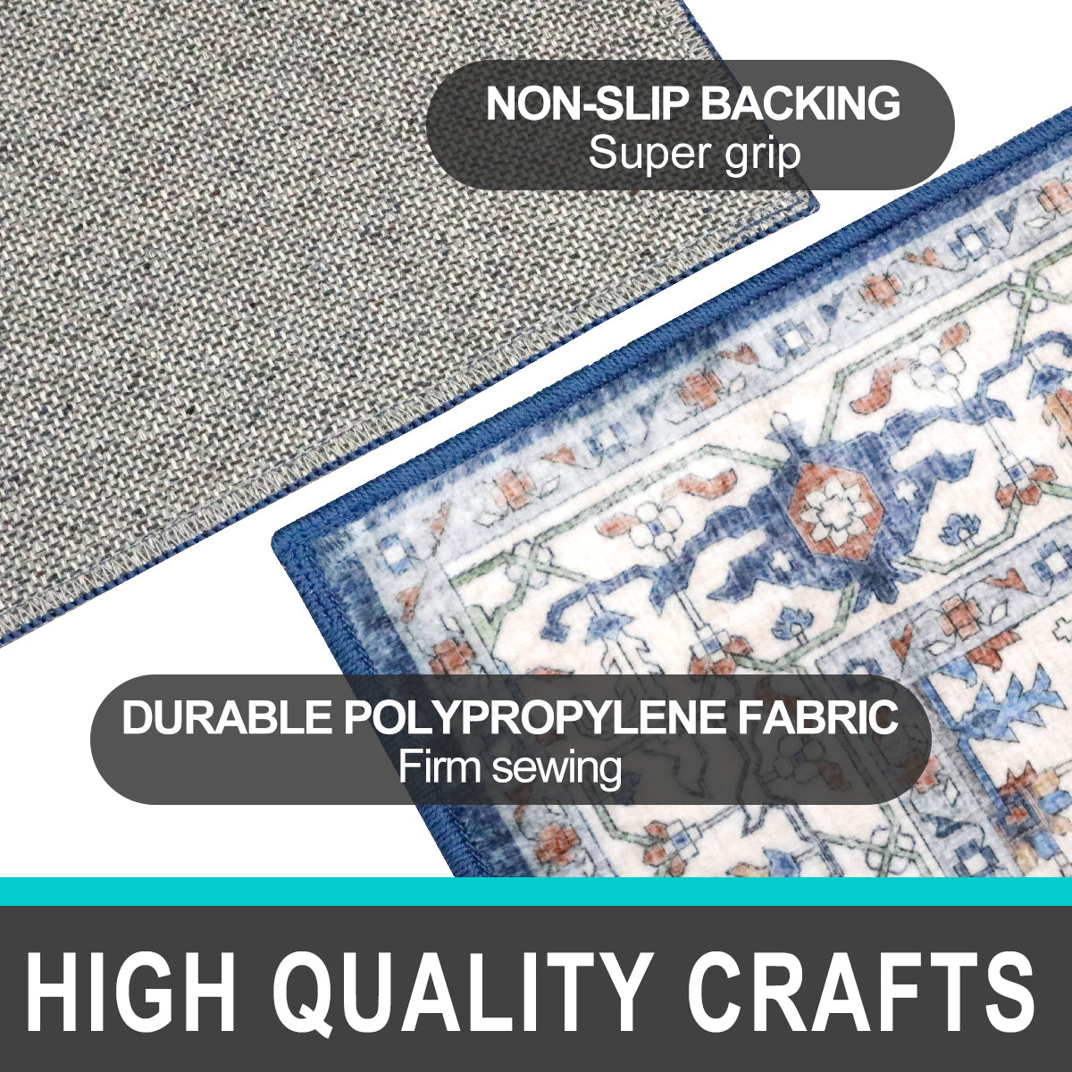 - Non-Slip Safety: Anti-slip Rubber Backing Non-Slip Surface