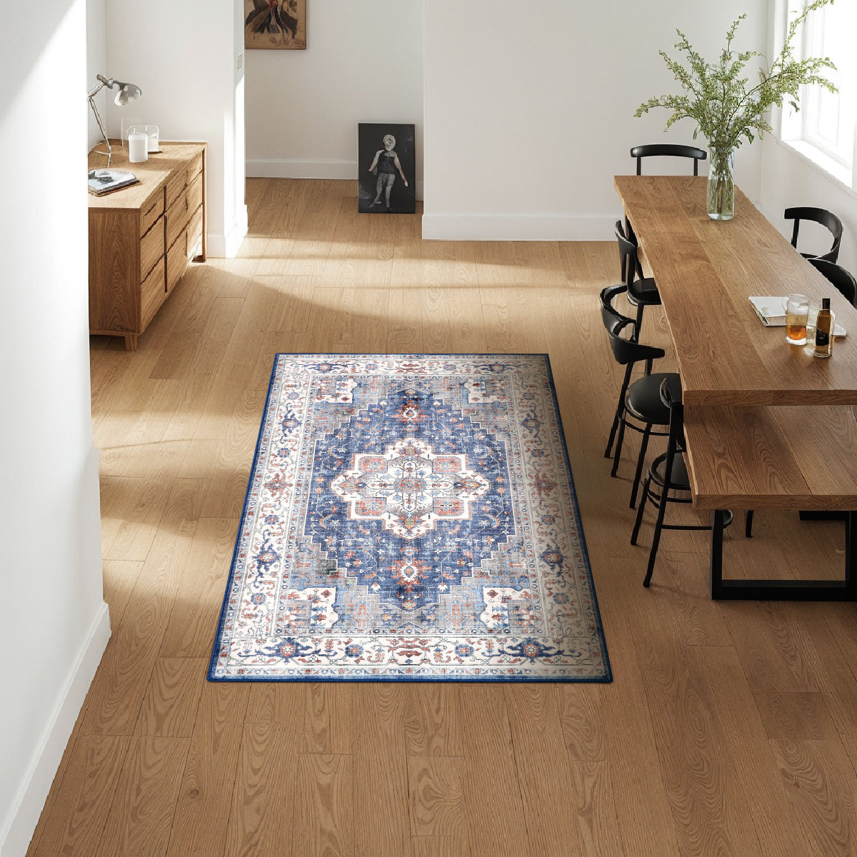 Decor Non-Slip Back Soft Runner Area Carpet Floor Area Rug Indoor Accent Decorative Mat, Modern Blue Red Floral