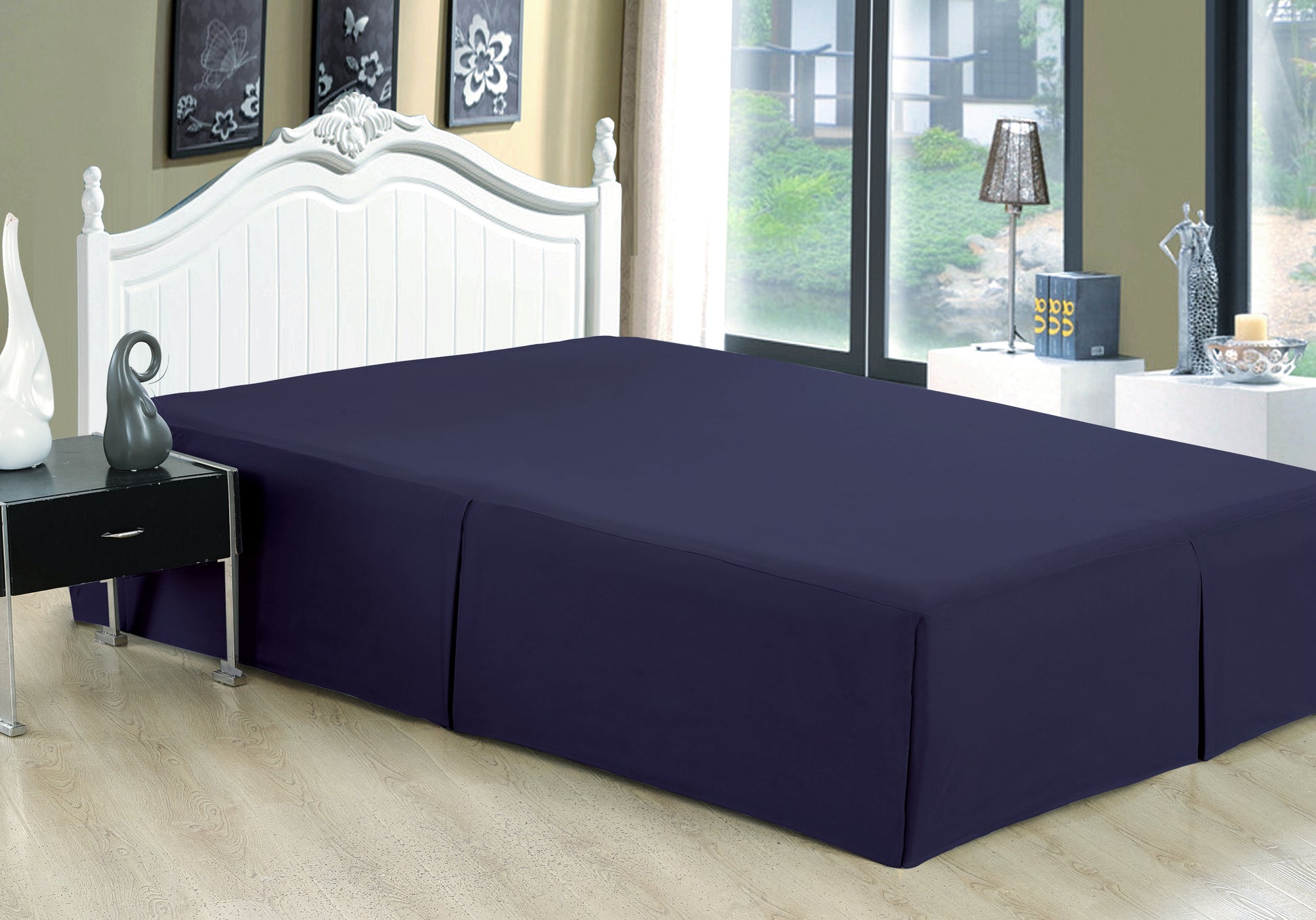 Solid Tailored Rayon from Bamboo Soft Bedskirt All Season Deep Pocket Dust Ruffle Bed Skirt, Navy Blue