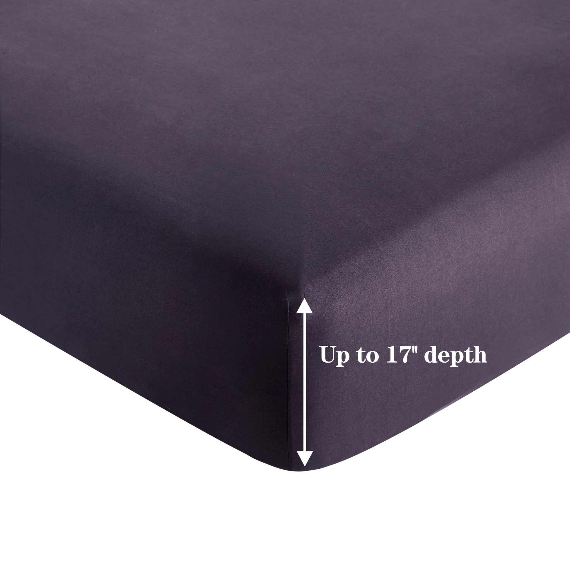 Solid Rayon from Bamboo Soft Silky Deep Pocket All Season Bedding Wrinkle Free Fitted Sheet, Eggplant
