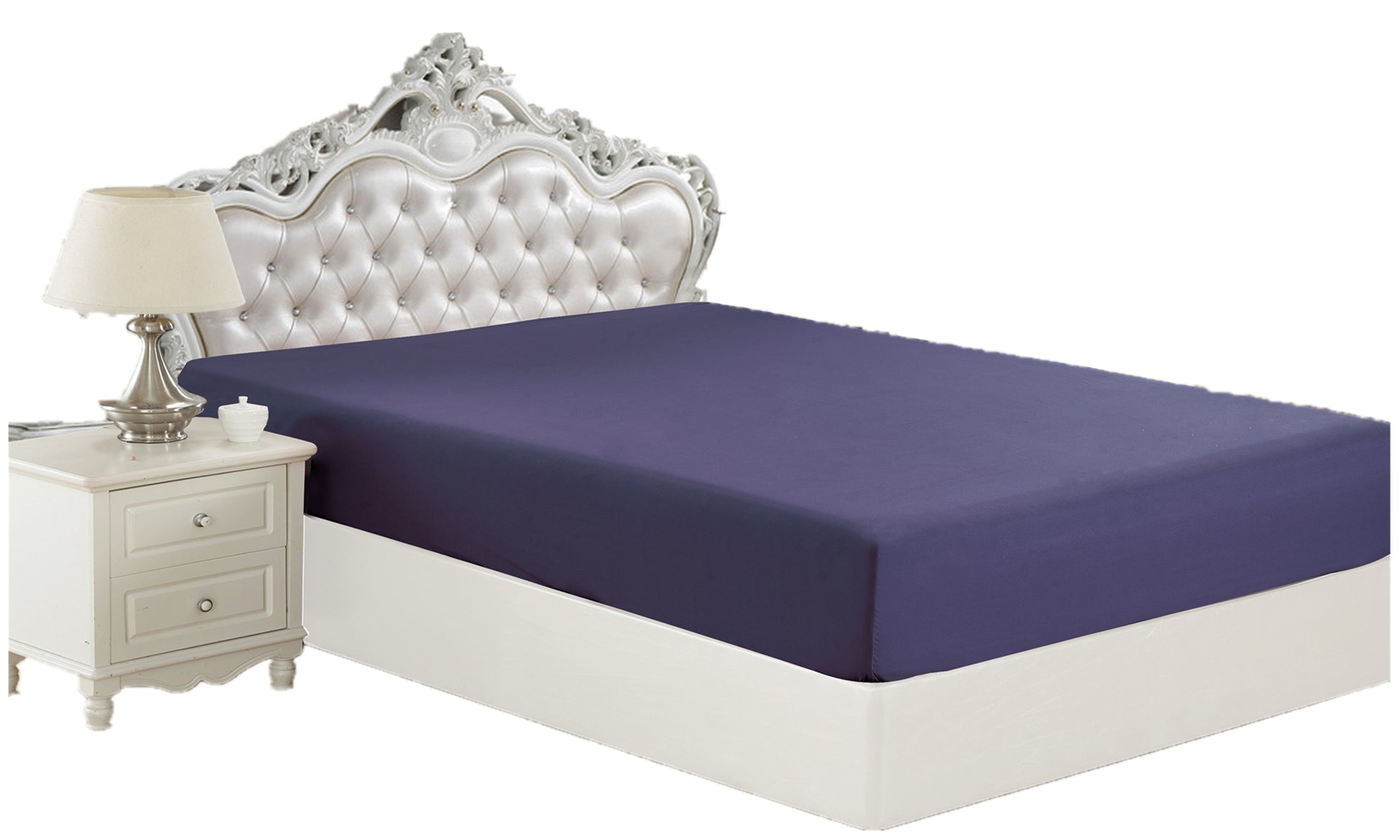 Solid Rayon from Bamboo Soft Silky Deep Pocket All Season Bedding Wrinkle Free Fitted Sheet, Navy Blue