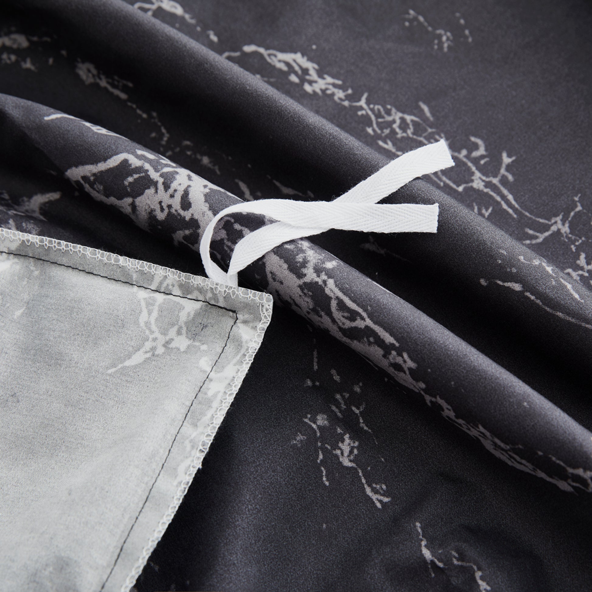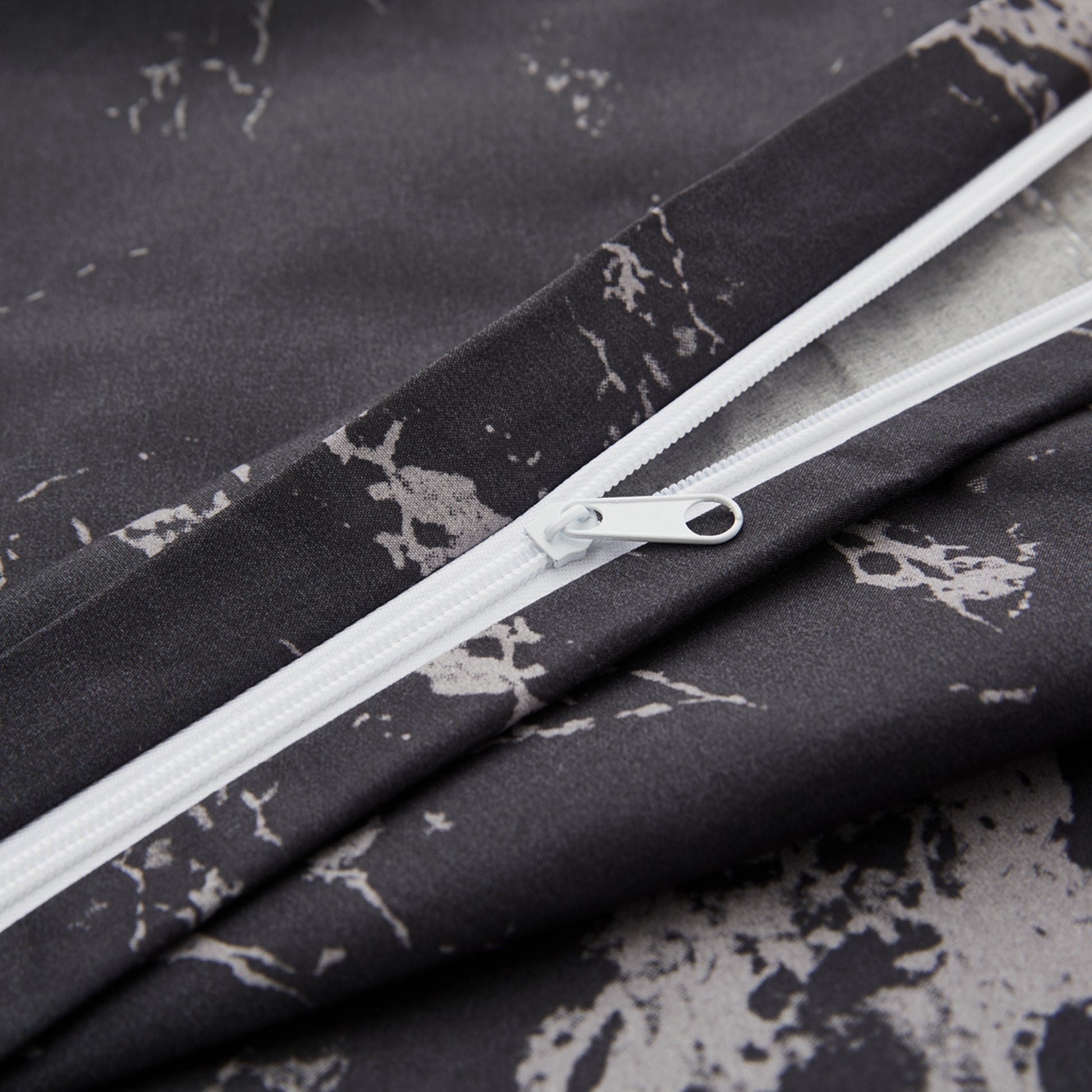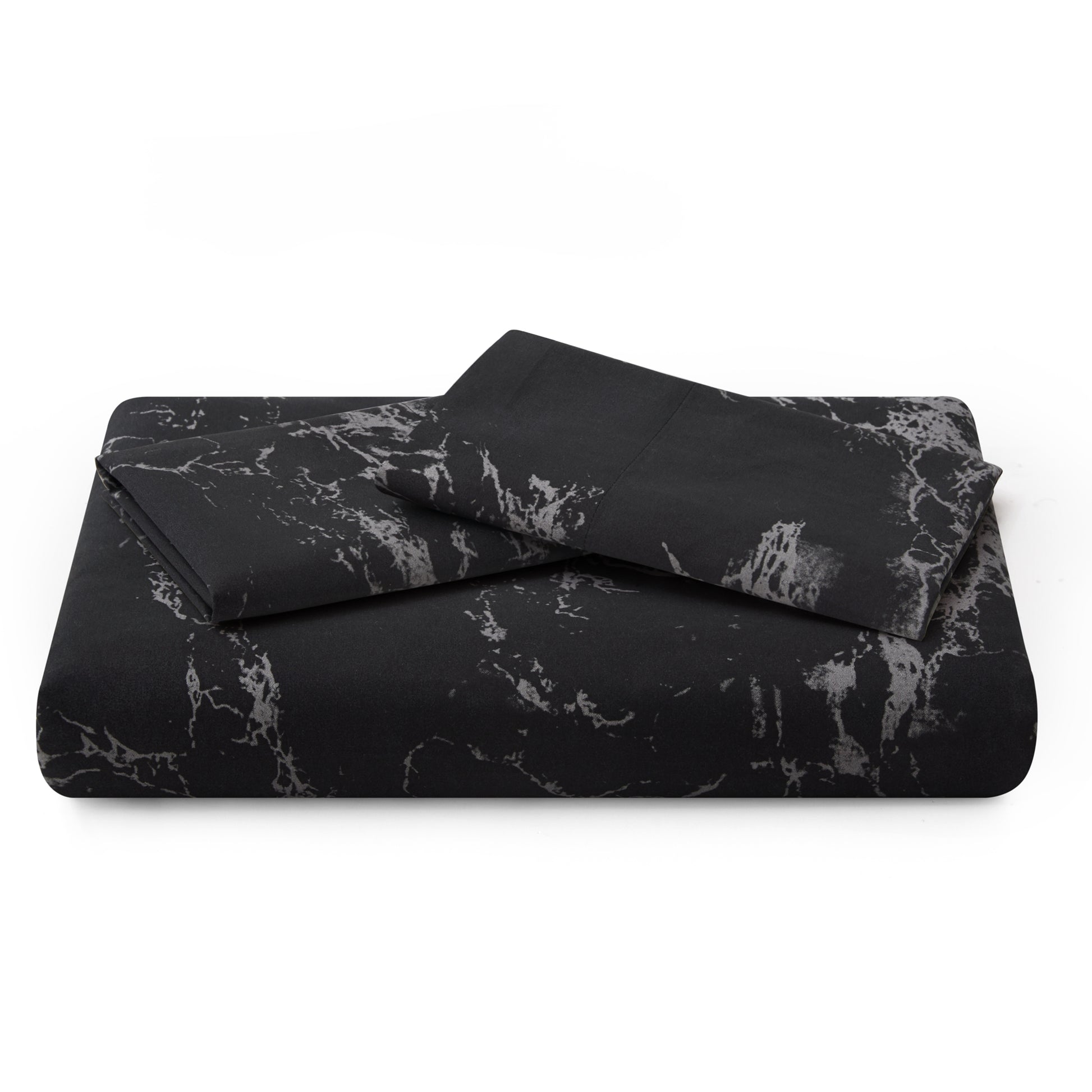 Design - Modern Natural Patterns Have Black Base with Grey Marble Decorated on It. Printed Matching Design on the 2 Pillowcases. Our 120 GSM Double Brushed Polyester and Rayon from Bamboo is Soft and Durable and Features a Breathable Weave