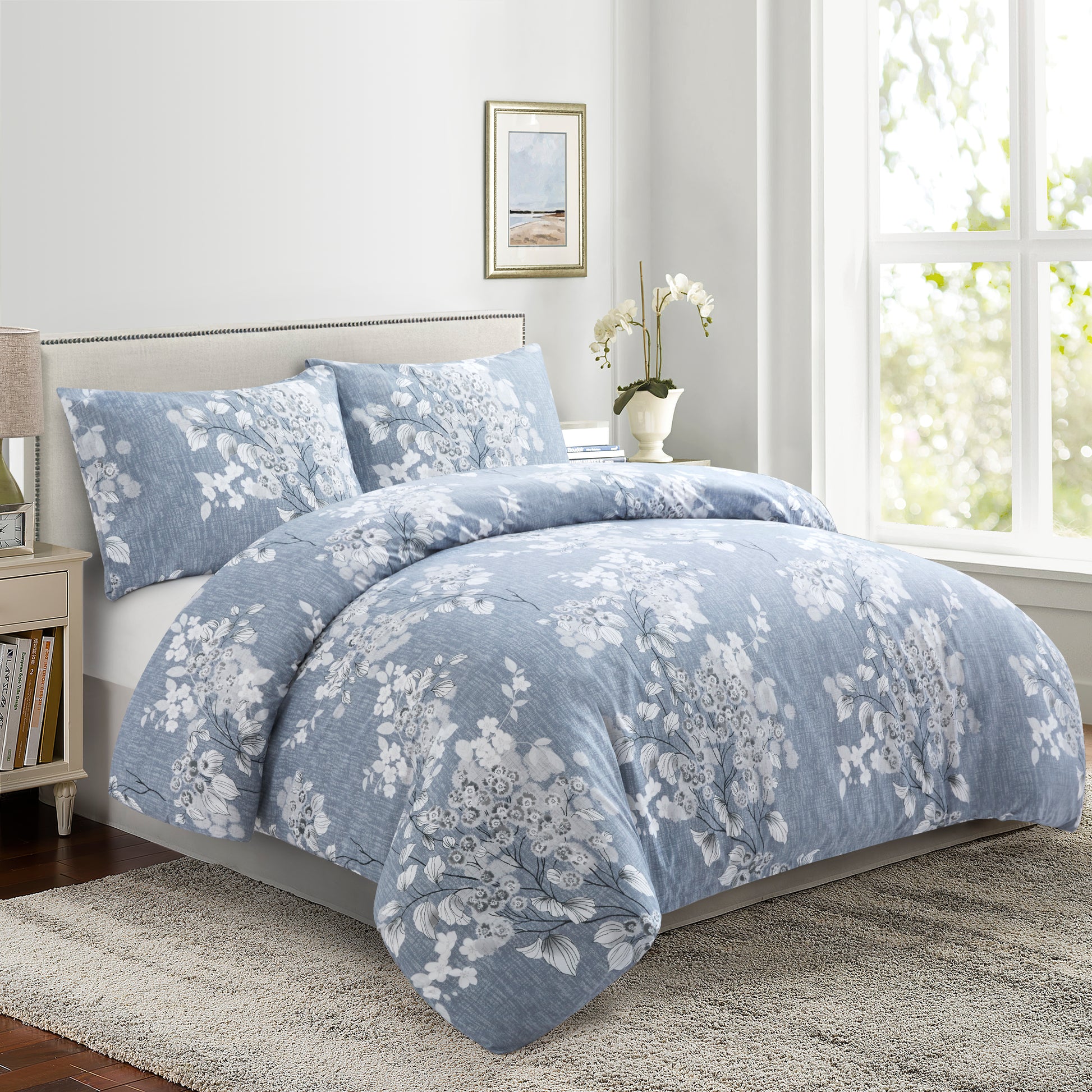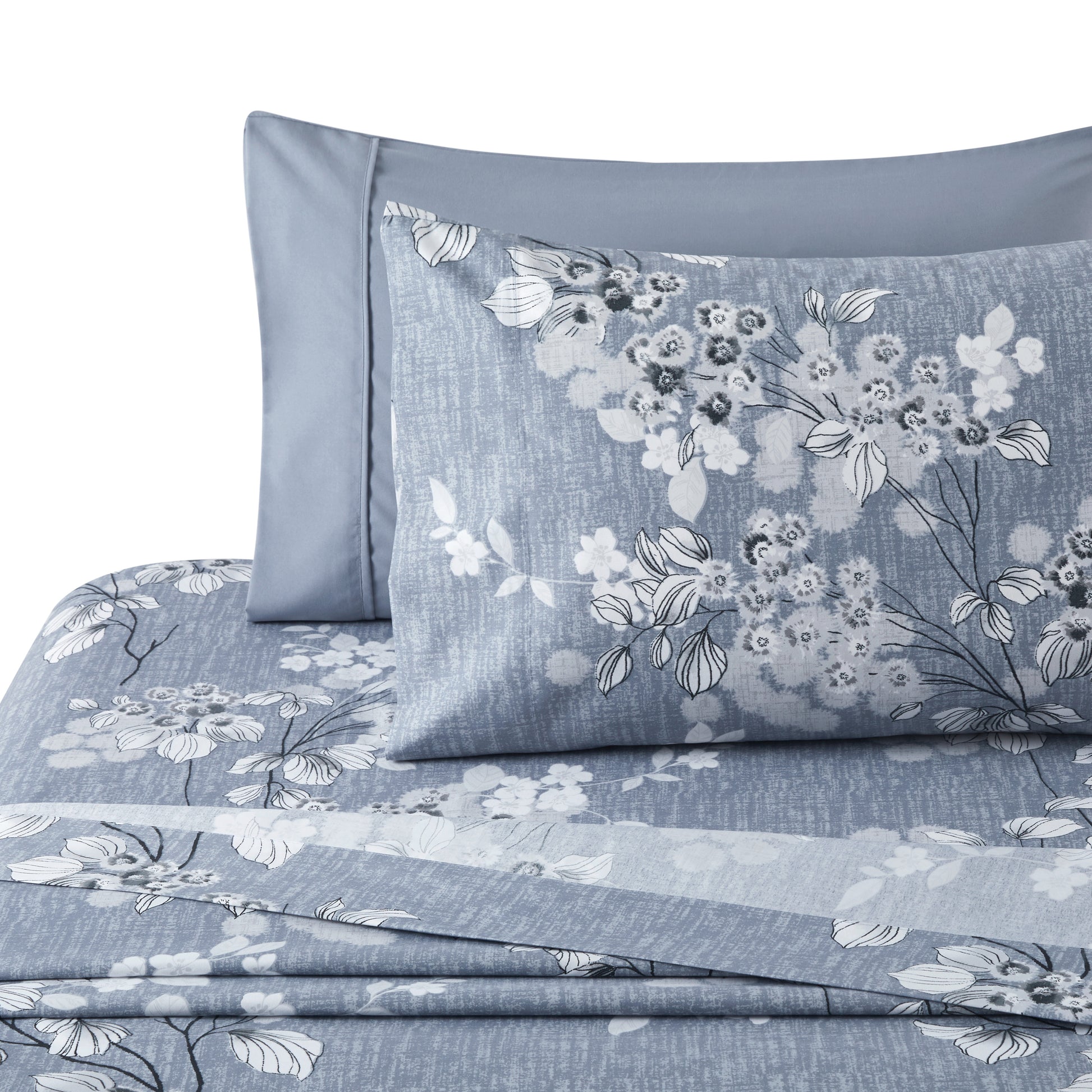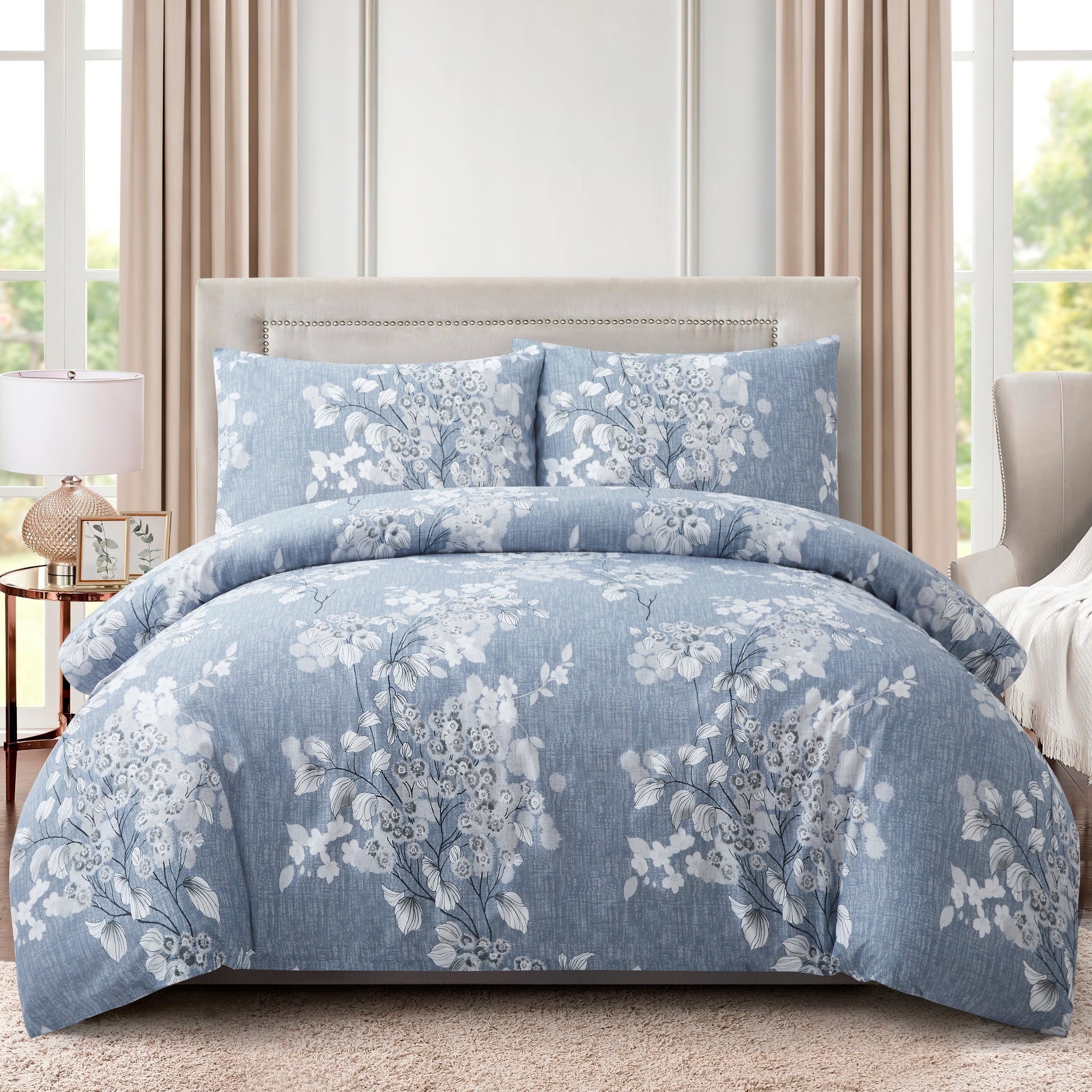 Design - Modern Flowers Patterns have Blue Grey Base with Romantic Inkwash White Floral and Leaves Decorated on It. Printed Matching Design on the 2 Pillowcases. Our 120 GSM Double Brushed Polyester and Rayon from Bamboo is Soft and Durable and Features a Breathable Weave