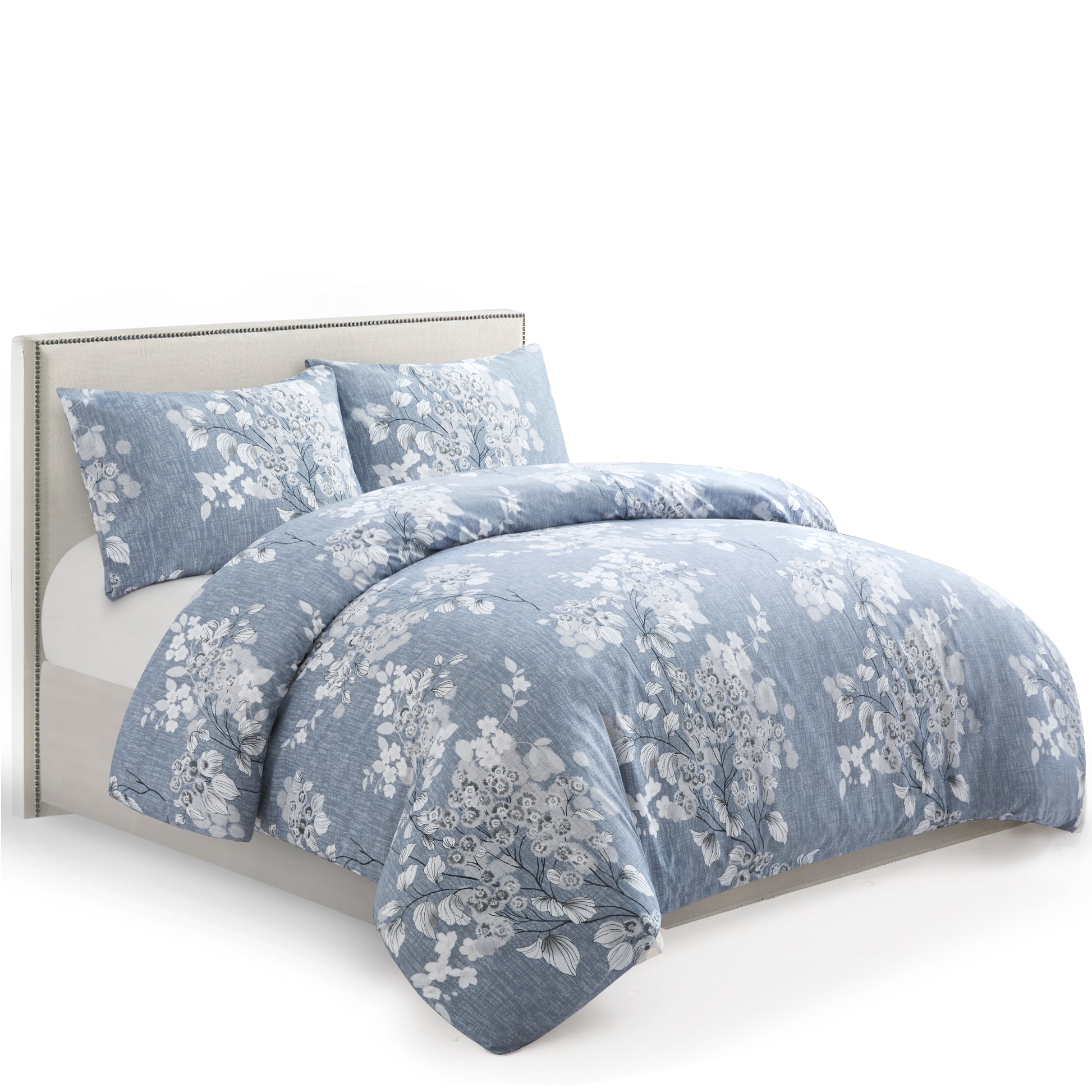 Printed Rayon from Bamboo Soft Bedding Silky Zipper All Season Duvet Cover Set, Romantic Inkwash Floral