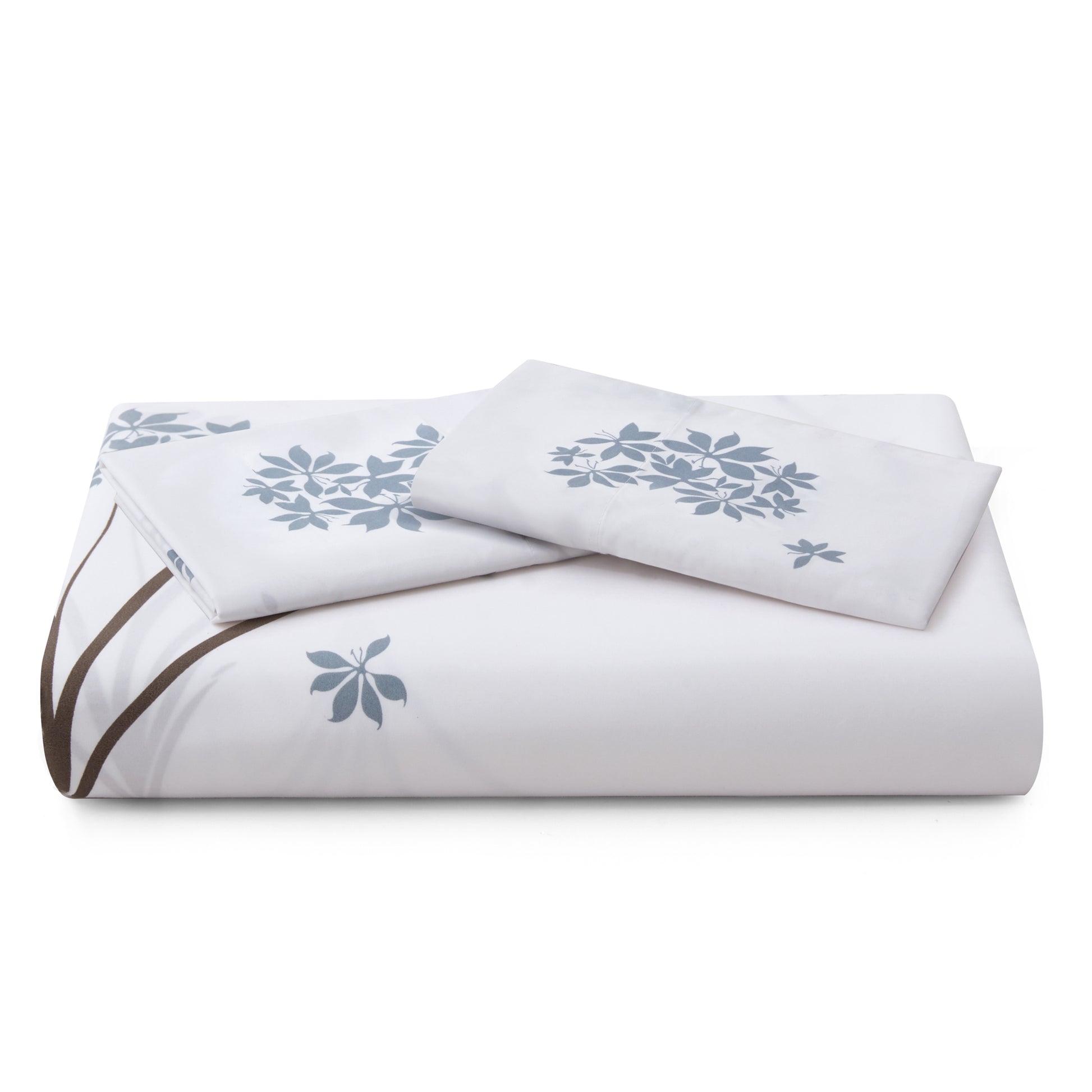 Design - Modern Flowers Patterns Have White Base with Grey Flower and Leases Branch Decorated on It. Printed Matching Design on the 2 Pillowcases. Our 120 GSM Double Brushed Polyester and Rayon from Bamboo is Soft and Durable and Features a Breathable Weave