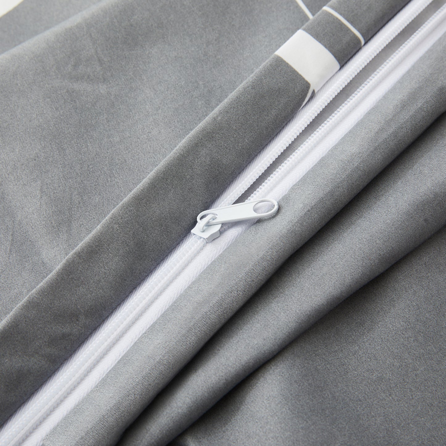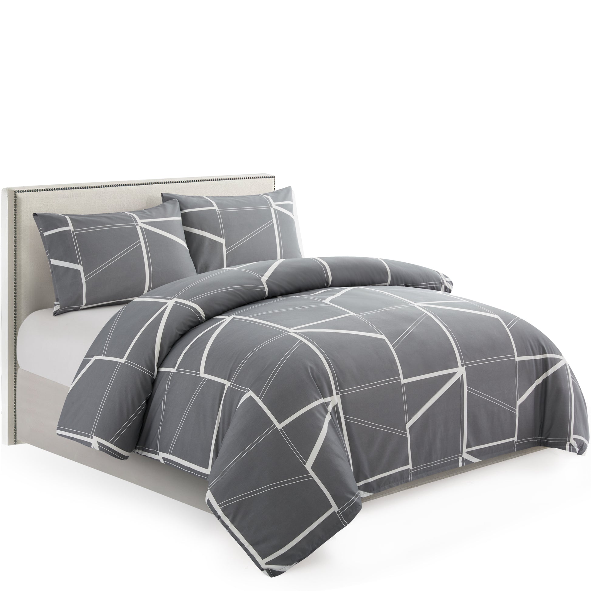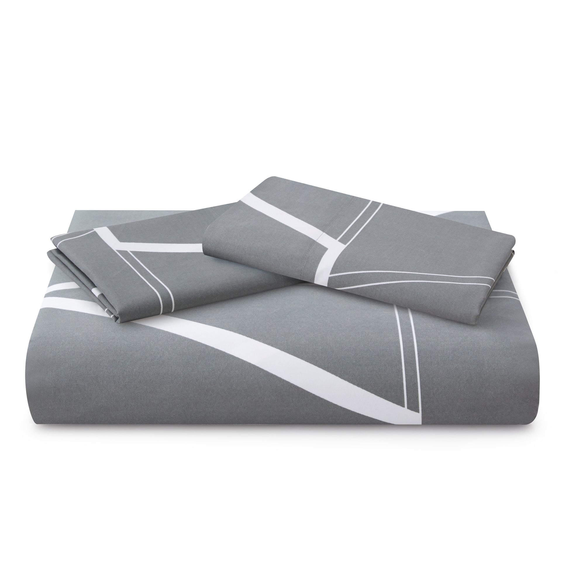 Design - Modern Geometric Patterns Have Grey Base with White Lines and Triangle Decorated on It. Printed Matching Design on the 2 Pillowcases. Our 120 GSM Double Brushed Polyester and Rayon from Bamboo is Soft and Durable and Features a Breathable Weave