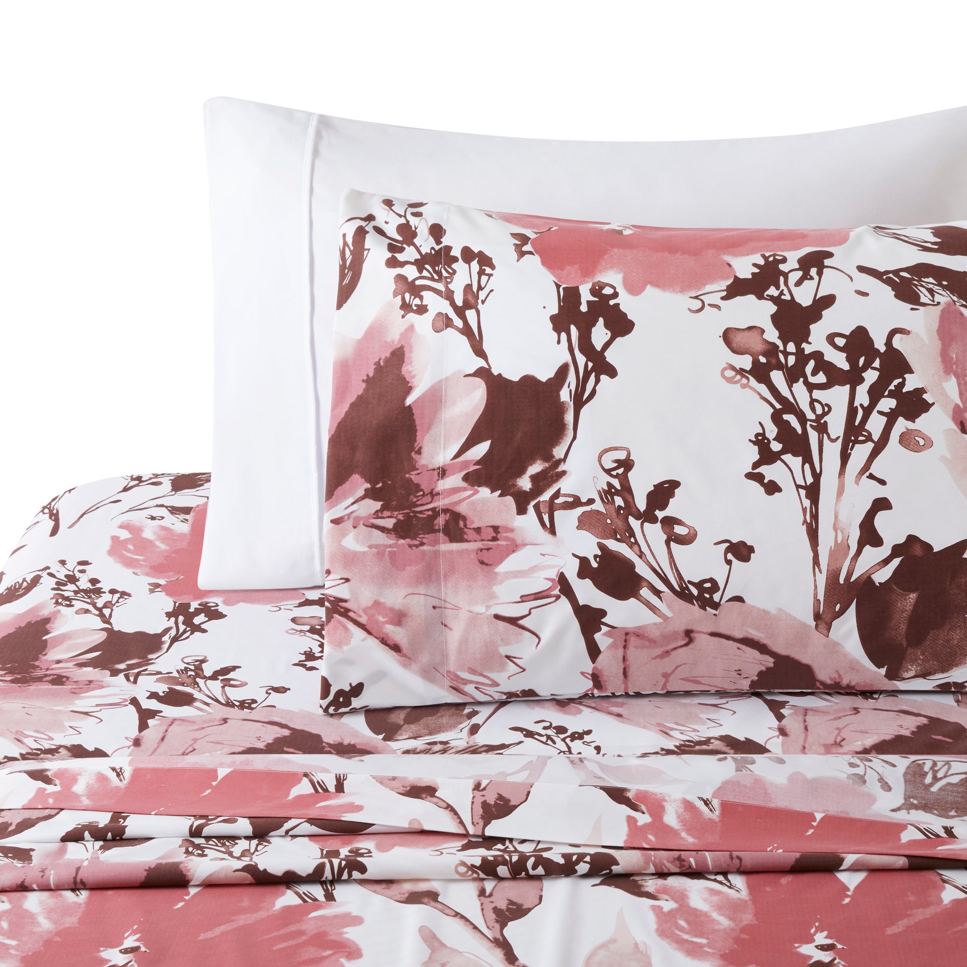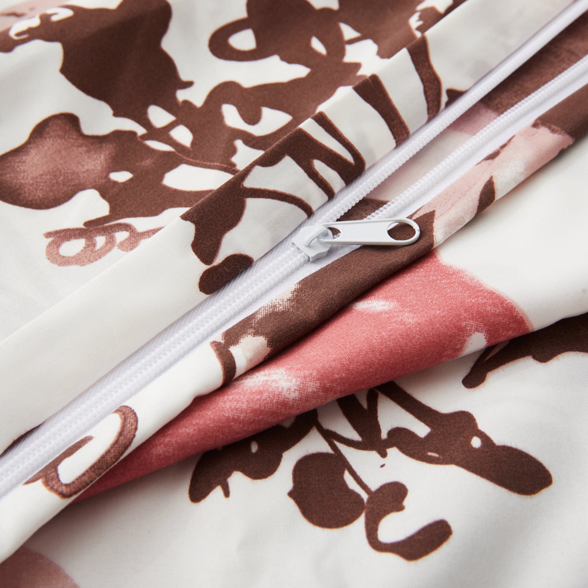 Design - Modern Flower Patterns have White Base with Red Pink Flowers, and Brown Branch and Leaves Decorated on It. Printed Matching Design on the 2 Pillowcases. Our 120 GSM Double Brushed Polyester and Rayon from Bamboo is Soft and Durable and Features a Breathable Weave