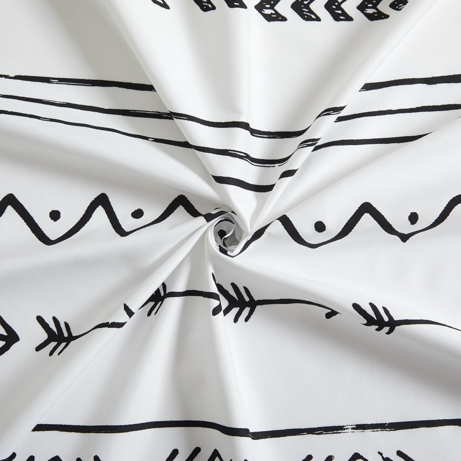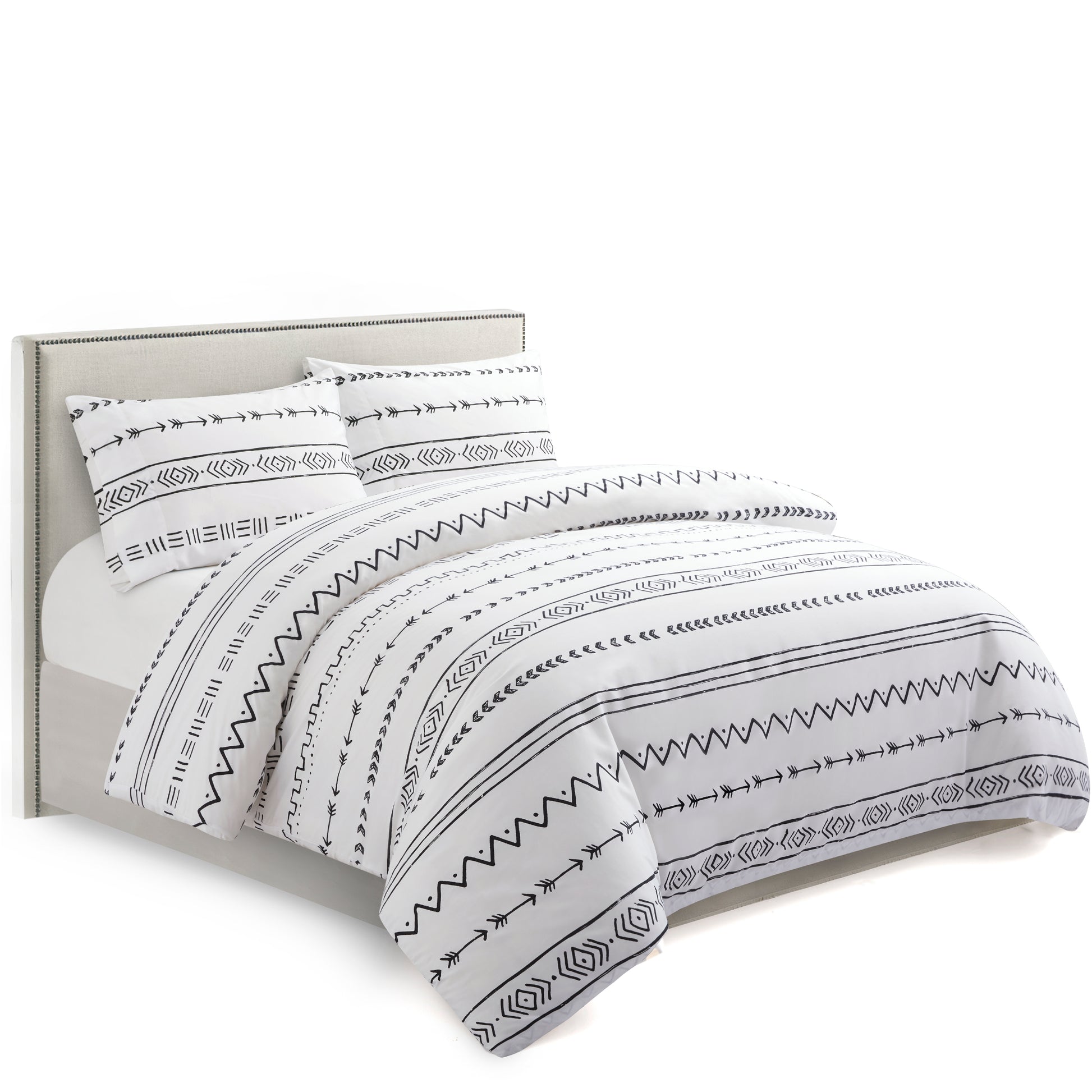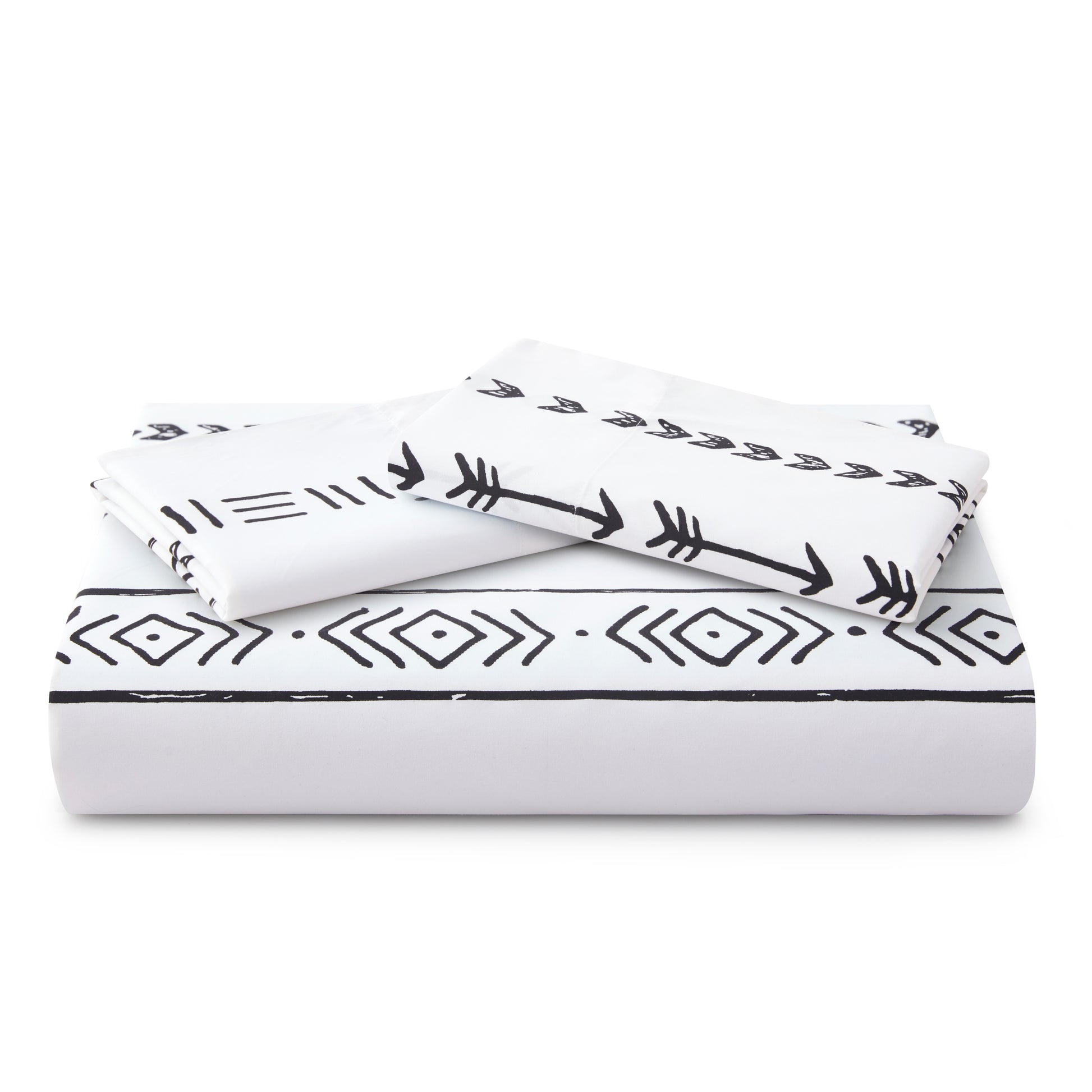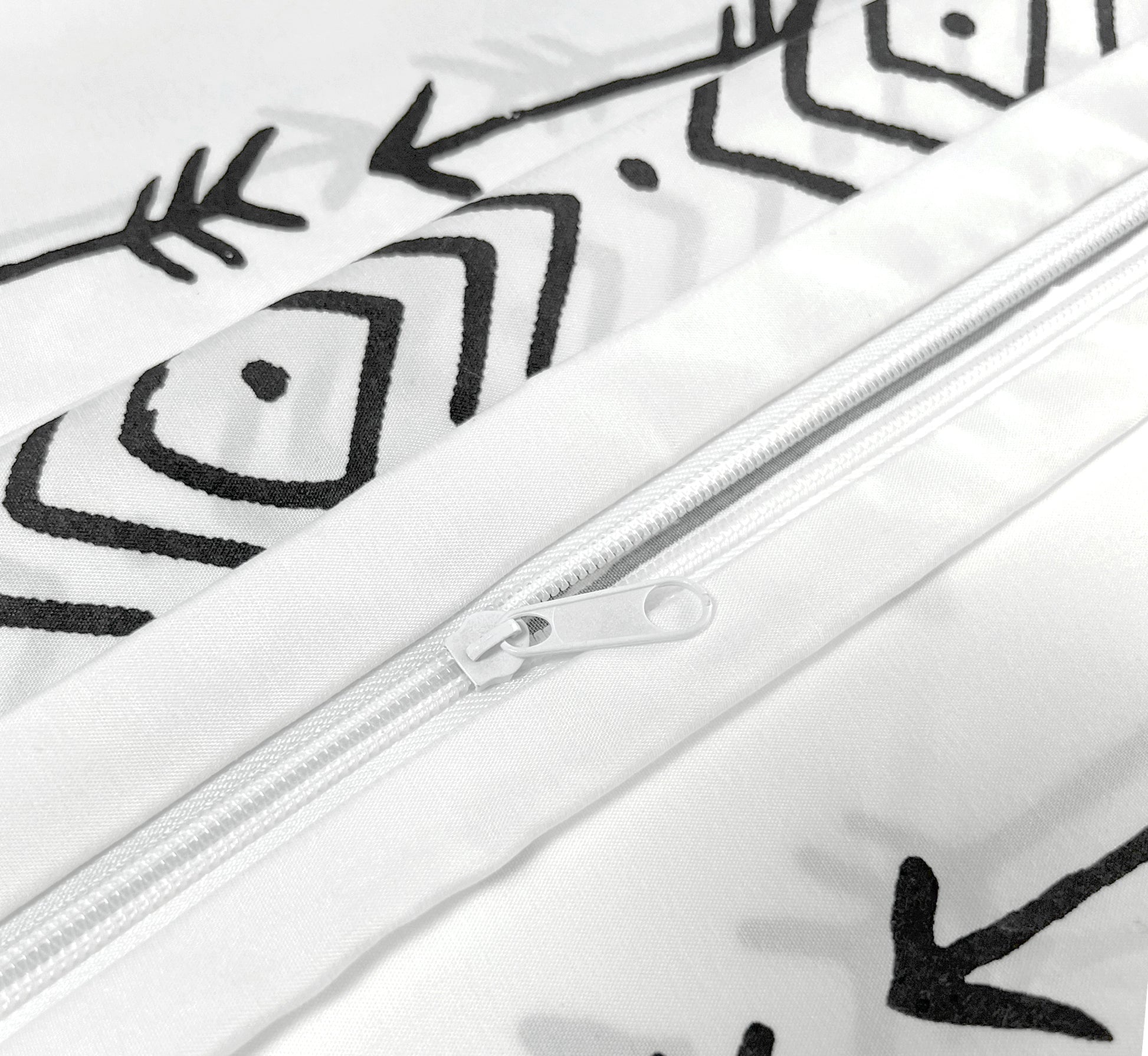 Design - Simplify Modern Geometric Patterns have White Base with Black Rustic Native American Indian and Arrow Pattern Decorated on It. Printed Matching Design on the 2 Pillowcases. Our 120 GSM Double Brushed Polyester and Rayon from Bamboo is Soft and Durable and Features a Breathable Weave