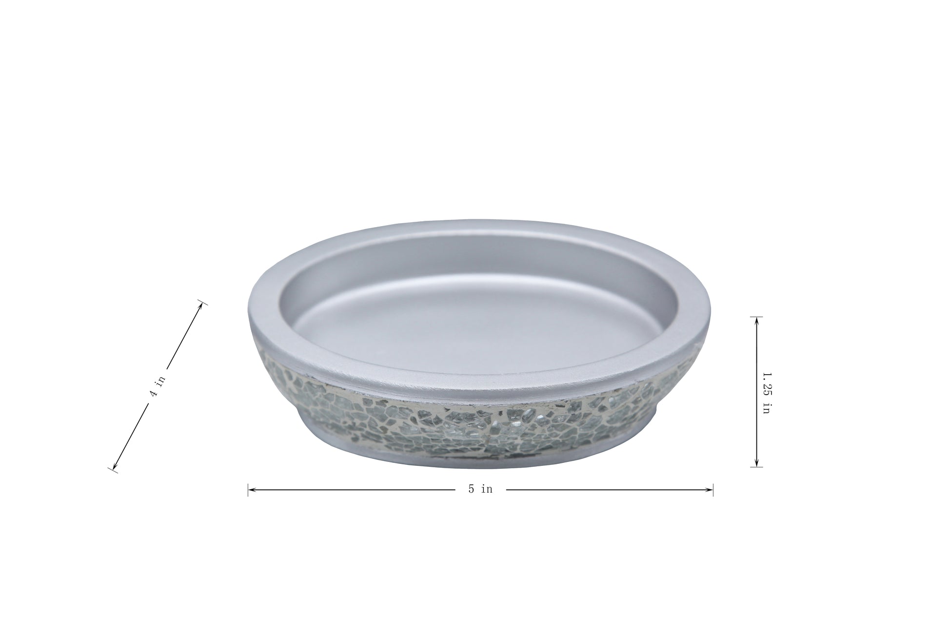 Modern Luxury Décor Bath Accessory Ensemble Bathroom Lotion Dispenser Toothbrush Holder Tumbler Soap Dish, Silver Mosaic Glass