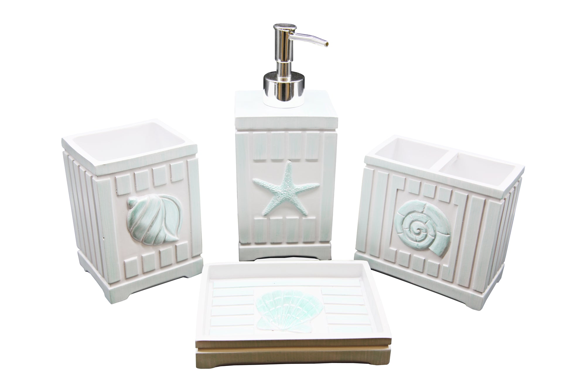 Design - This Beach Style Fashion Set is Uniquely Designed to Create a Summer Beach Environment with Green White Seashell, Starfish, Conch, Trumpet Shell. This Beautiful Set Can Elegantly Blend into Any Bathroom Setting, Bringing a Whole New Level of Style and Class