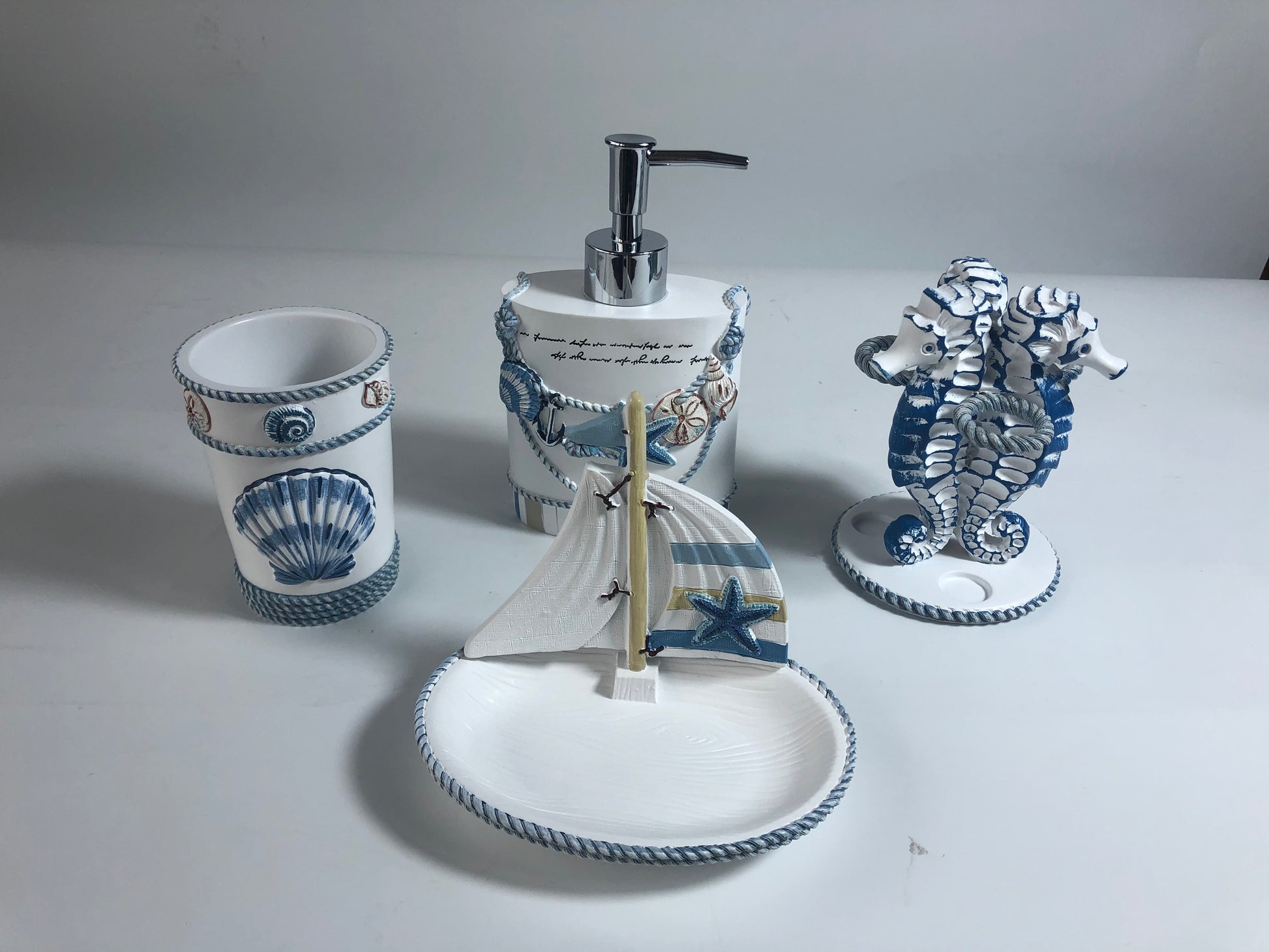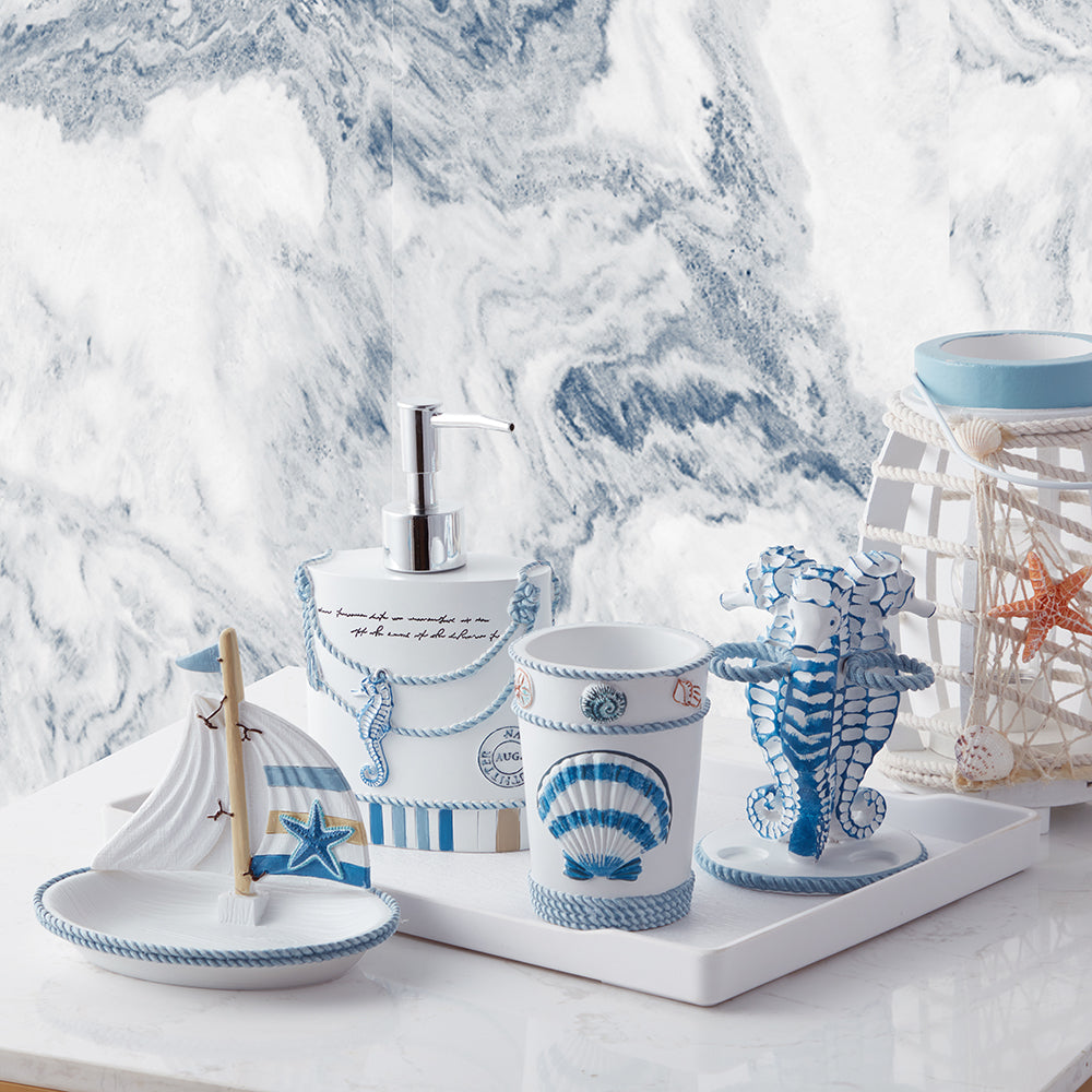 Modern Luxury Décor Bath Accessory Ensemble Bathroom Lotion Dispenser Toothbrush Holder Tumbler Soap Dish, Nautical Beach bohemian