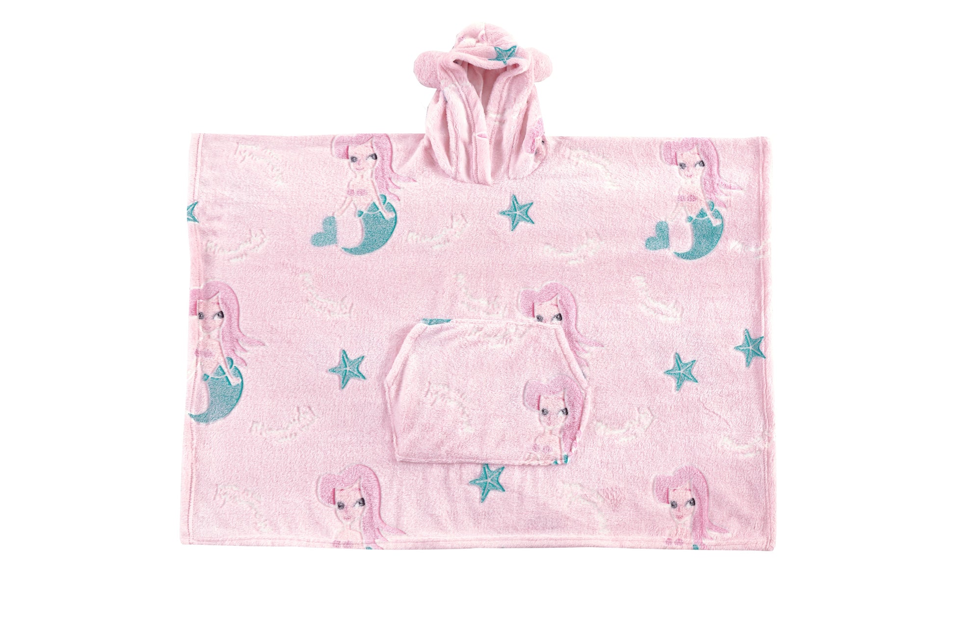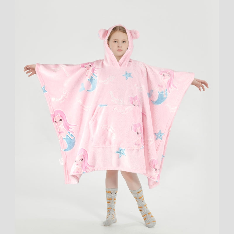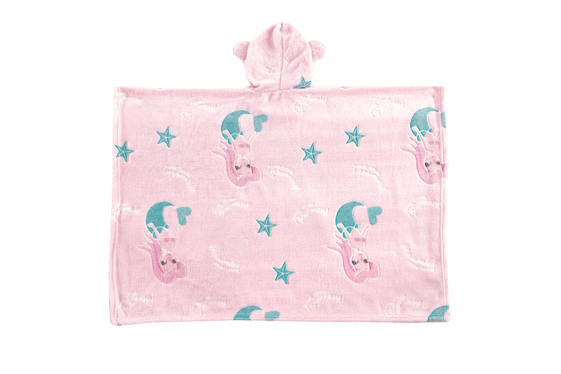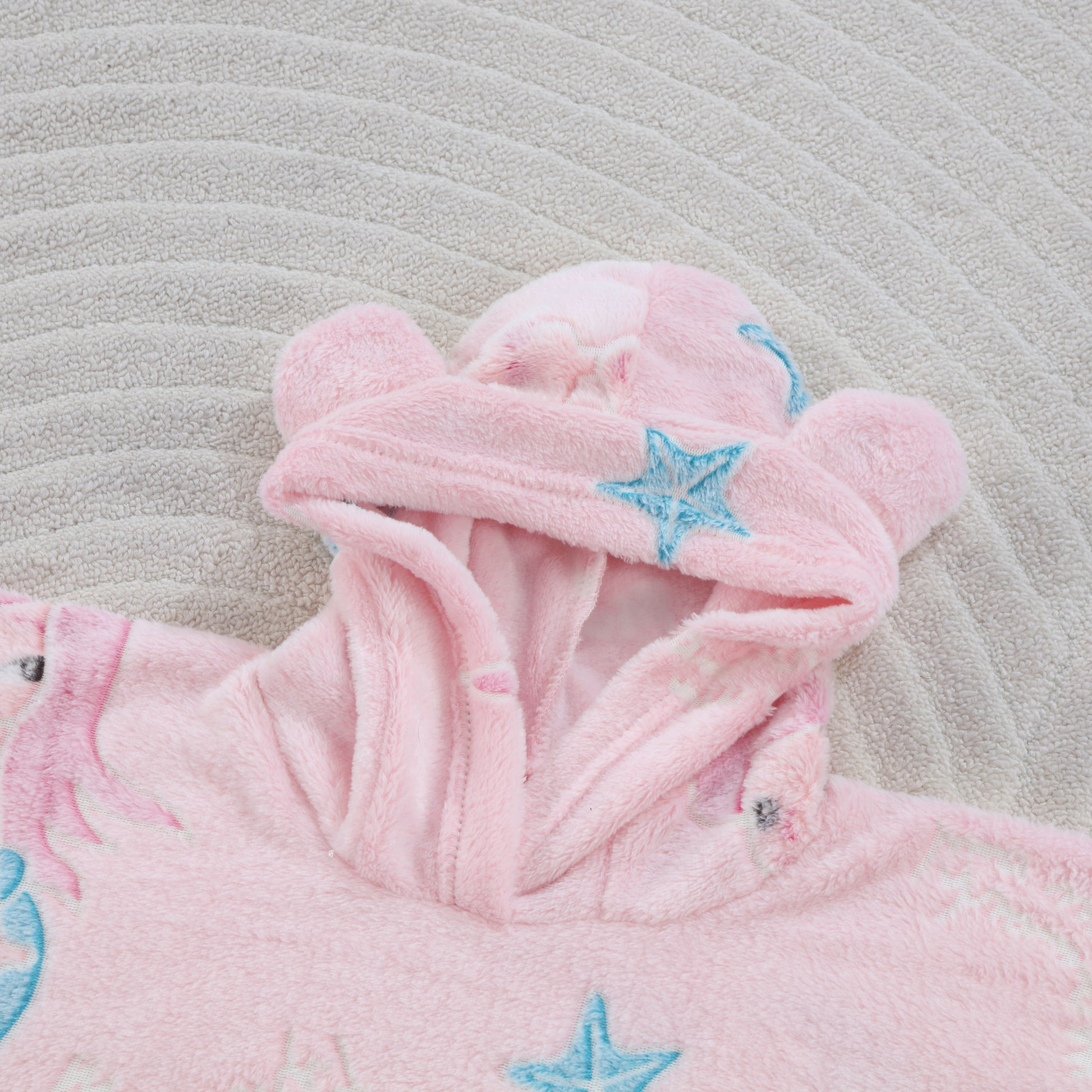 Glow in the Dark Kids Wearable Hoodie Blanket for Girls Soft Warm Flannel Fleece Hooded Sweatshirt, 110 x 75 cm Pink Mermaid