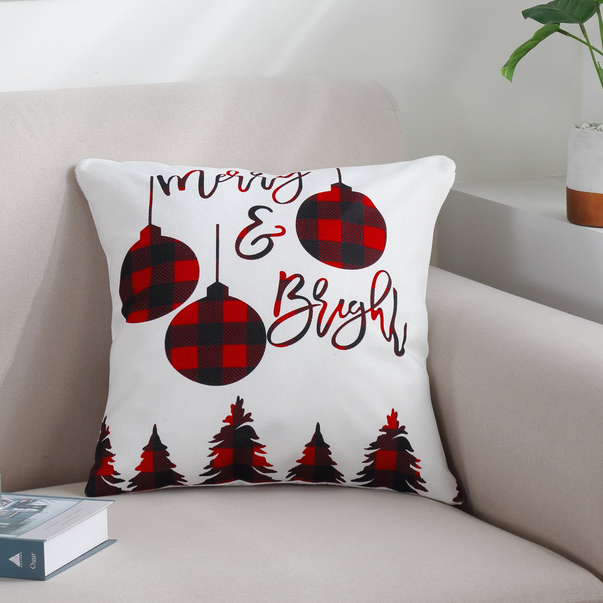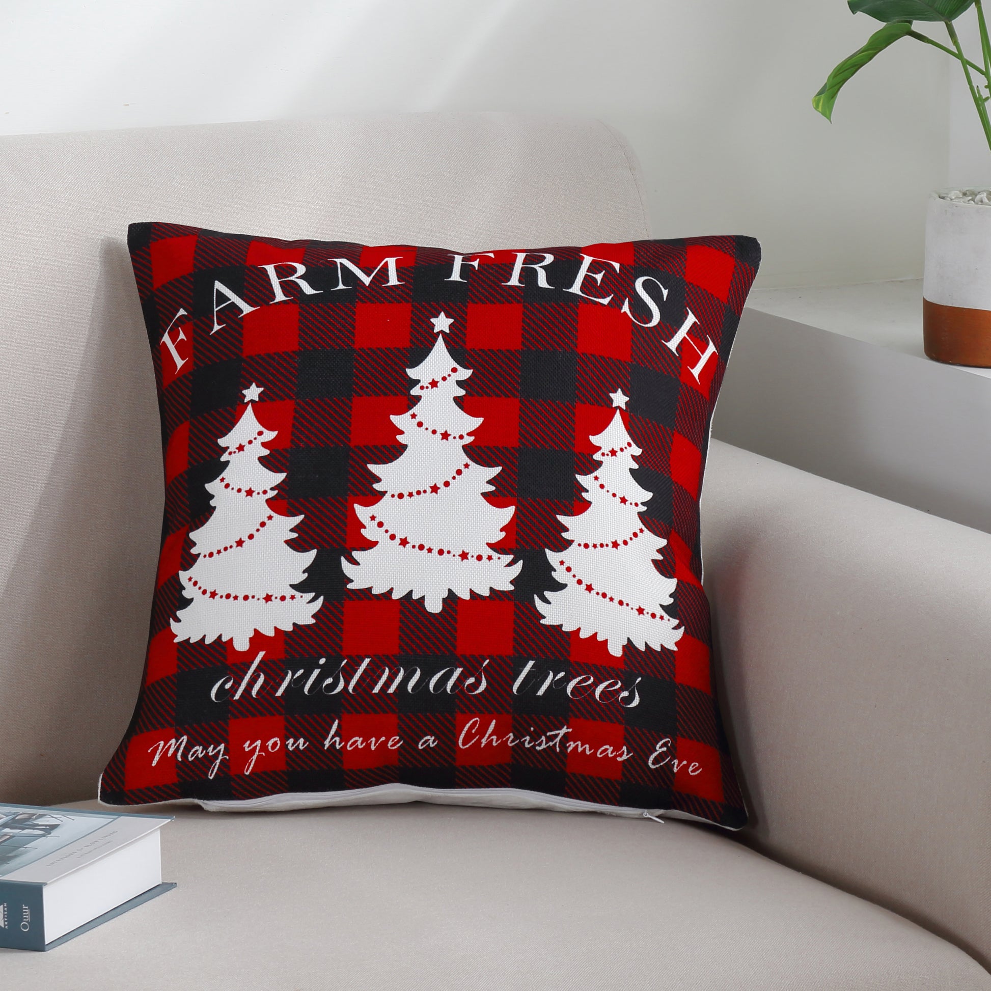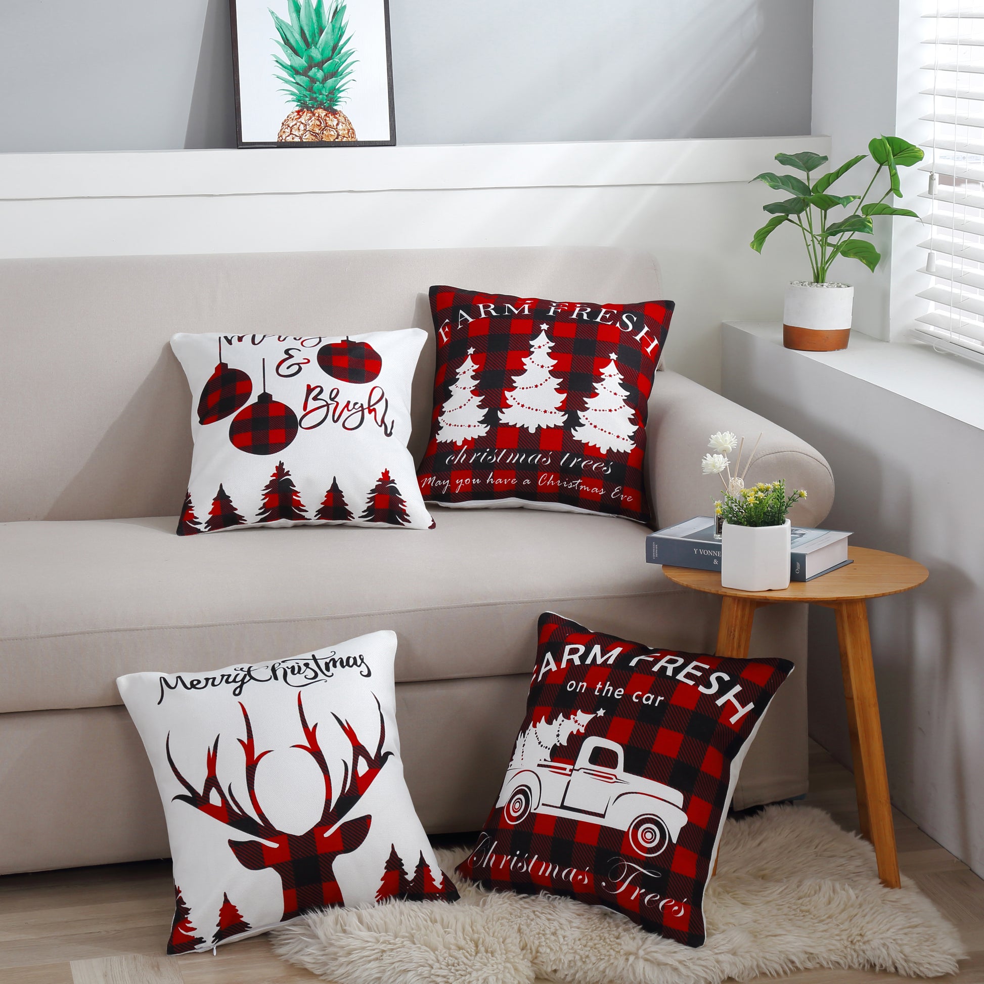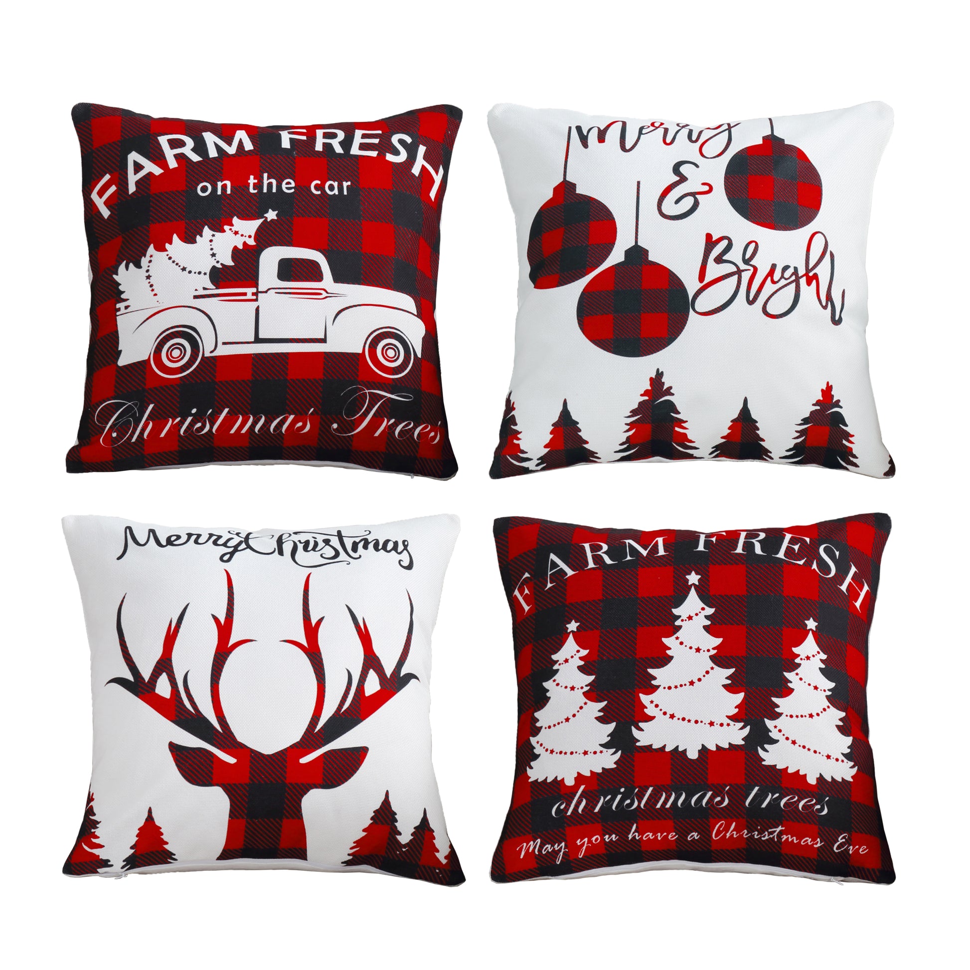Christmas Printed Cushion Cover Set Modern Decorative Throw Xmas Pillow Covers Pack of 4, Rustic Red Black Plaid
