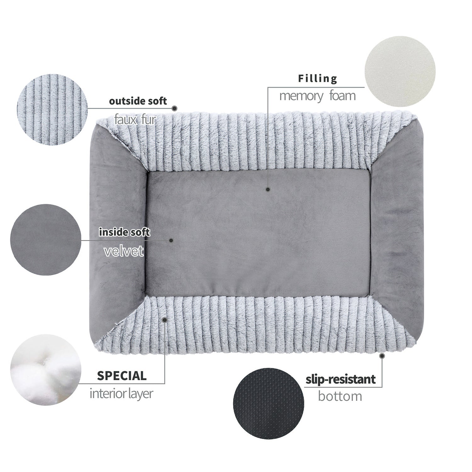Orthopedic Dog Bed, Cat Puppy Memory Foam Mat, Soft Fluffy Pet Sofa, Anti-Slip Bottom, Grey 28 x 20 Inch