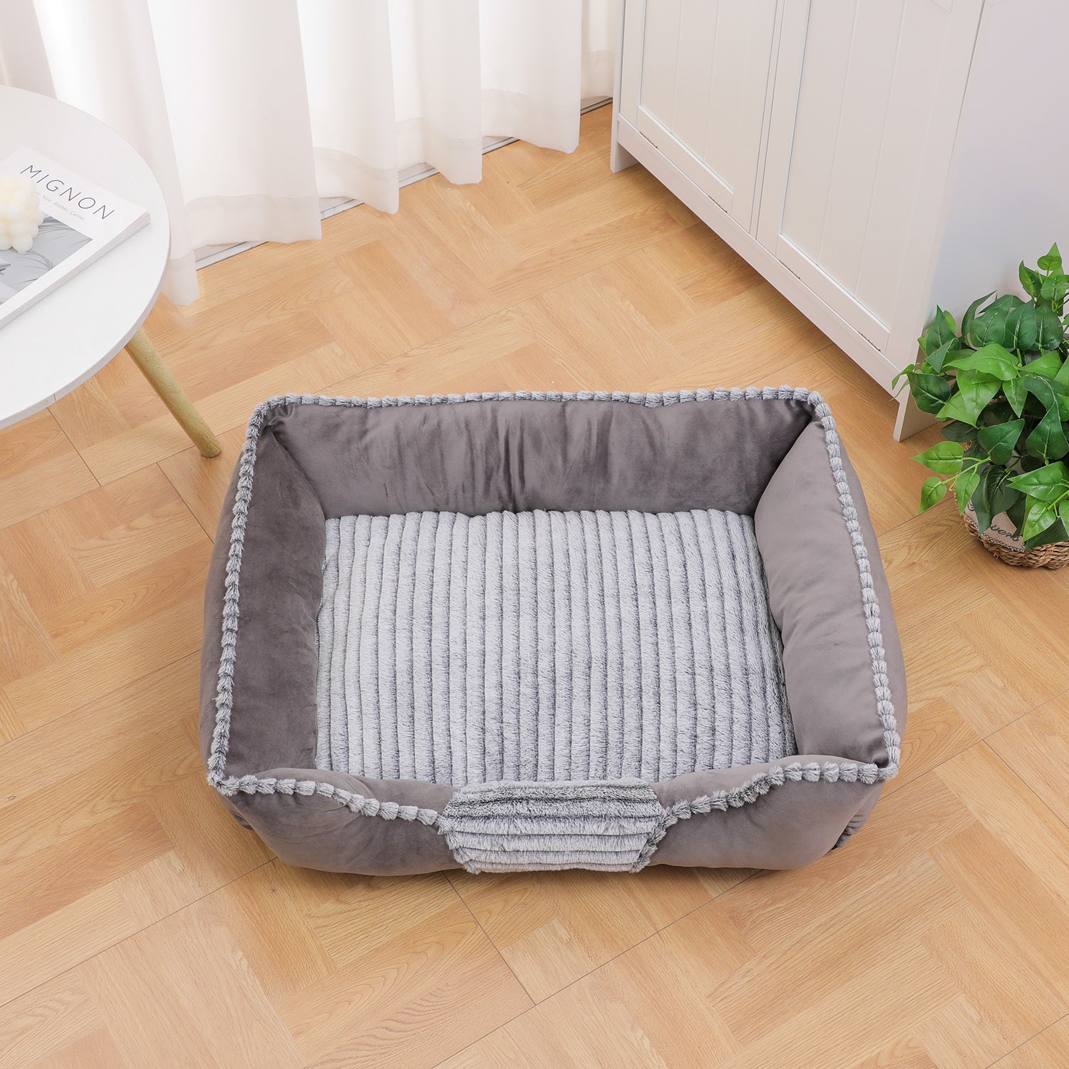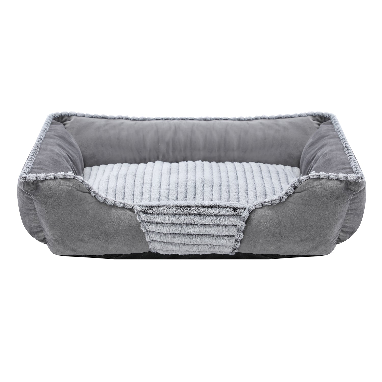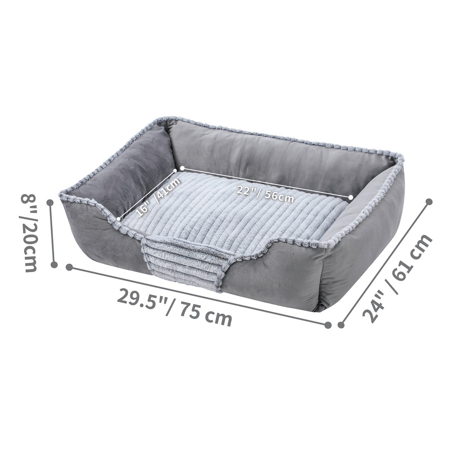 Orthopedic Dog Bed, Cat Puppy Mat with Sides Bolster, Soft Fluffy Pet Sofa, Anti-Slip Bottom, Grey 30 x 24 Inch