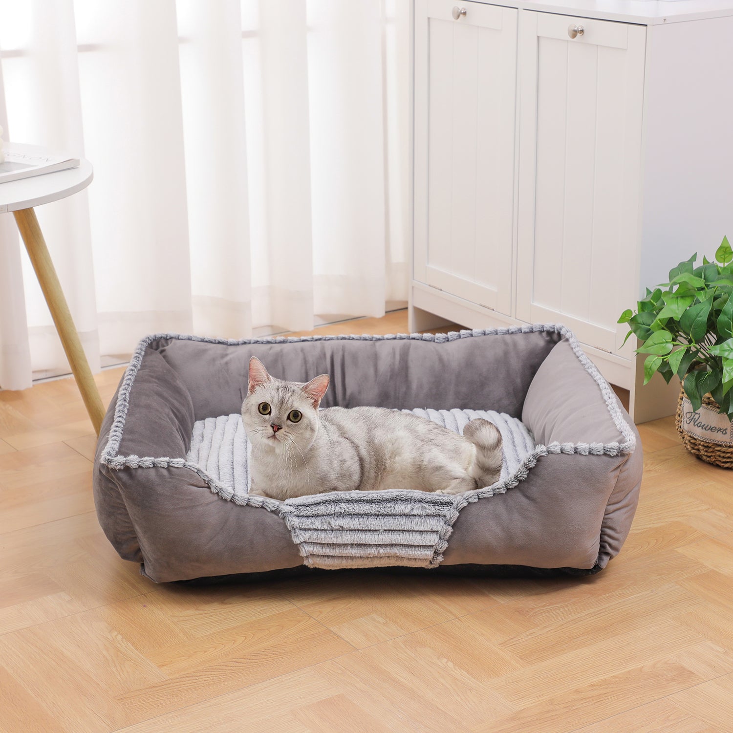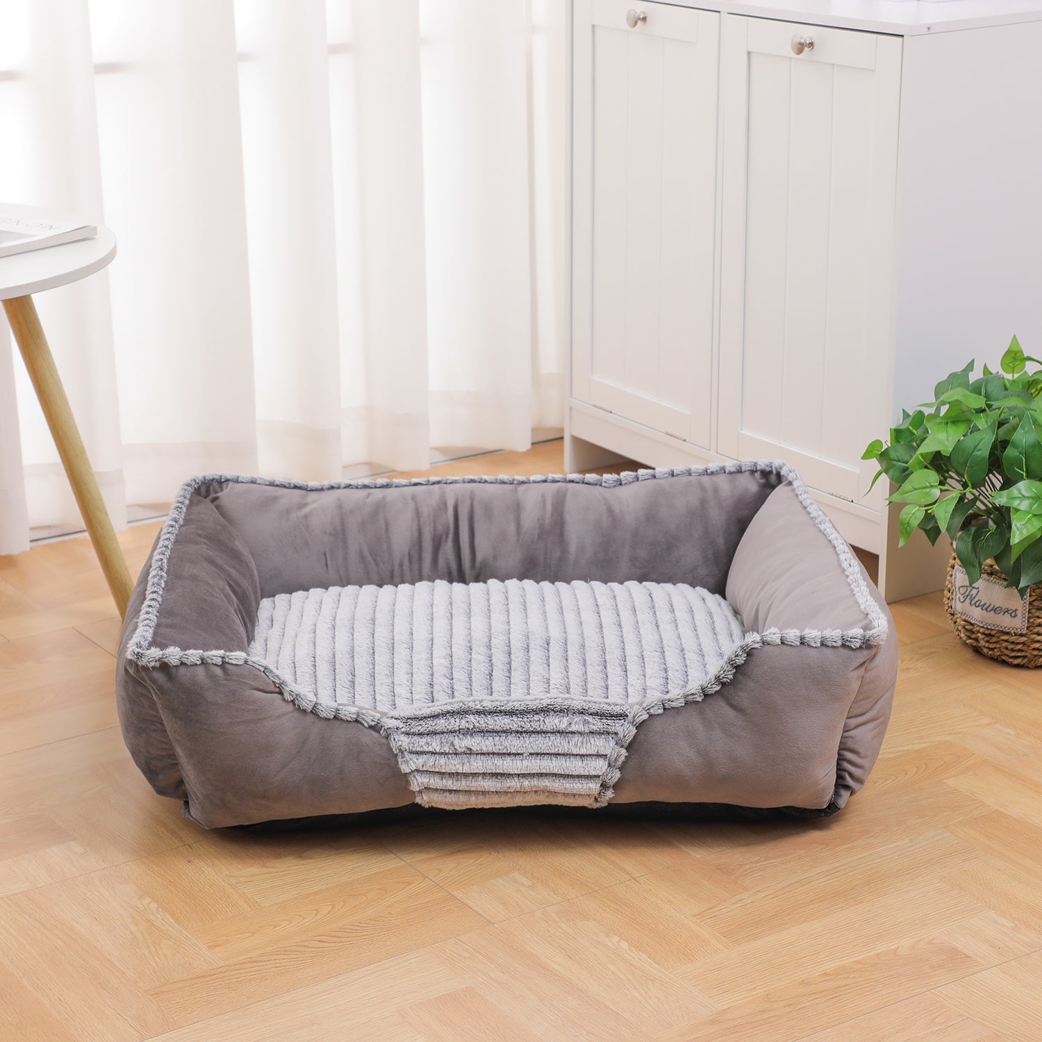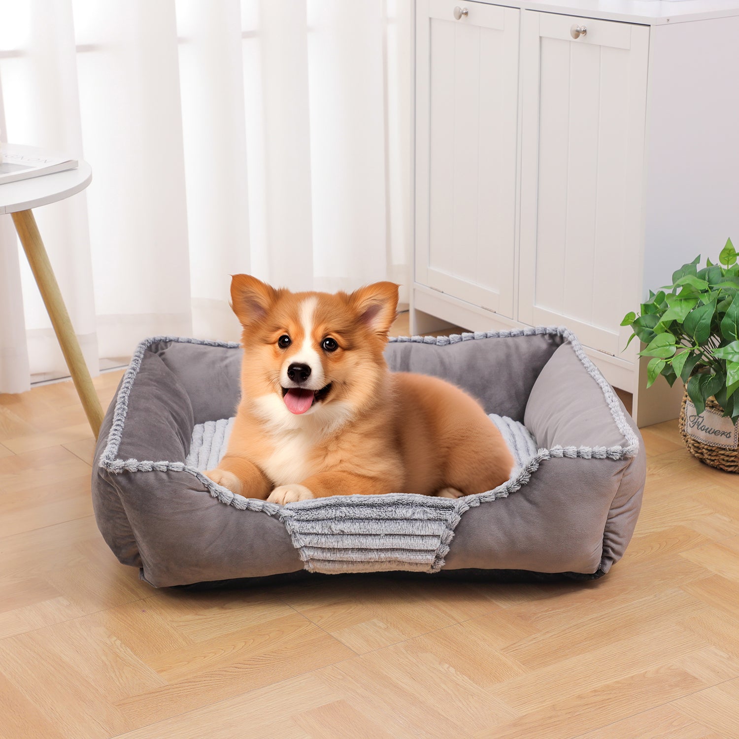 Orthopedic Dog Bed, Cat Puppy Mat with Sides Bolster, Soft Fluffy Pet Sofa, Anti-Slip Bottom, Grey 30 x 24 Inch