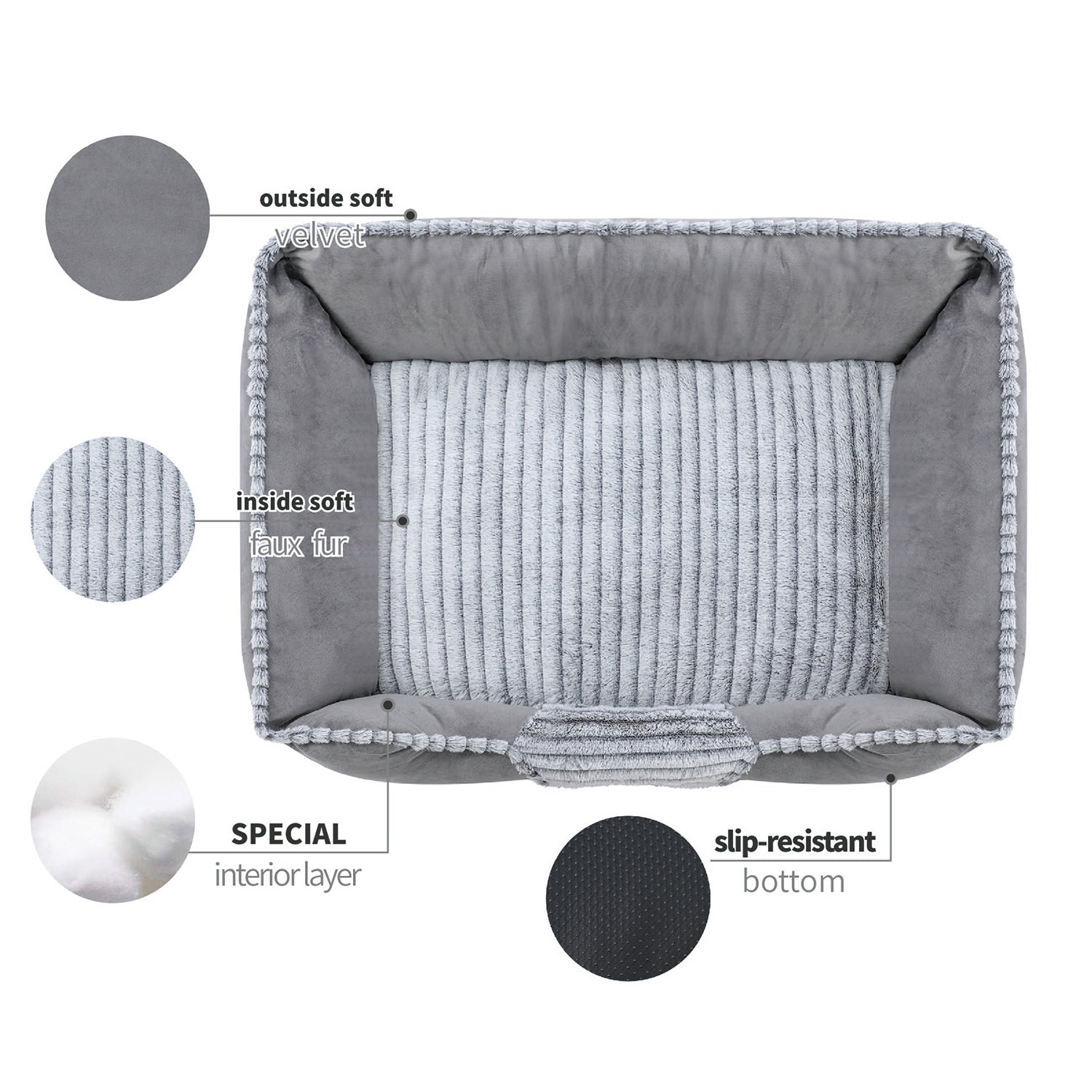 Feature: Non-Slip Rubber Dots Bottom Preventing the Pet Bed Move Around. Plush Fleece Ensuring Maximum Coziness and Warmth for Your Furry Companion, Which Can Help to Alleviate the Anxiety and Stress