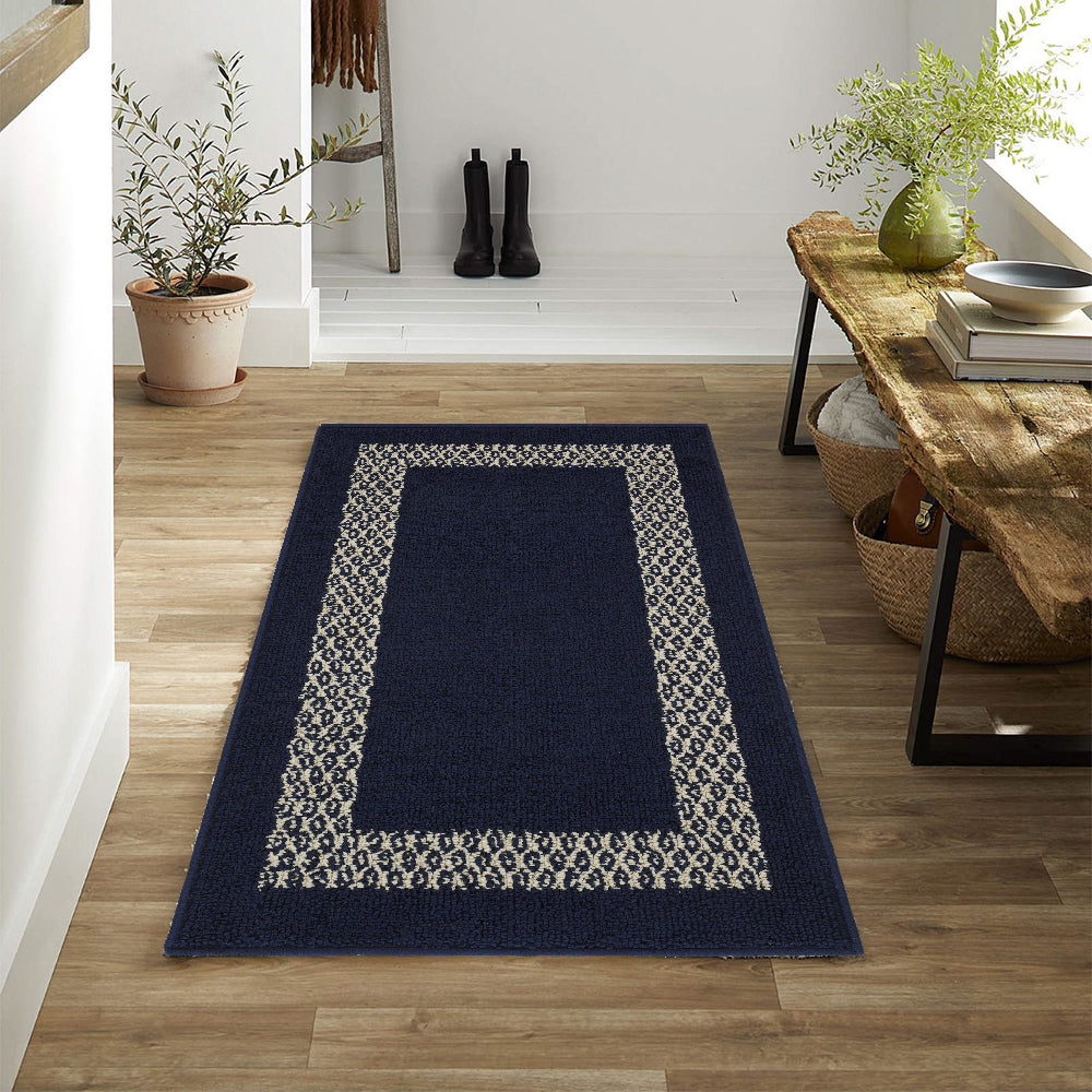 Decor Non-Slip Back Soft Runner Area Carpet Floor Area Rug Indoor Accent Decorative Mat, Diamond Navy Blue