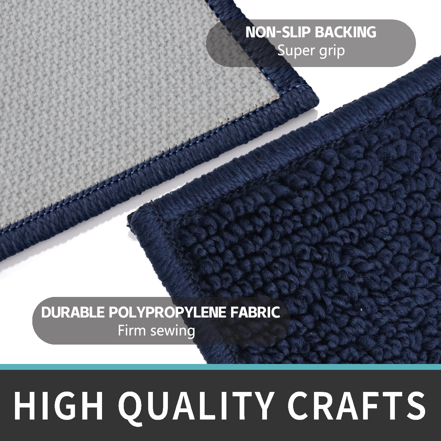 Dimension and Material - Size Available - 20 x 48 Inch, 20 x 60 Inch, 20 x 72 Inch, 26 x 45 Inch. Content is 100% Olefin and Back is 100% Polypropylene with Thermoplastic Rubber Back. Non-Slip Surface: Comes with Build in Anti-Slip Mat with Rubber Back for Maximum Grip to Prevent You to Shifting and Skidding. Fast Water Absorption, Protecting Your Floors from Moisture, Stains and Scratches