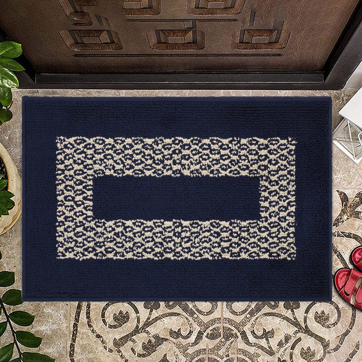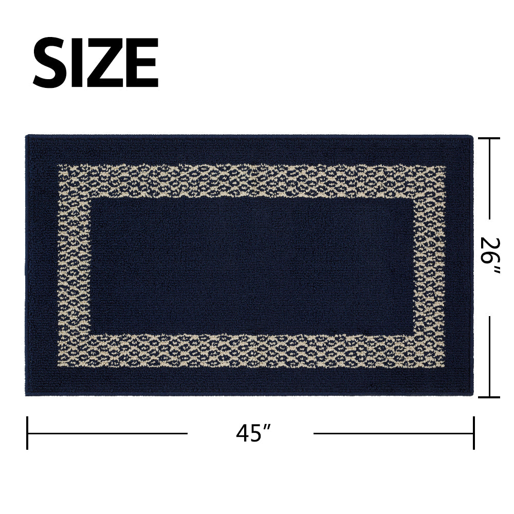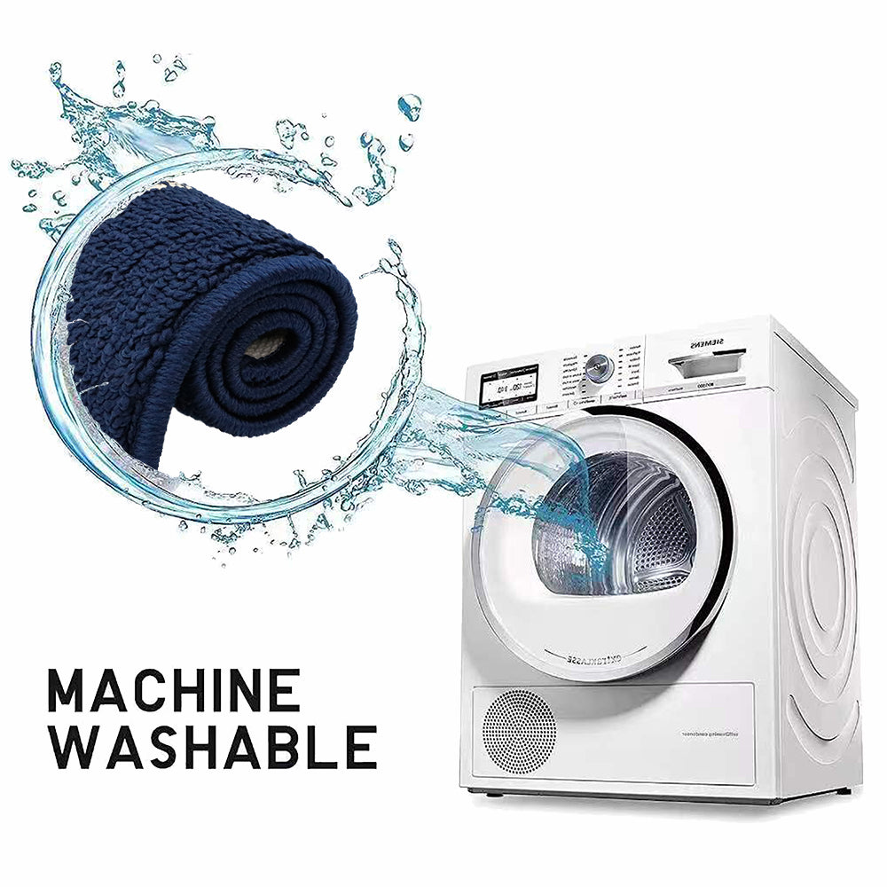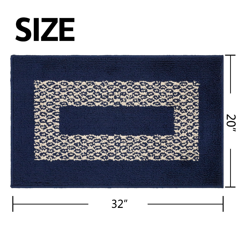 Classic Simple Design - Navy Blue Color Base with Jacquard Off-White Diamond Pattern. Super Strong Cushioned Water Absorbent Ability, It is Multiple Times of Cotton Water Absorbent Ability, Quickly Soaks Up an Impressive Amount of Water. This Boho Rug is the Perfect Decorative Additive That Protect Your Floors. It Keeps the Room Clean and Tidy