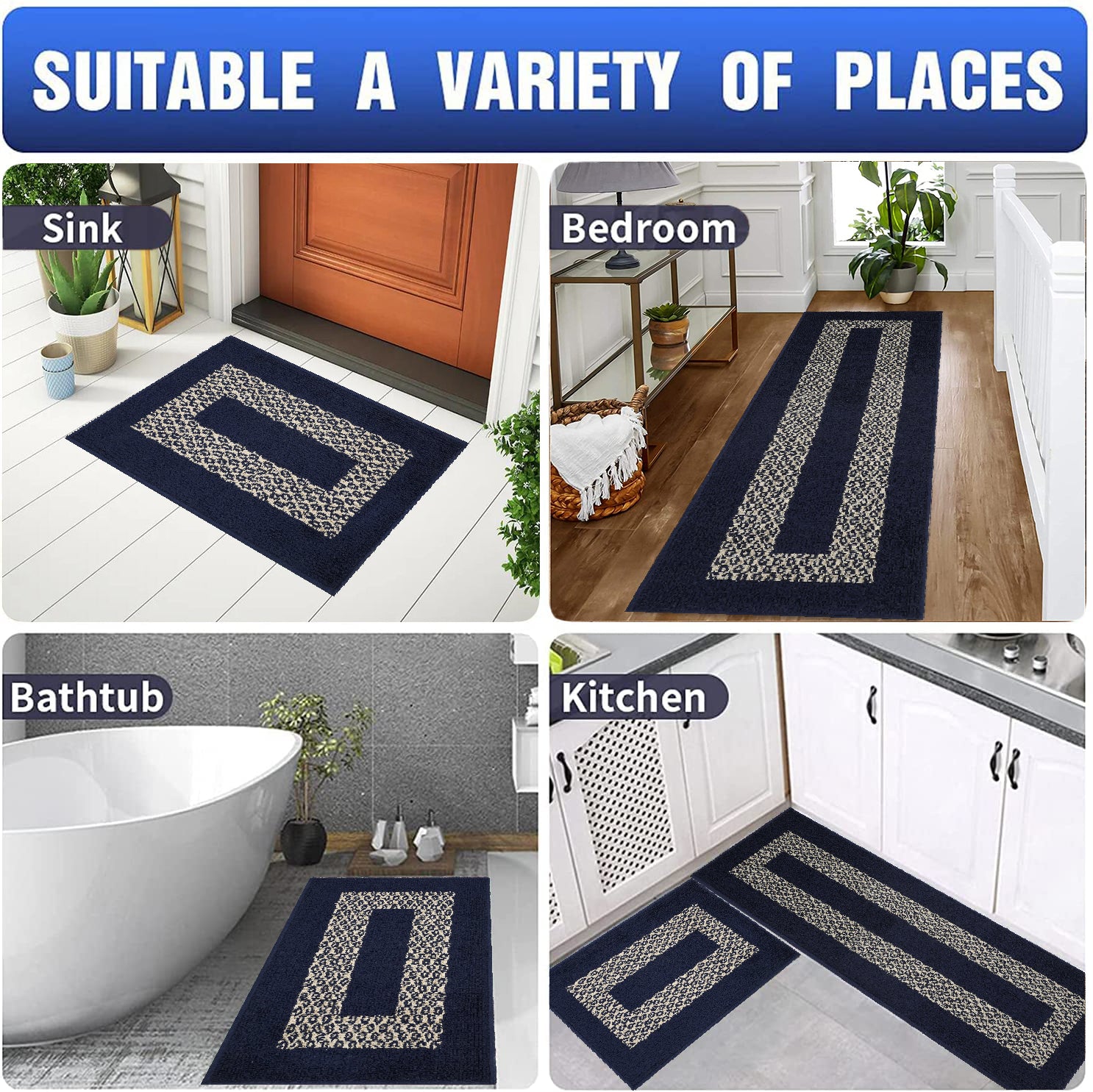 Multi-Use - This Bath Accessories Mat Rug can be Used at Hallway, Bathroom, Kitchen, Living Room, Bedroom, Laundry, Workstation, Entryway, Farmhouse, Dining Room, Doormat, Tub-Side, Front of the Sink, Hotel, Spa, Closets, Office, Mud Rooms, College Dorms, Front Porch, Back Door, in front of the Fireplace, Pet House, Foyer or at Any Place in Your Home