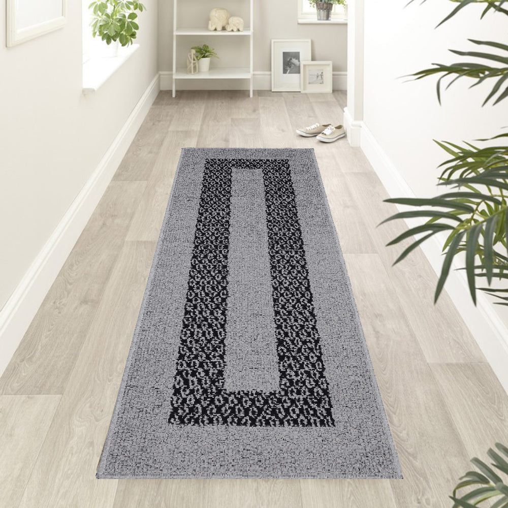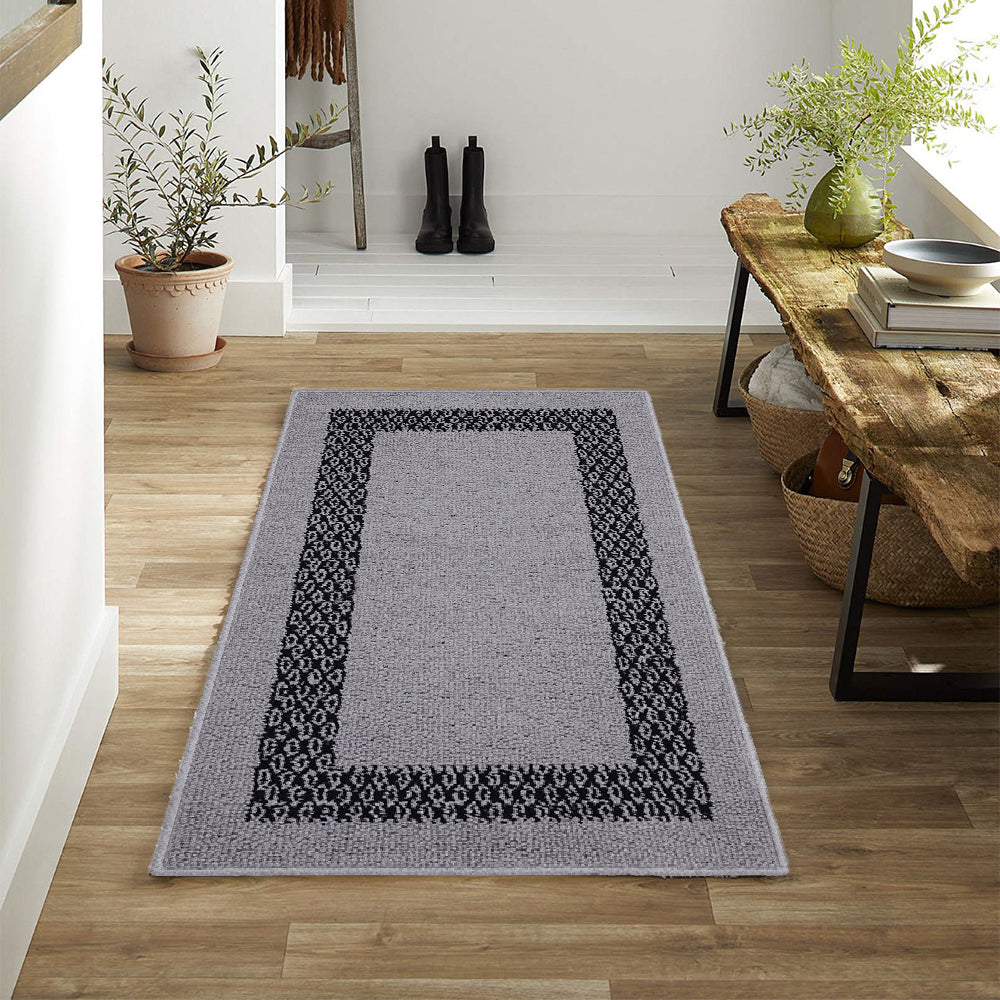 Classic Simple Design - Silver Color Base with Jacquard Black Diamond Pattern. Super Strong Cushioned Water Absorbent Ability, It is Multiple Times of Cotton Water Absorbent Ability, Quickly Soaks Up an Impressive Amount of Water. This Boho Rug is the Perfect Decorative Additive That Protect Your Floors. It Keeps the Room Clean and Tidy