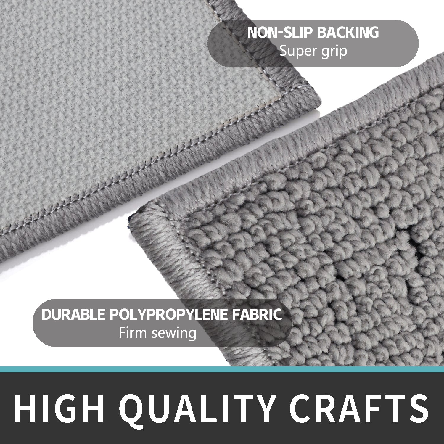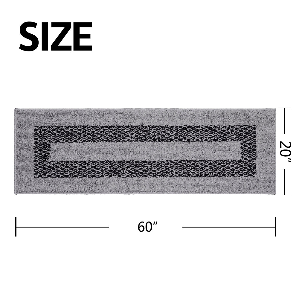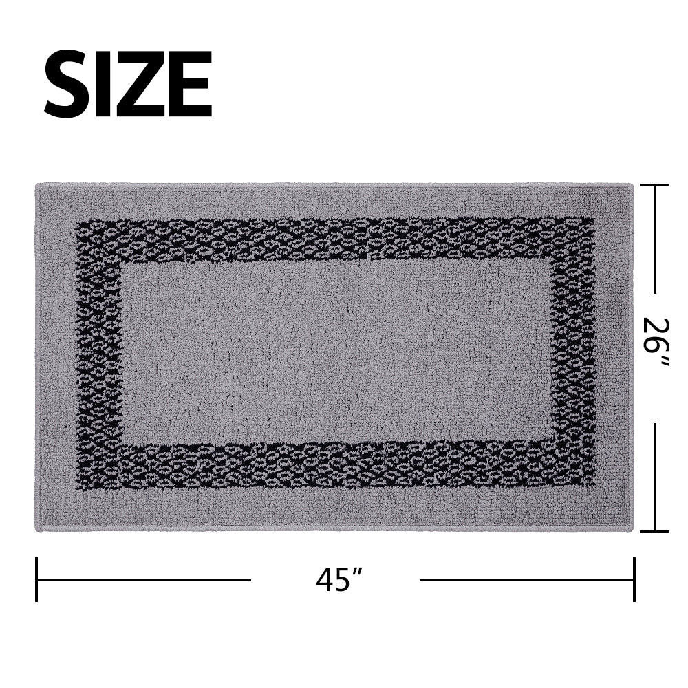 Dimension and Material - Size Available - 20 x 48 Inch, 20 x 60 Inch, 20 x 72 Inch, 26 x 45 Inch. Content is 100% Olefin and Back is 100% Polypropylene with Thermoplastic Rubber Back. Non-Slip Surface: Comes with Build in Anti-Slip Mat with Rubber Back for Maximum Grip to Prevent You to Shifting and Skidding. Fast Water Absorption, Protecting Your Floors from Moisture, Stains and Scratches