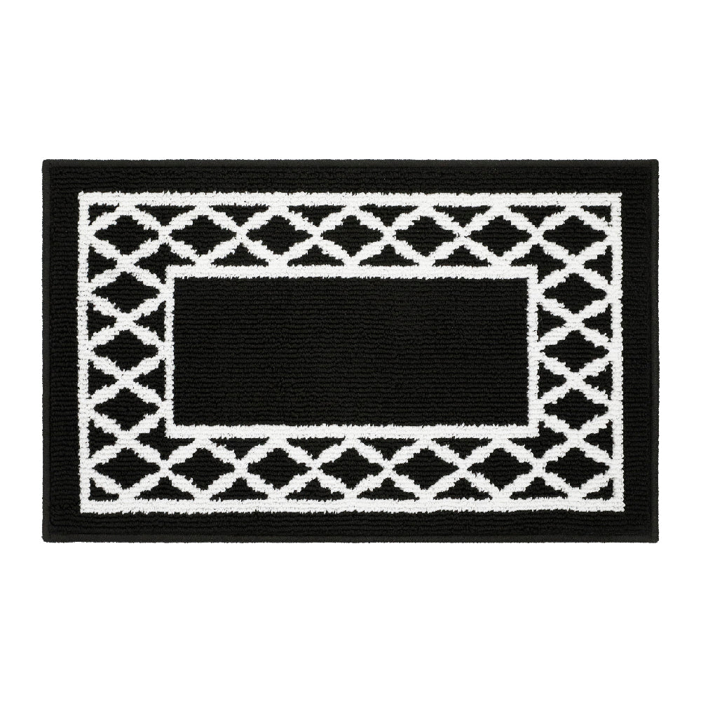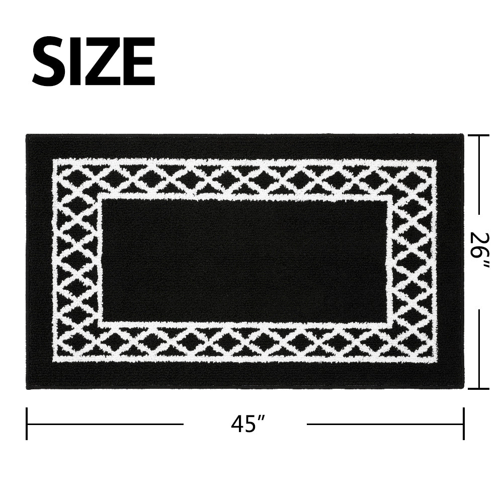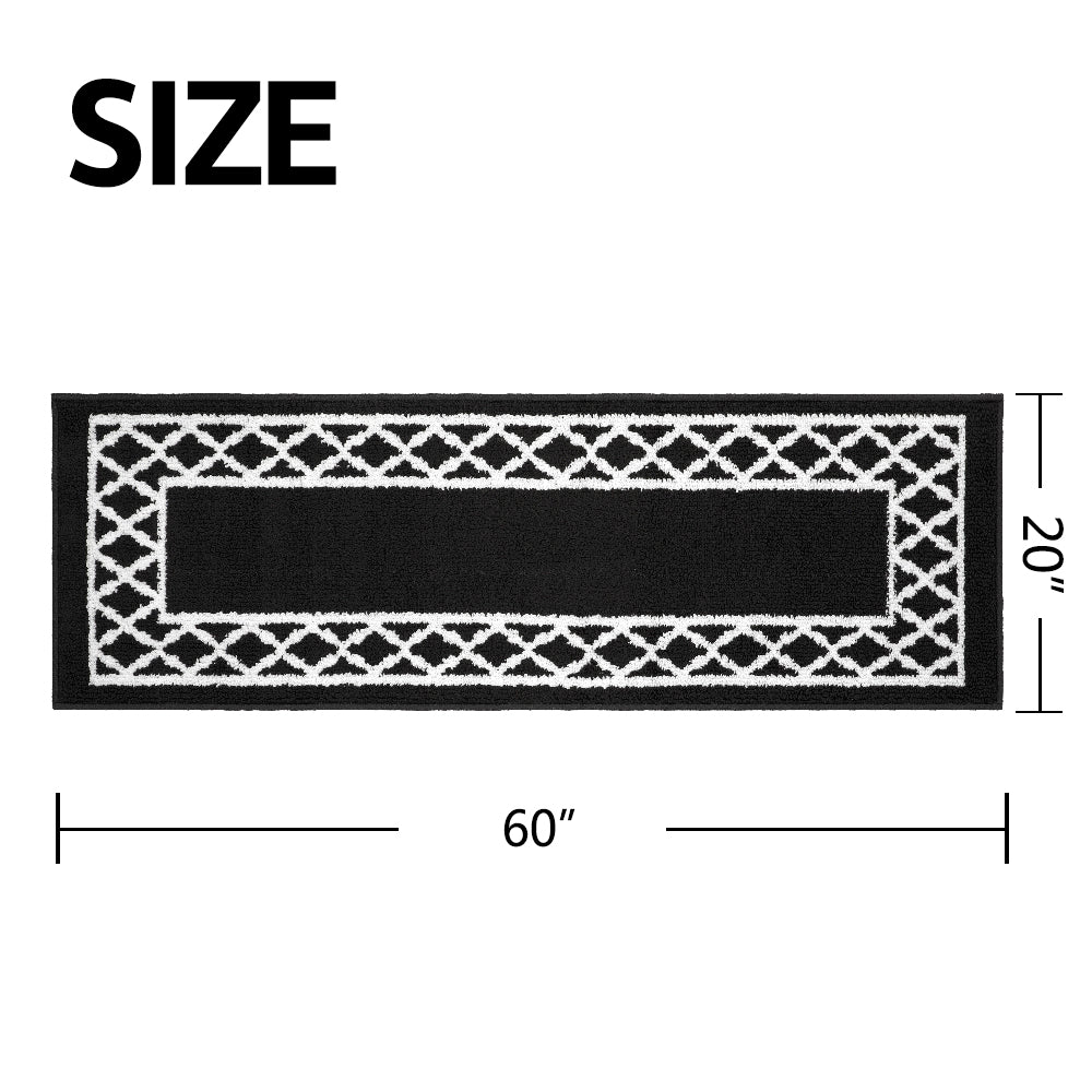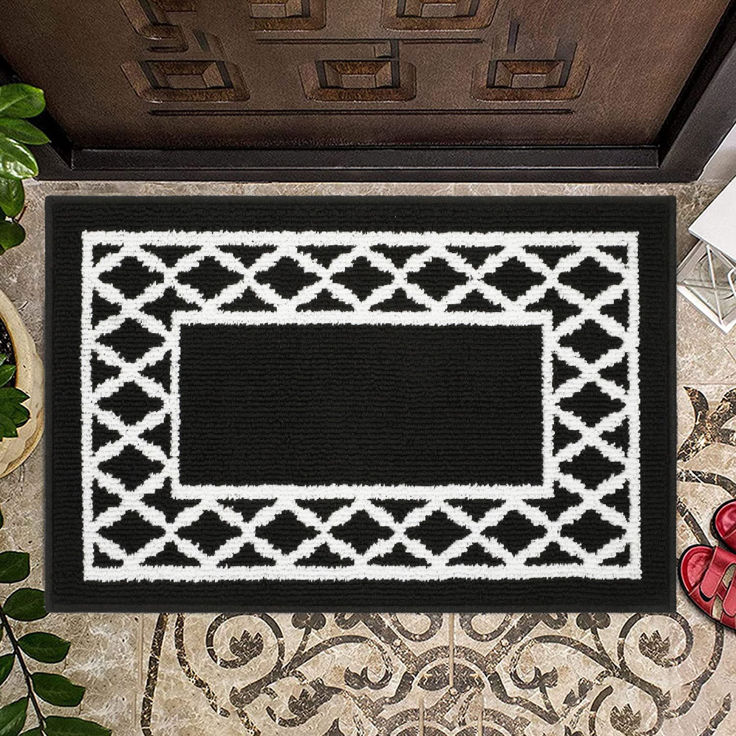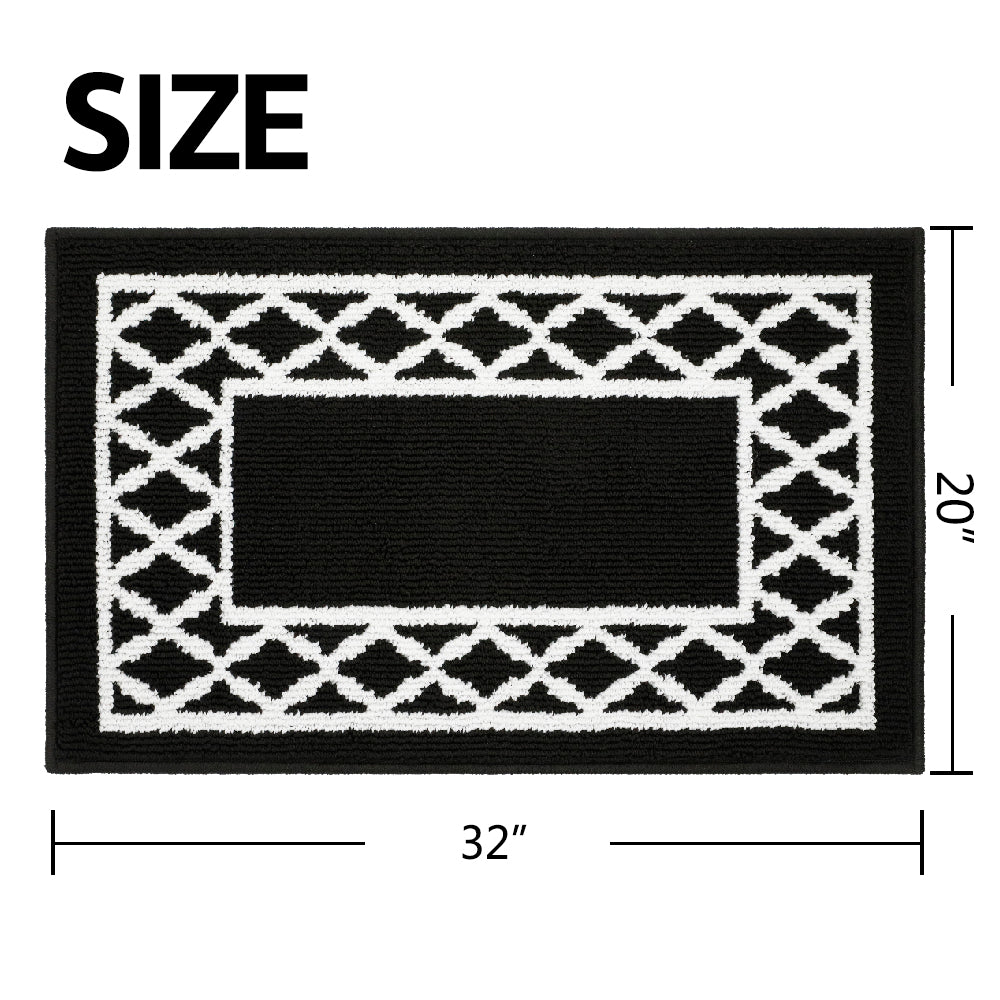 Classic Simple Design - Black Color Base with Jacquard White Moroccan Trellis Pattern. Super Strong Cushioned Water Absorbent Ability, It is Multiple Times of Cotton Water Absorbent Ability, Quickly Soaks Up an Impressive Amount of Water. This Boho Rug is the Perfect Decorative Additive That Protect Your Floors. It Keeps the Room Clean and Tidy
