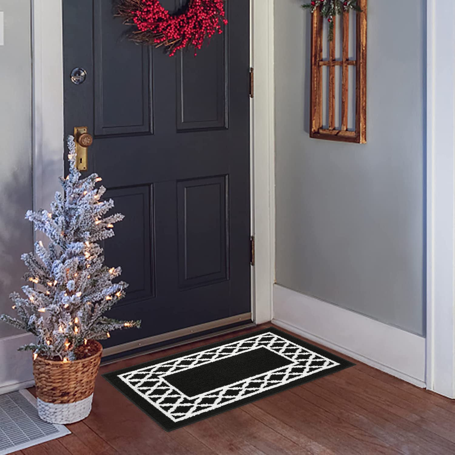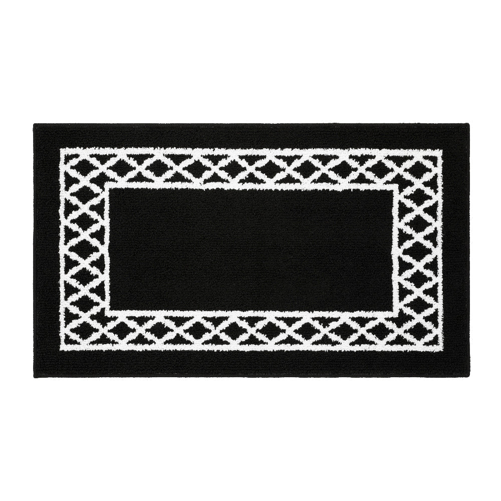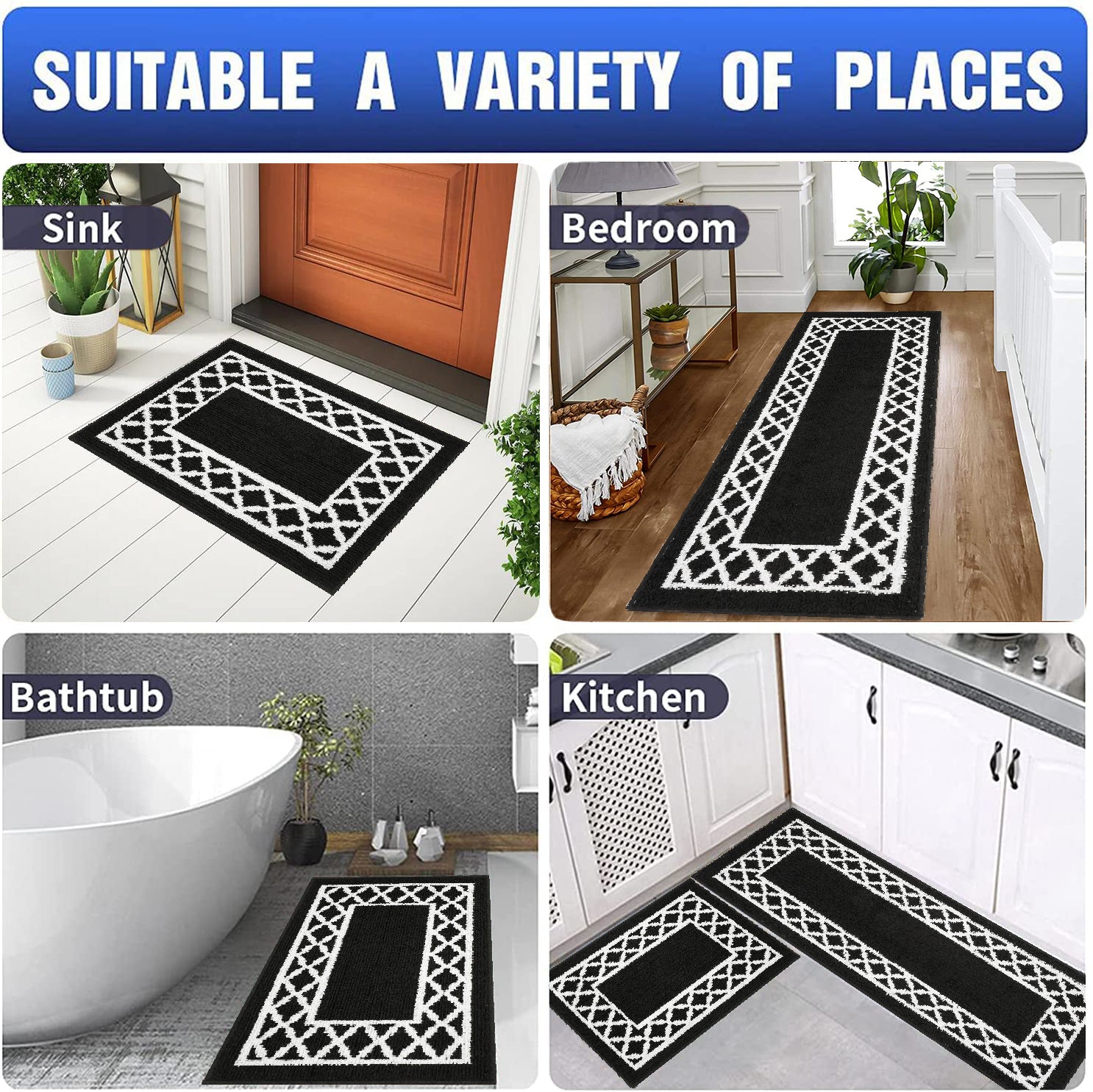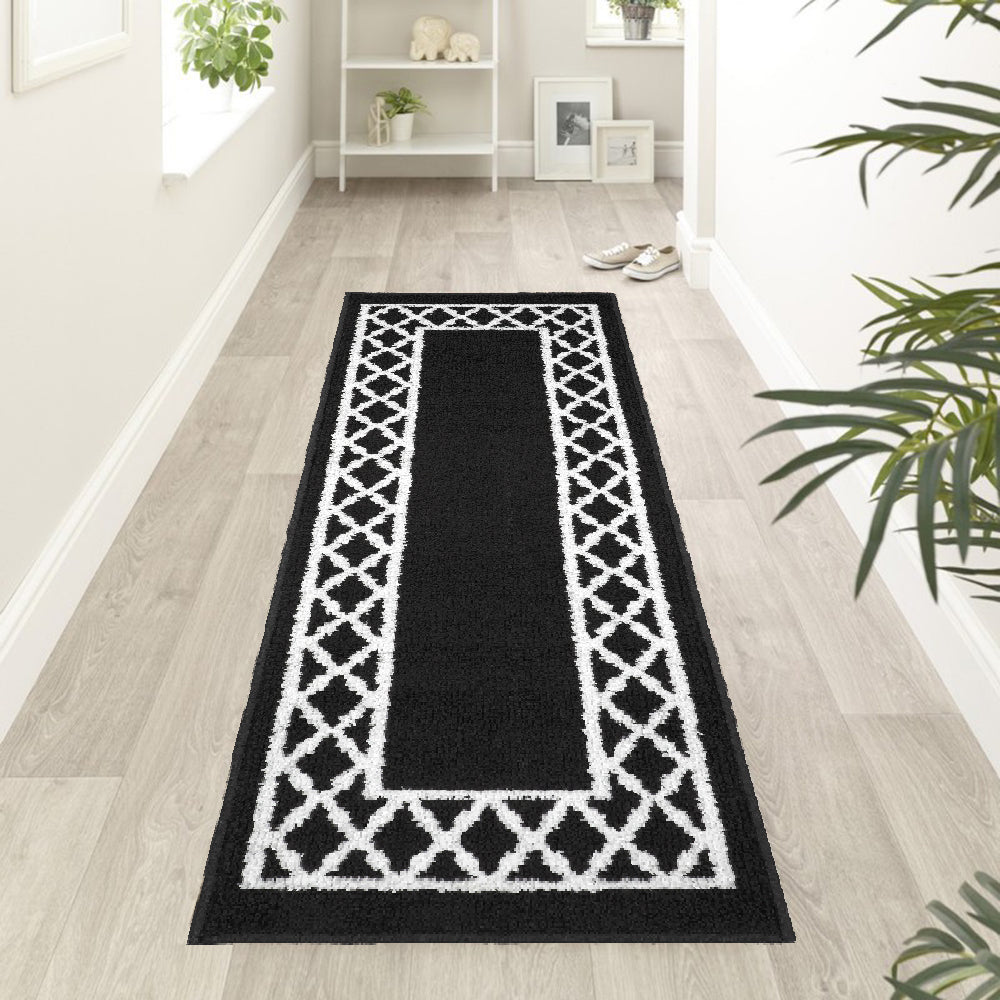 Classic Simple Design - Black Color Base with Jacquard White Moroccan Trellis Pattern. Super Strong Cushioned Water Absorbent Ability, It is Multiple Times of Cotton Water Absorbent Ability, Quickly Soaks Up an Impressive Amount of Water. This Boho Rug is the Perfect Decorative Additive That Protect Your Floors. It Keeps the Room Clean and Tidy