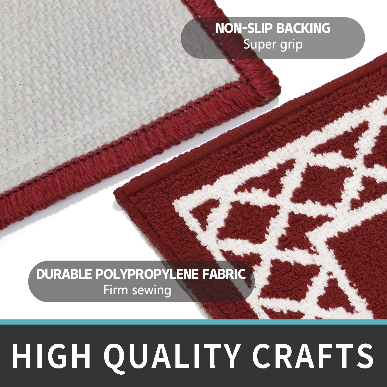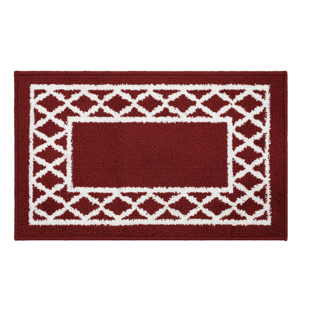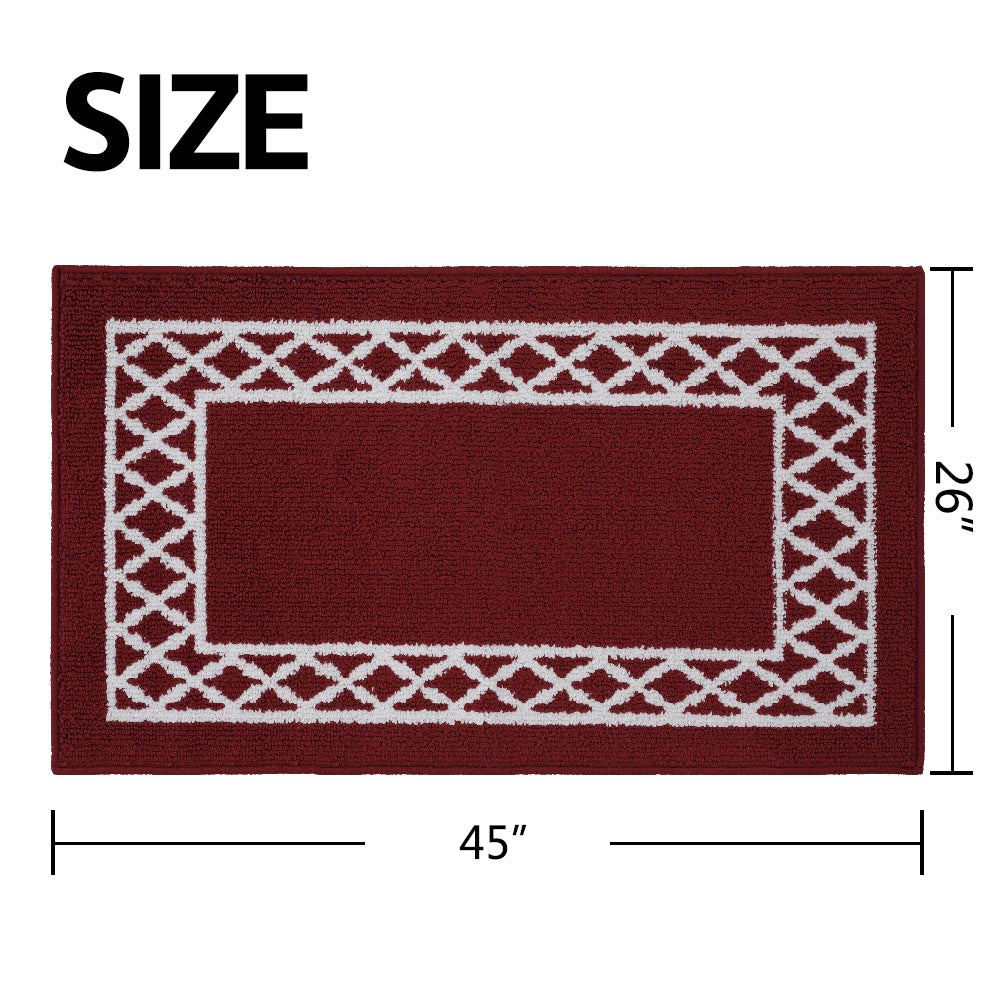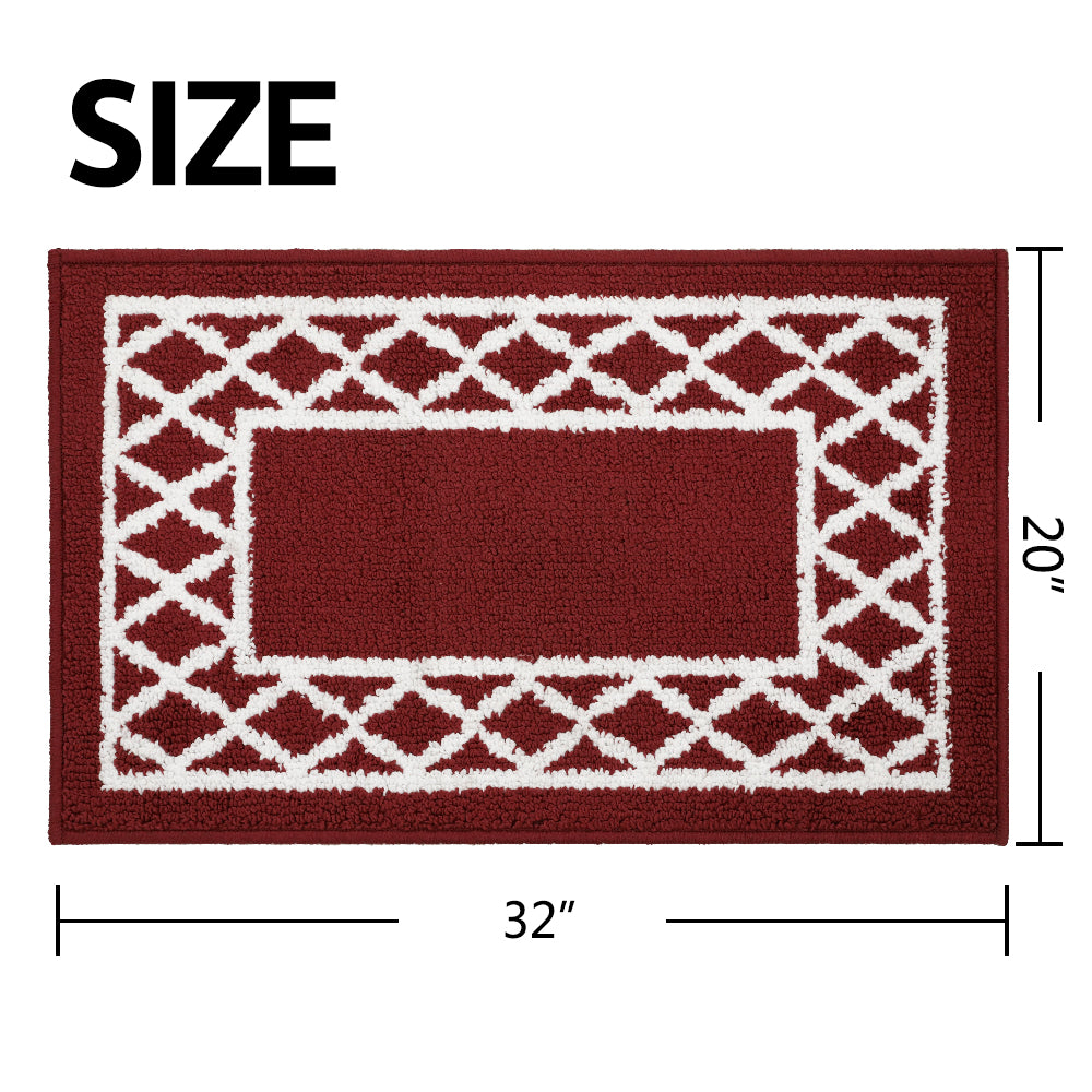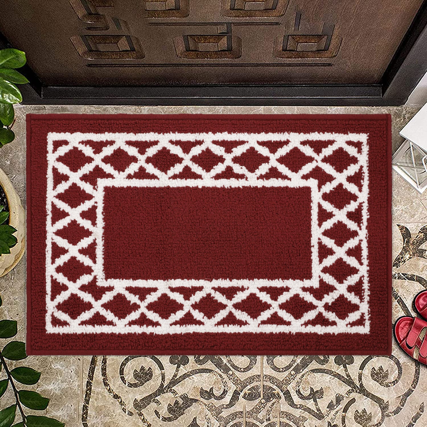 Classic Simple Design - Burgundy Color Base with Jacquard White Moroccan Trellis Pattern. Super Strong Cushioned Water Absorbent Ability, It is Multiple Times of Cotton Water Absorbent Ability, Quickly Soaks Up an Impressive Amount of Water. This Boho Rug is the Perfect Decorative Additive That Protect Your Floors. It Keeps the Room Clean and Tidy