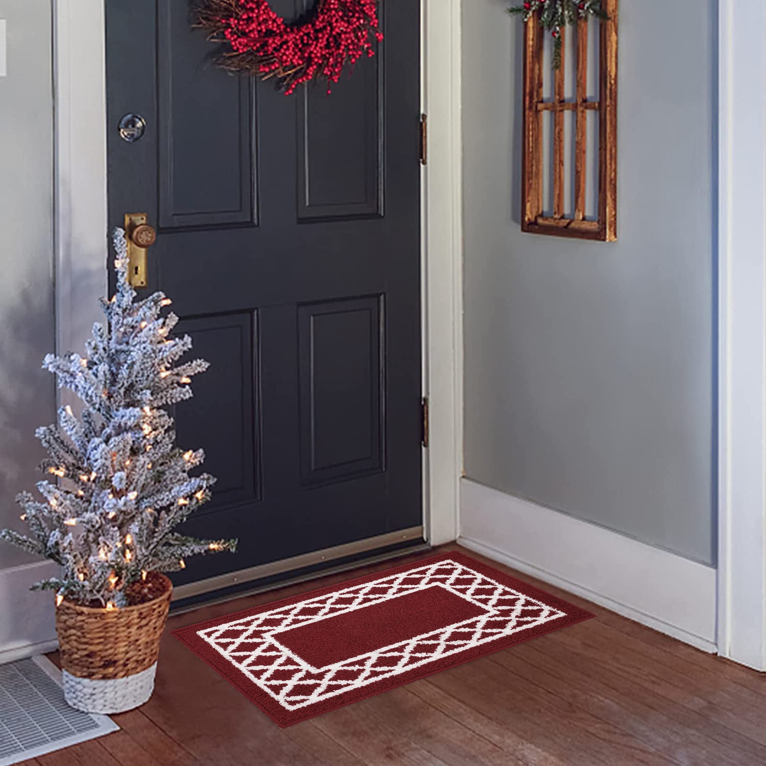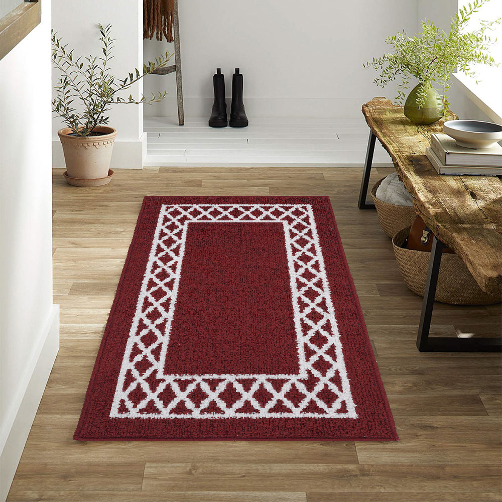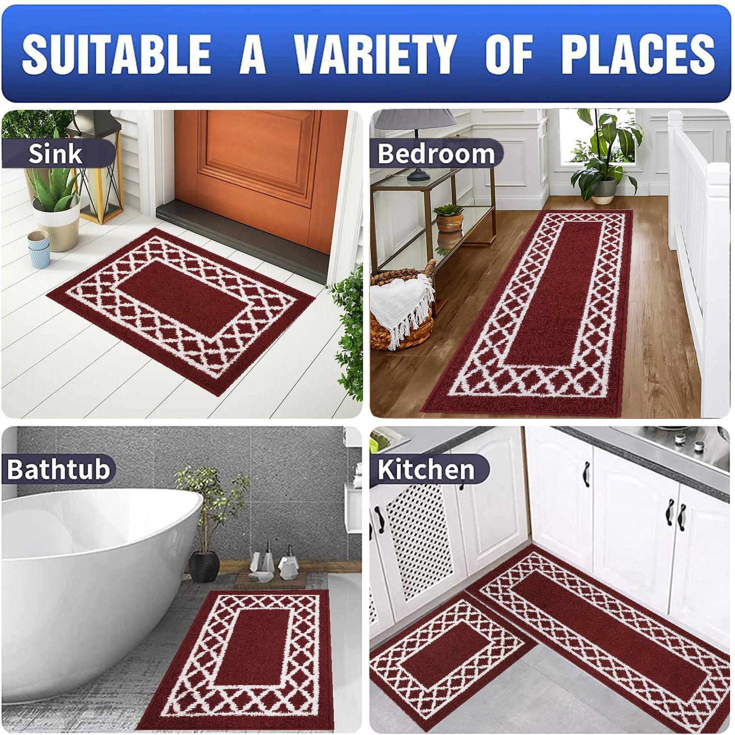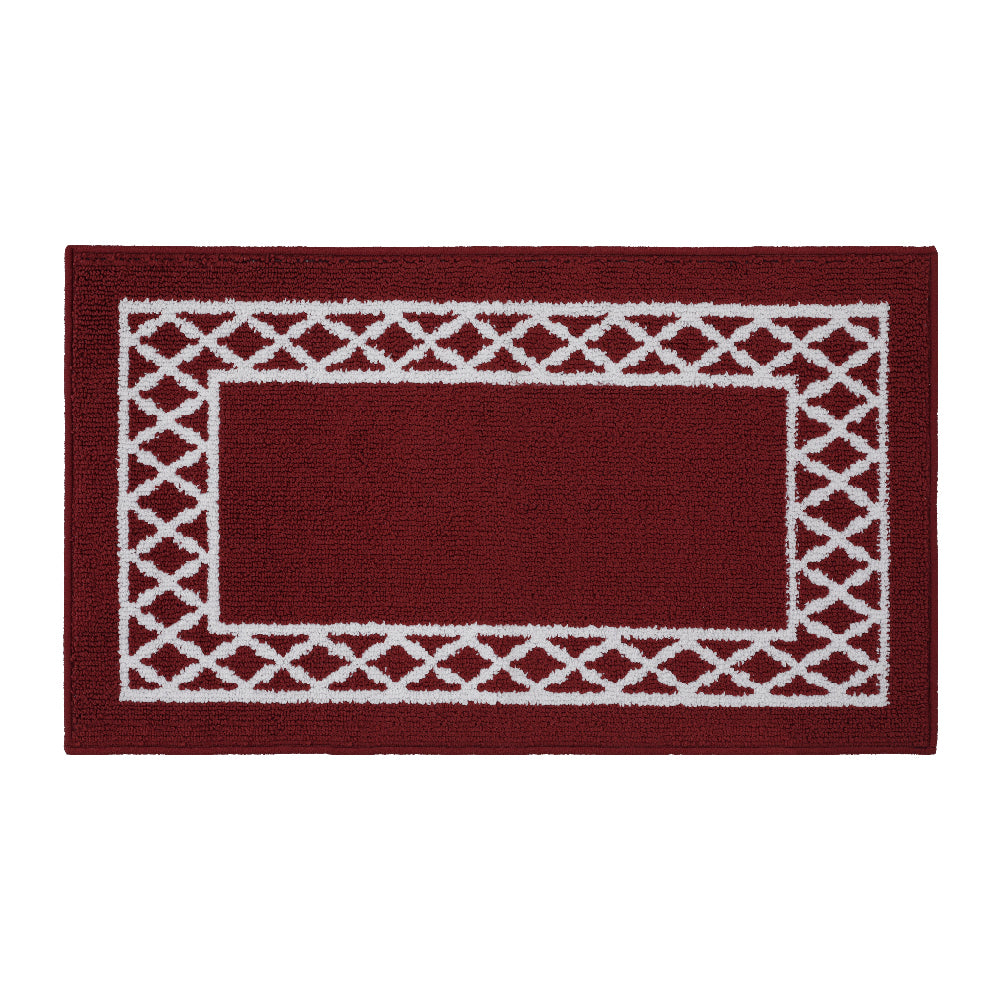 Classic Simple Design - Burgundy Color Base with Jacquard White Moroccan Trellis Pattern. Super Strong Cushioned Water Absorbent Ability, It is Multiple Times of Cotton Water Absorbent Ability, Quickly Soaks Up an Impressive Amount of Water. This Boho Rug is the Perfect Decorative Additive That Protect Your Floors. It Keeps the Room Clean and Tidy