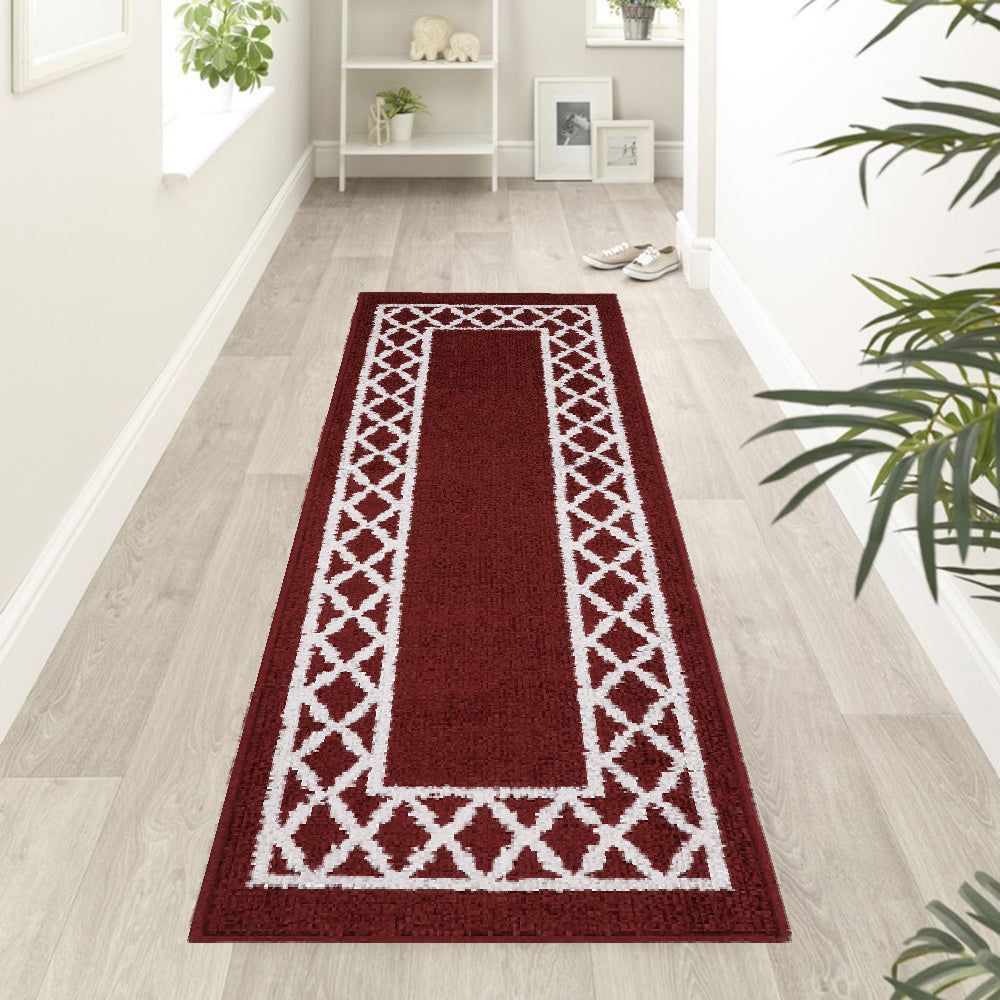 Decor Non-Slip Back Soft Runner Area Carpet Floor Area Rug Indoor Accent Decorative Mat, Moroccan Trellis Burgundy