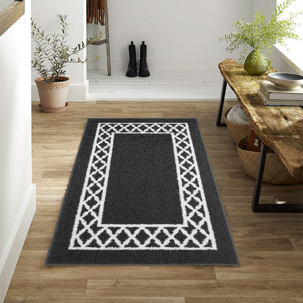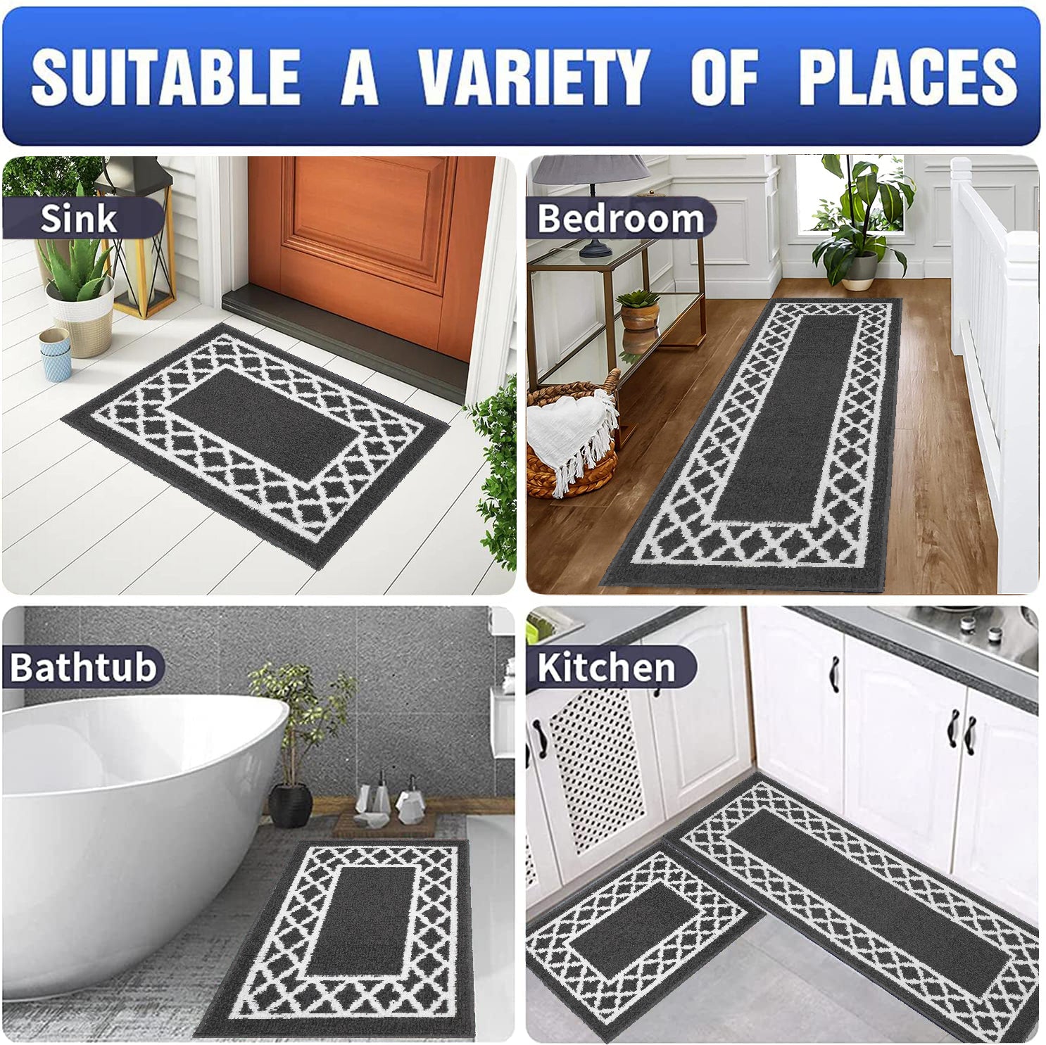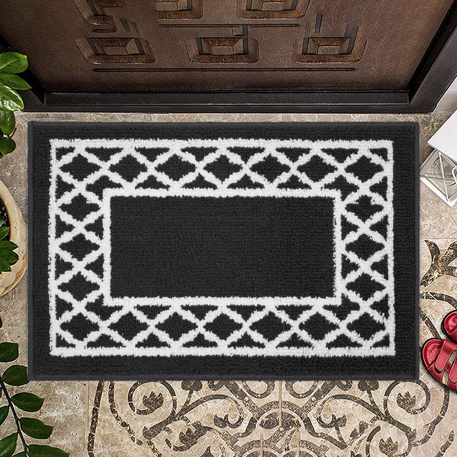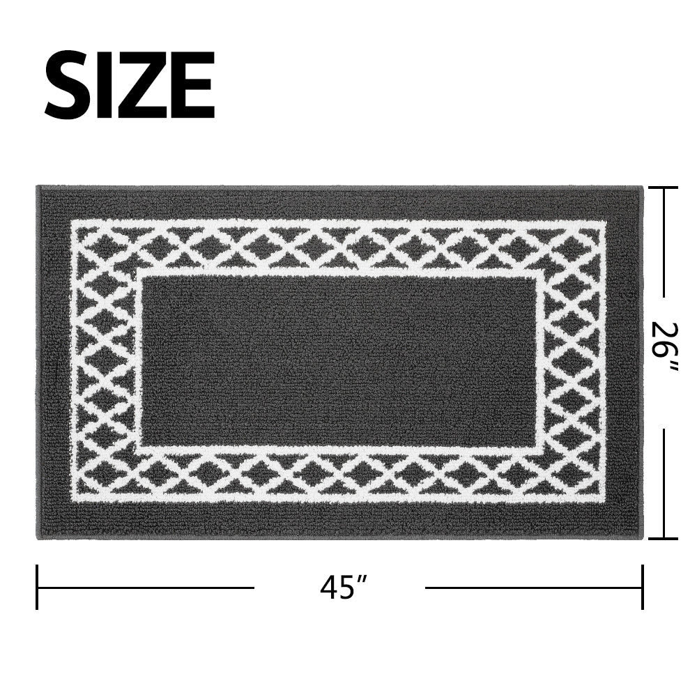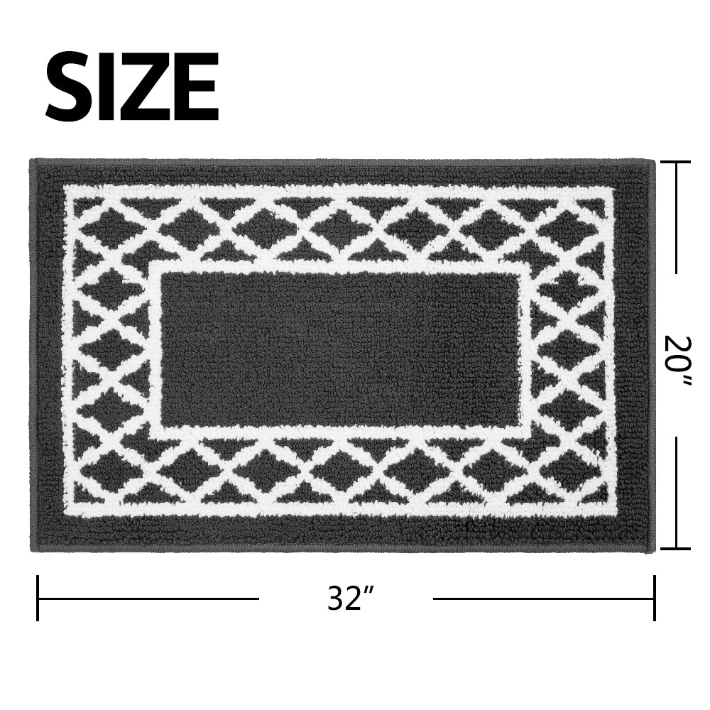 Classic Simple Design - Charcoal Grey Color Base with Jacquard White Moroccan Trellis Pattern. Super Strong Cushioned Water Absorbent Ability, It is Multiple Times of Cotton Water Absorbent Ability, Quickly Soaks Up an Impressive Amount of Water. This Boho Rug is the Perfect Decorative Additive That Protect Your Floors. It Keeps the Room Clean and Tidy