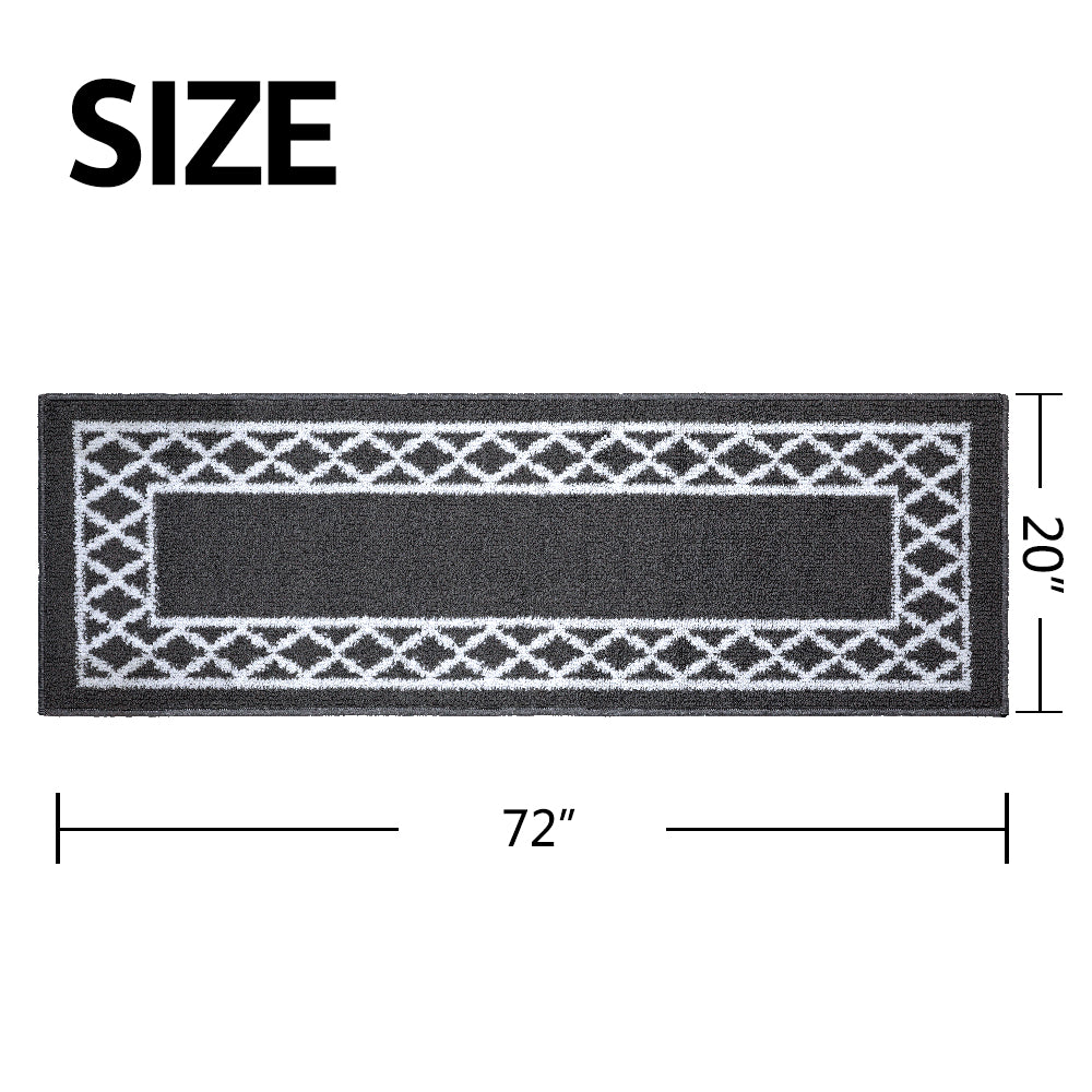 Dimension and Material - Size Available - 20 x 48 Inch, 20 x 60 Inch, 20 x 72 Inch, 26 x 45 Inch. Content is 100% Olefin and Back is 100% Polypropylene with Thermoplastic Rubber Back. Non-Slip Surface: Comes with Build in Anti-Slip Mat with Rubber Back for Maximum Grip to Prevent You to Shifting and Skidding. Fast Water Absorption, Protecting Your Floors from Moisture, Stains and Scratches