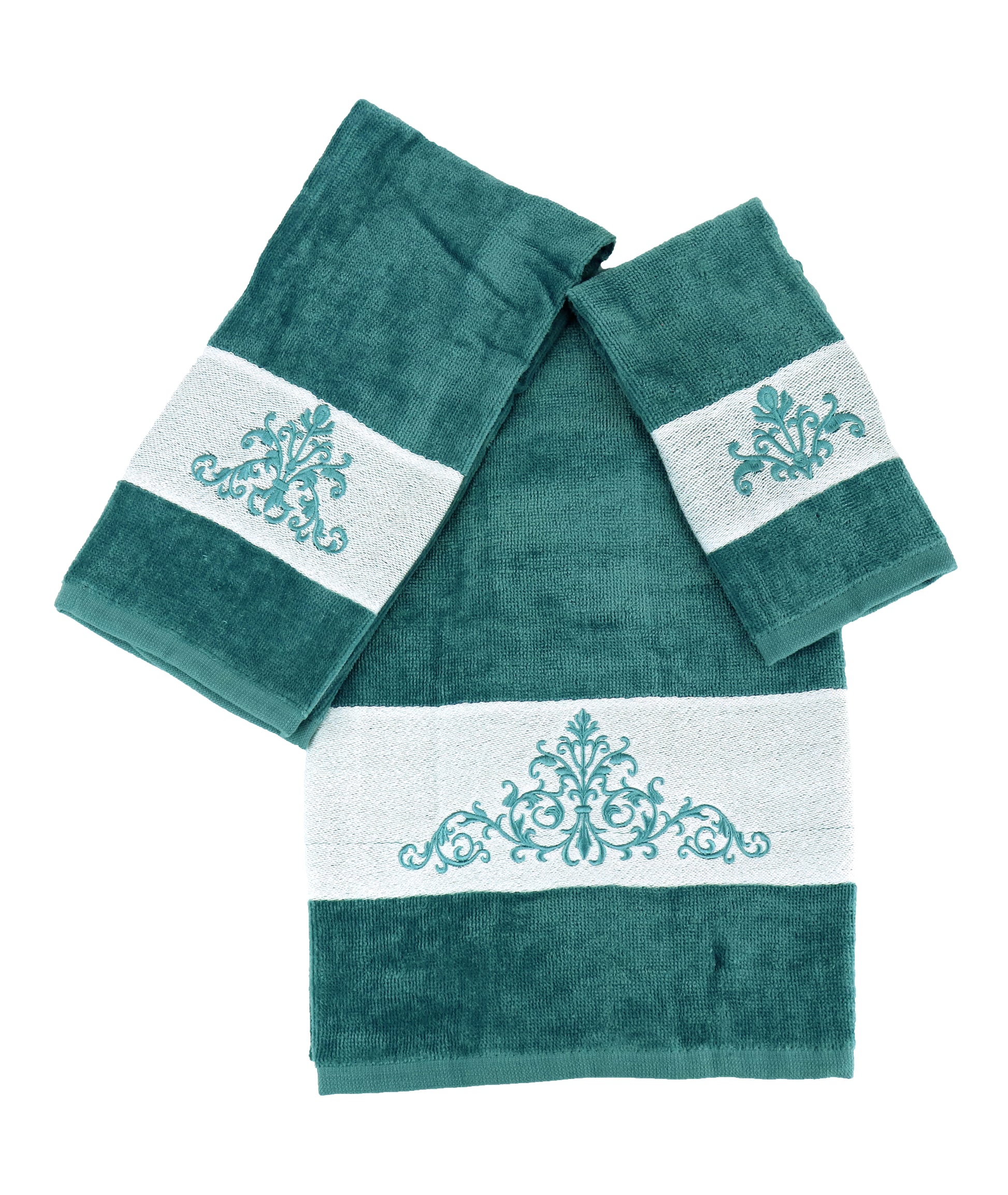 Premium Luxury Decor 100% Cotton Soft Bathroom Modern Embroidered 3 Piece Towel Set, Blazon Pattern