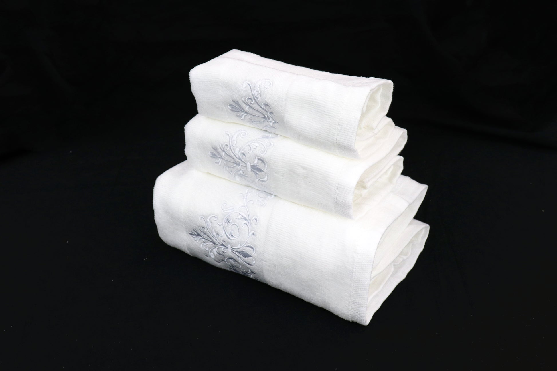 Dimension - This Embroidered Towel Set Included: 1 Piece Bath Towel - 24 x 48 Inch, 1 Piece Hand Towel - 16 x 28 Inch, and 1 Piece Facial Towel - 12 x 12 Inch