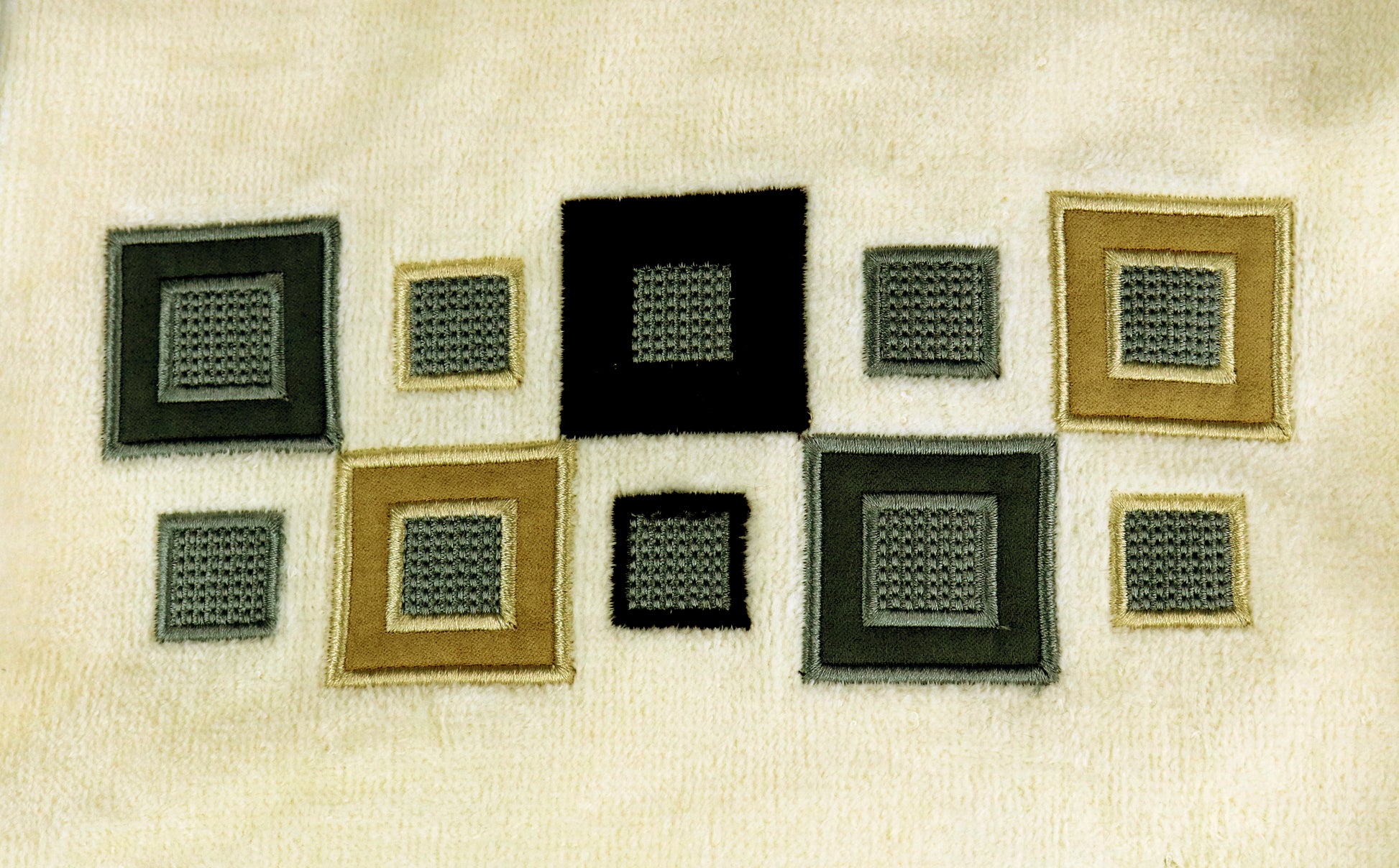 Design - This Modern Style Towel Sets have Black Grey Silver Gold Square with Ivory Base Pattern