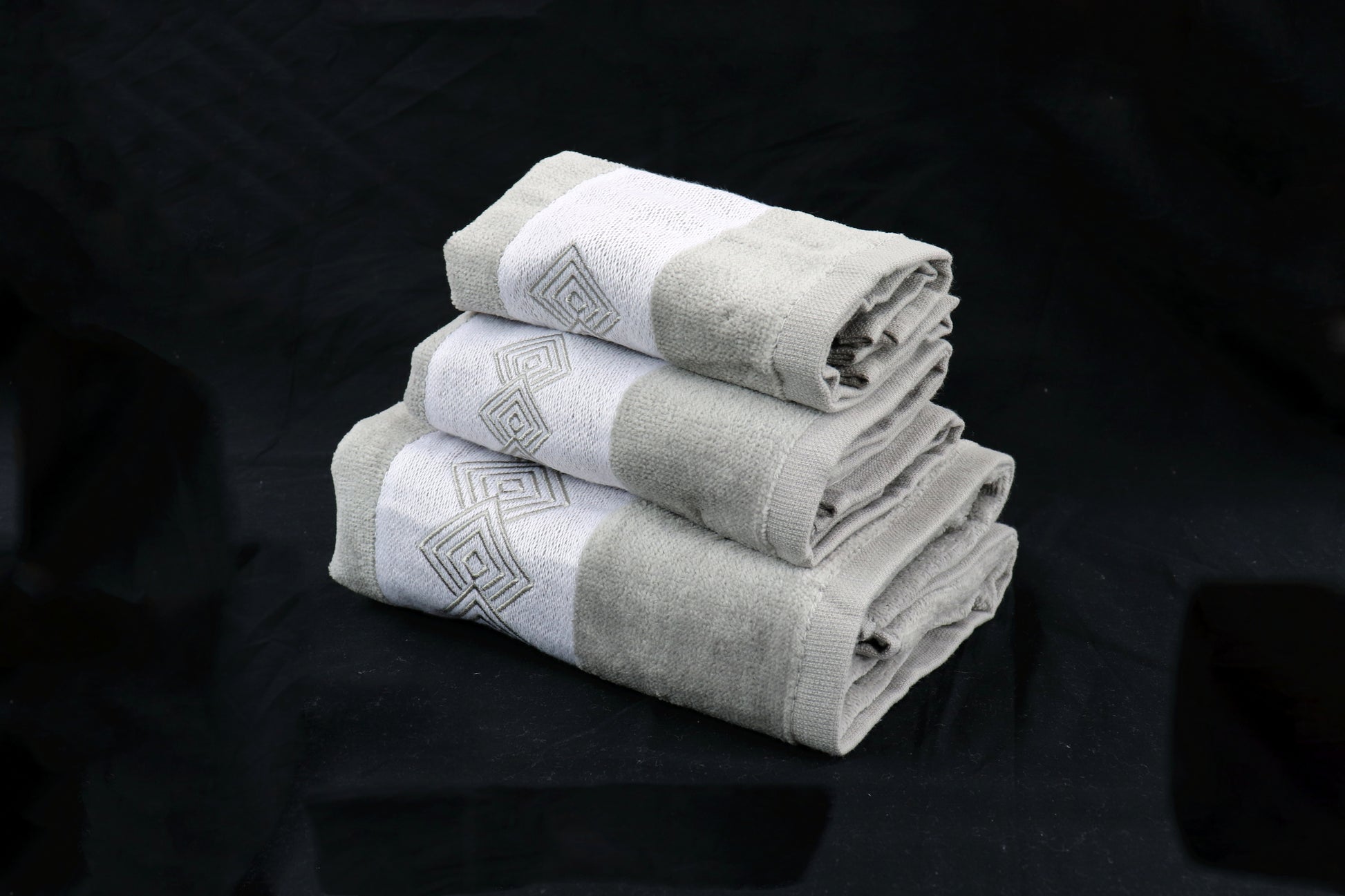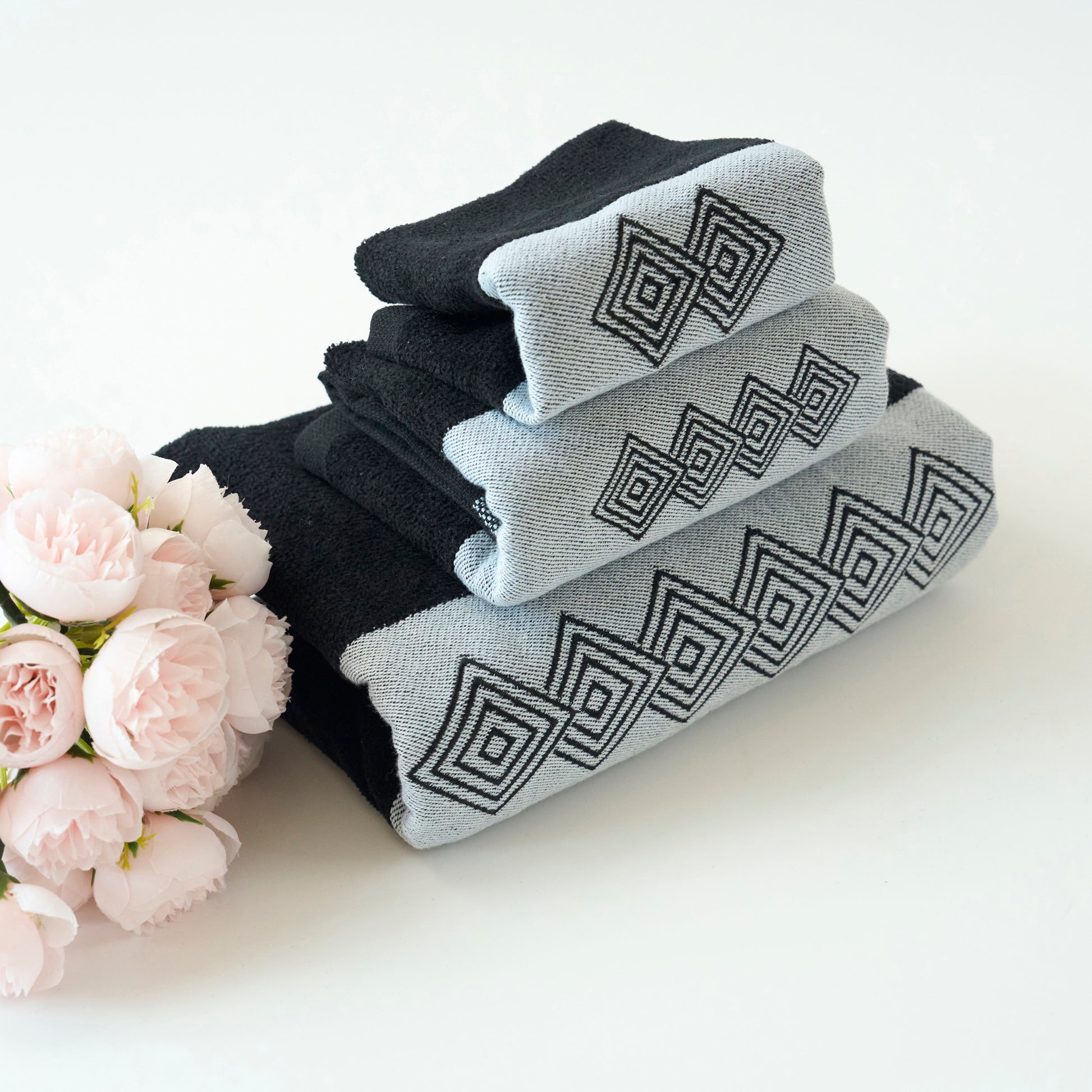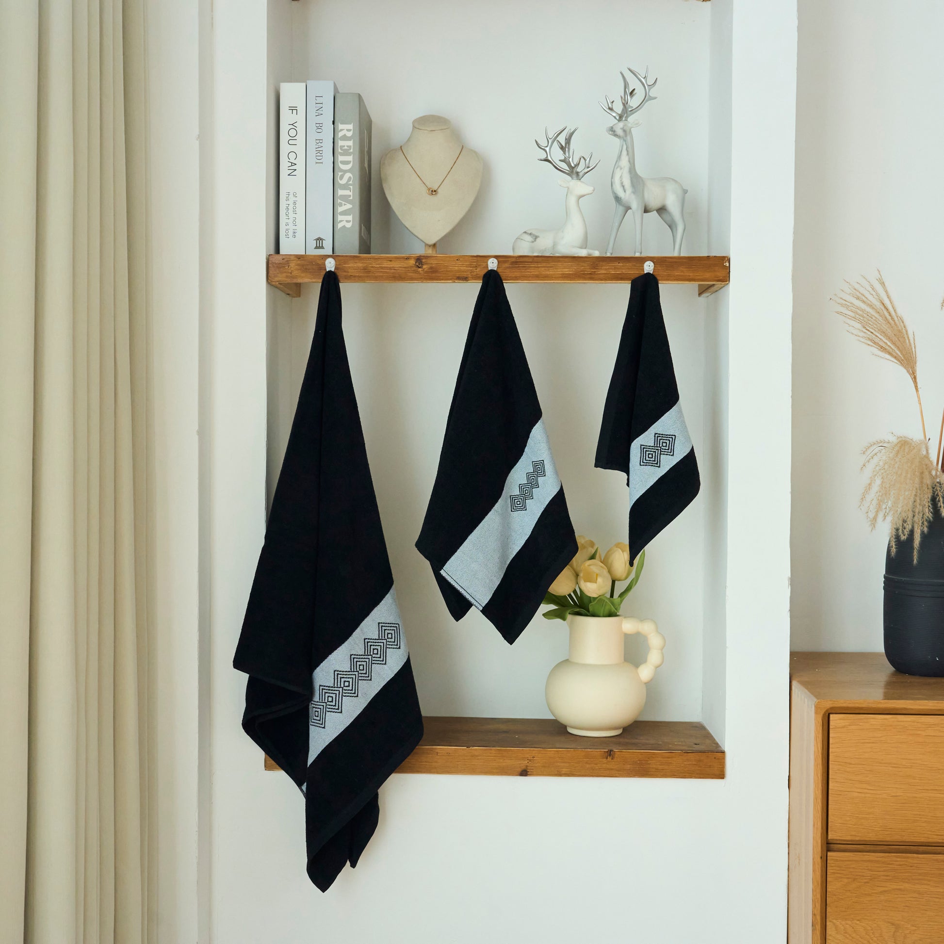 Premium Luxury Decor 100% Cotton Soft Bathroom Modern Embroidered 3 Piece Towel Set, Modern Square Pattern