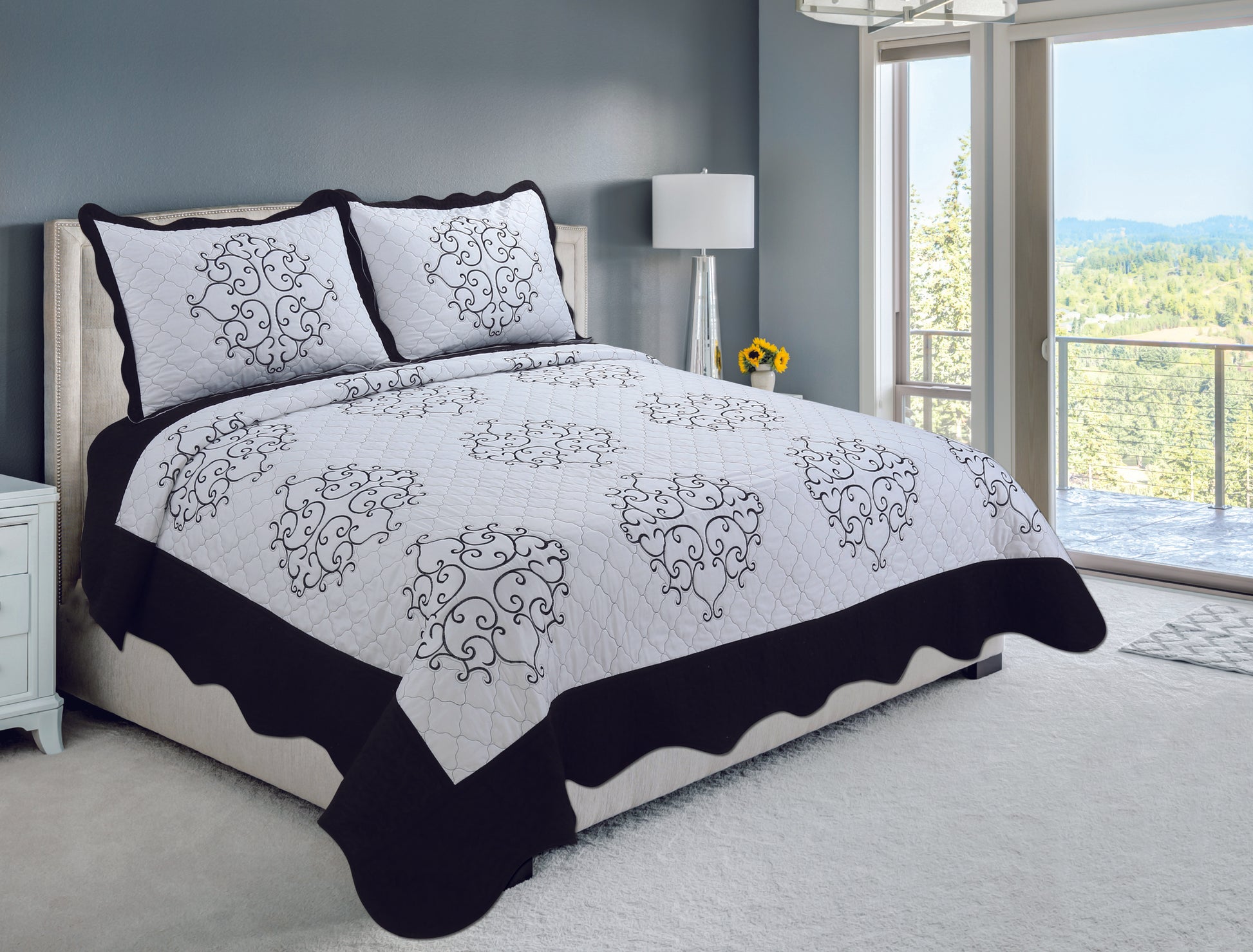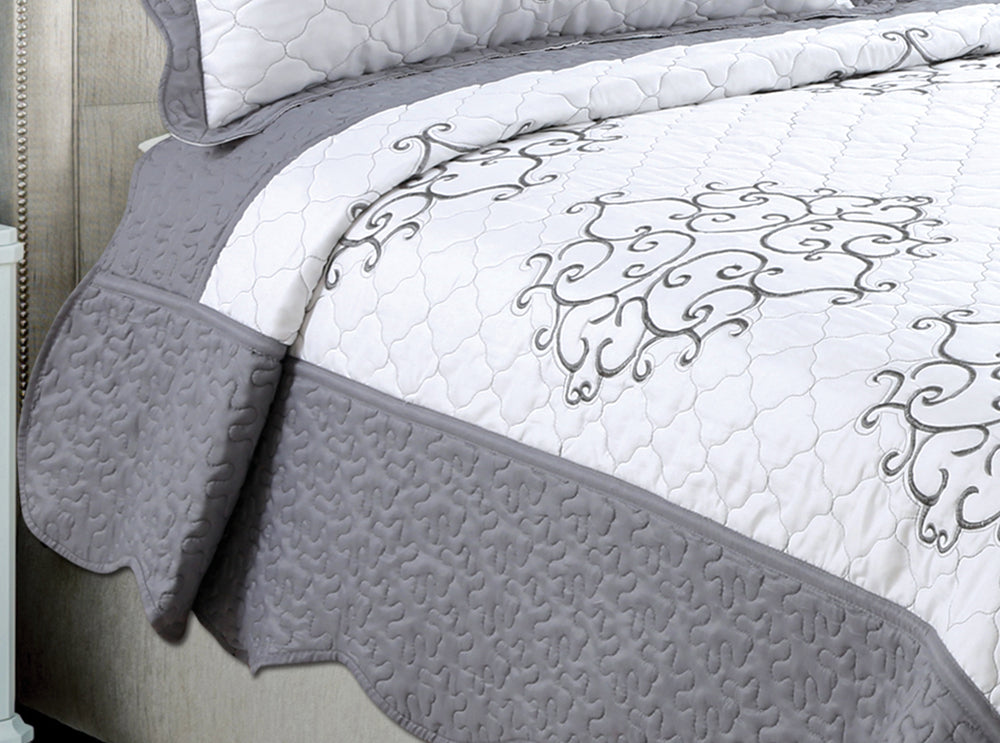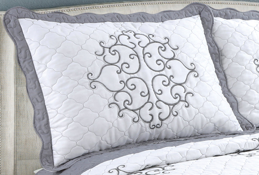 Embroidery Classic Design - This Unique Decorative Embroidered Quilt Sets is Perfect for Home Decoration. Fine Linen Breathable Elegant and Reversible Embroidery Luxury Lightweight Quilt Bedding Set. Perfect Choice for Homeowners with Sophisticated Tastes in Decoration