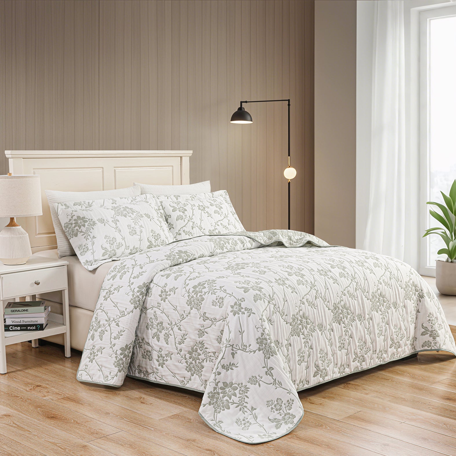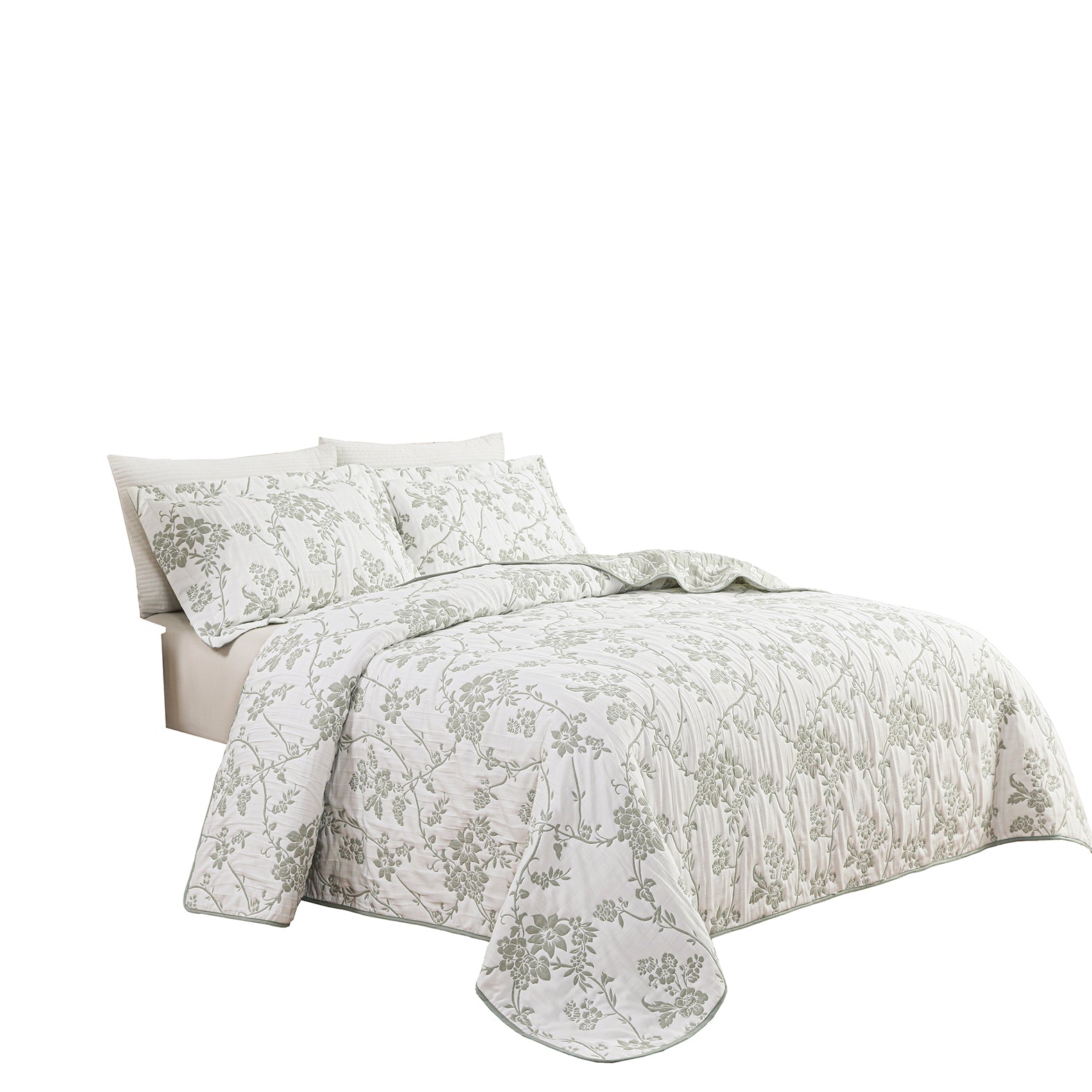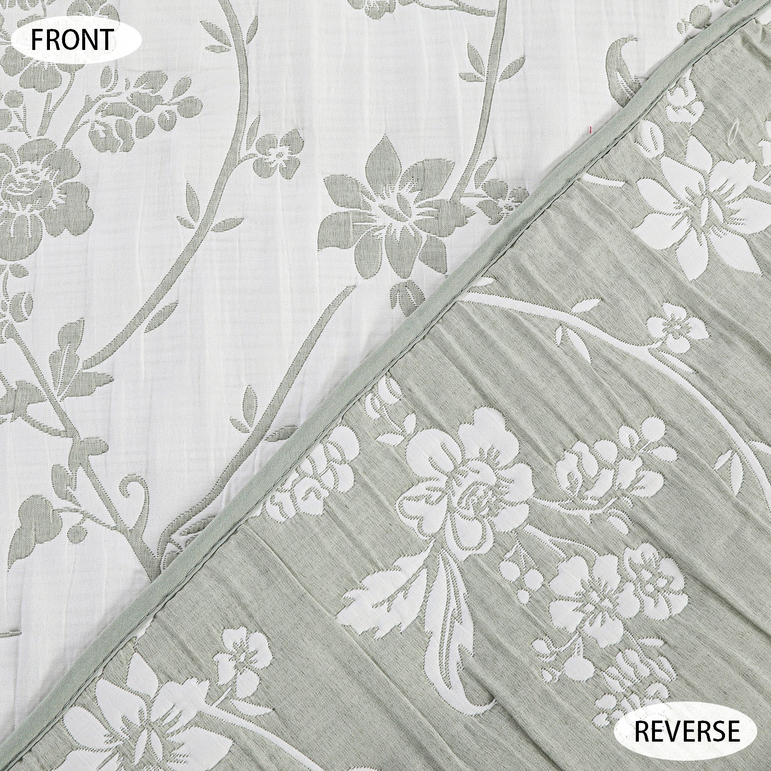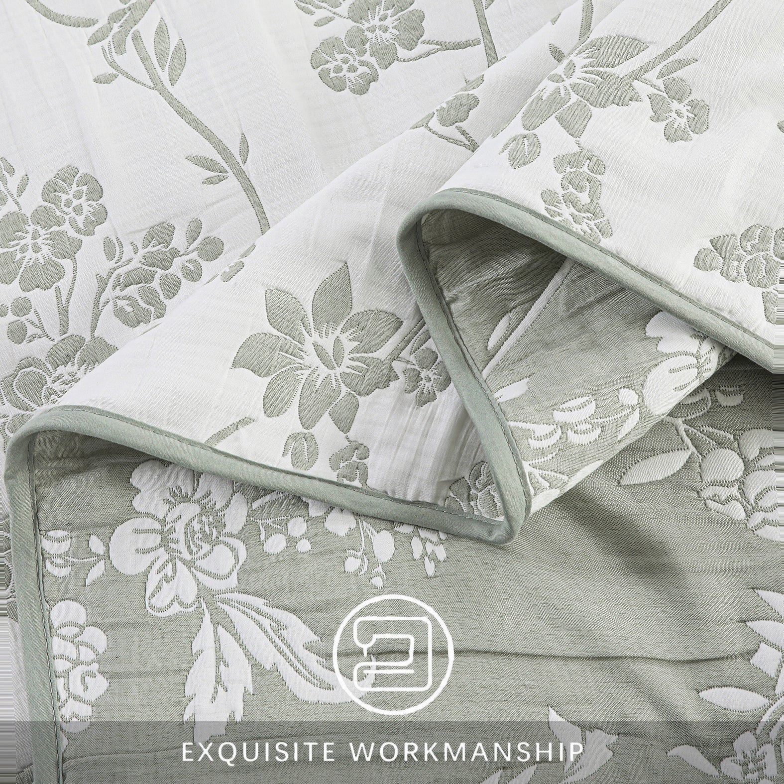 Embroidery Classic Design - This Unique Decorative Jacquard Embroidered Quilt Sets is Perfect for Home Decoration. This Beautiful Green Floral with White Color Base is Fine Linen Breathable Elegant and Reversible Embroidery Luxury Lightweight Quilt Bedding Set. Perfect Choice for Homeowners with Sophisticated Tastes in Decoration