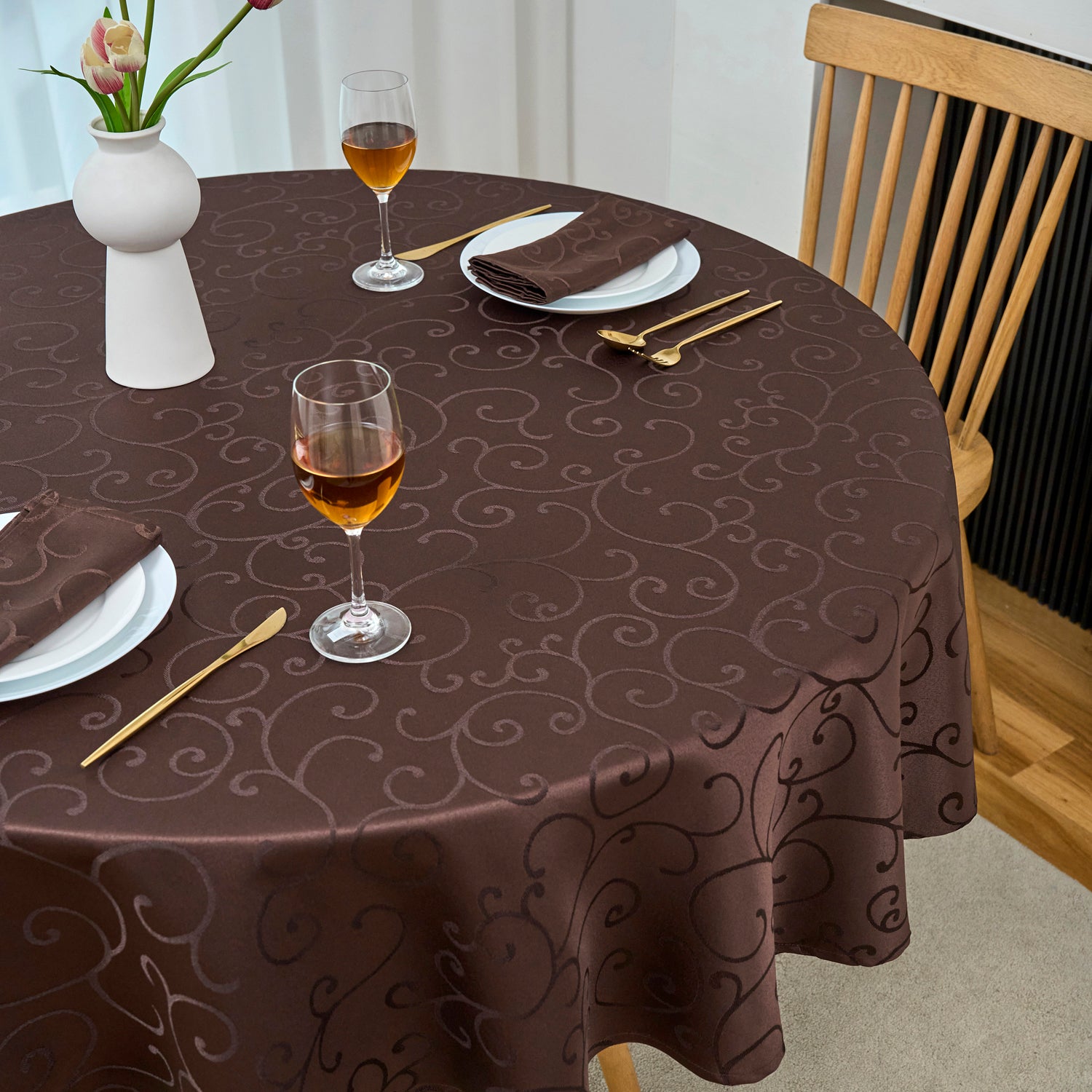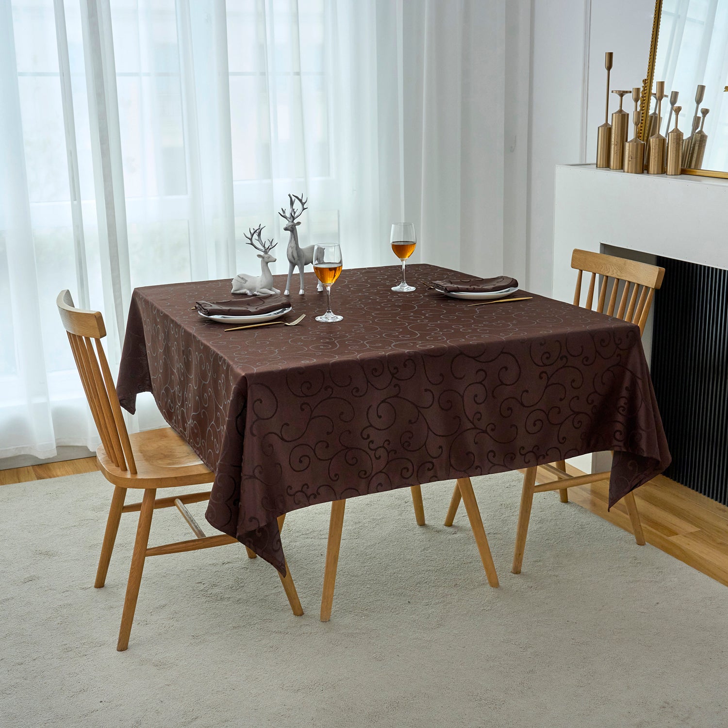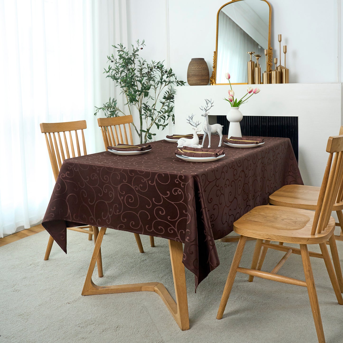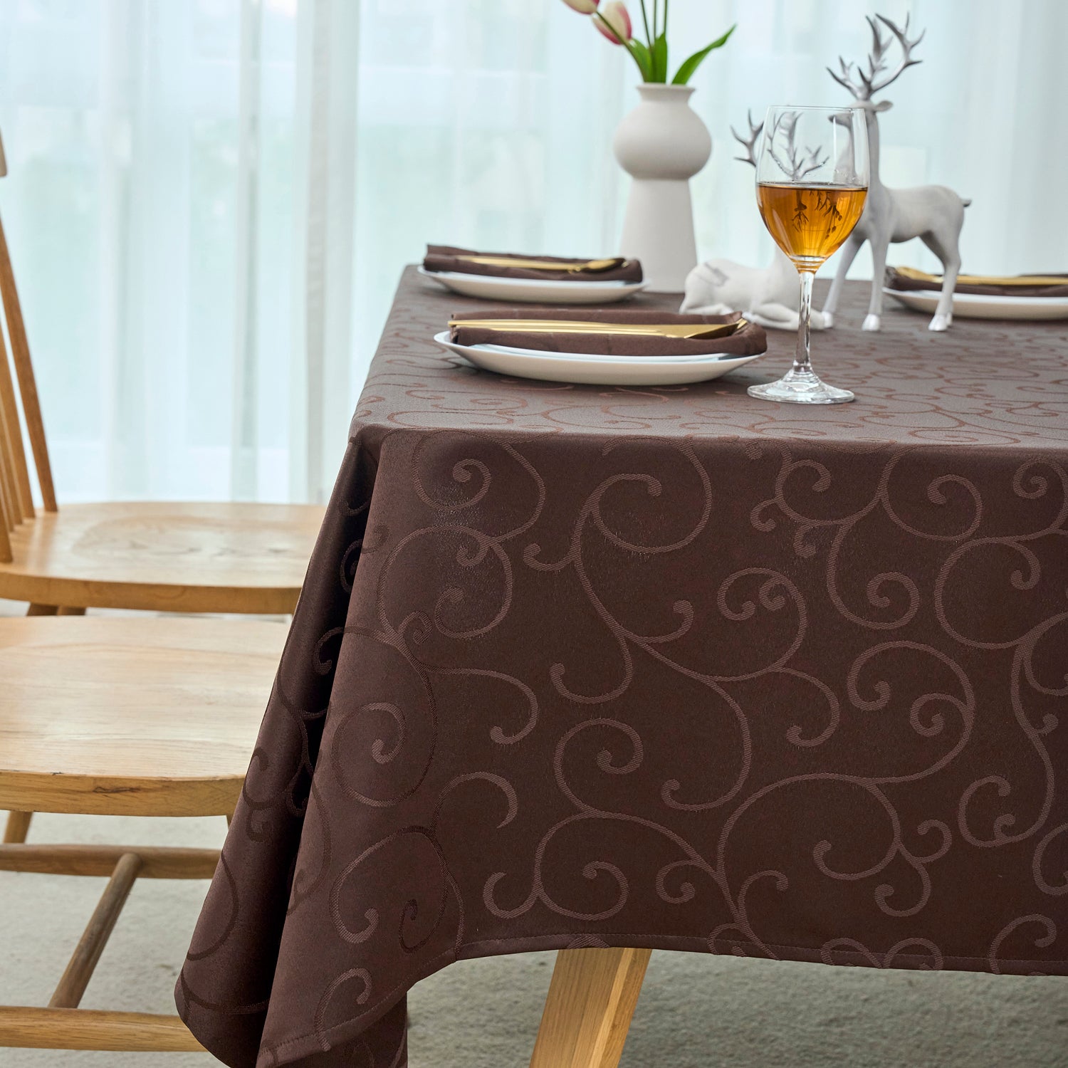 Jacquard Waterproof Thick Luxury Premium Solid Liquid Repellent Stain Resistant Decorative Home Kitchen Tablecloth, Brown Color