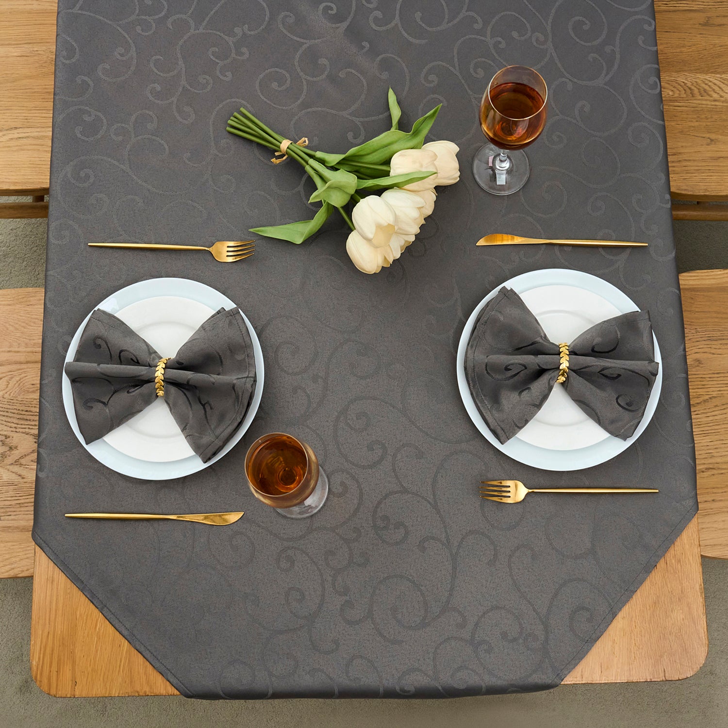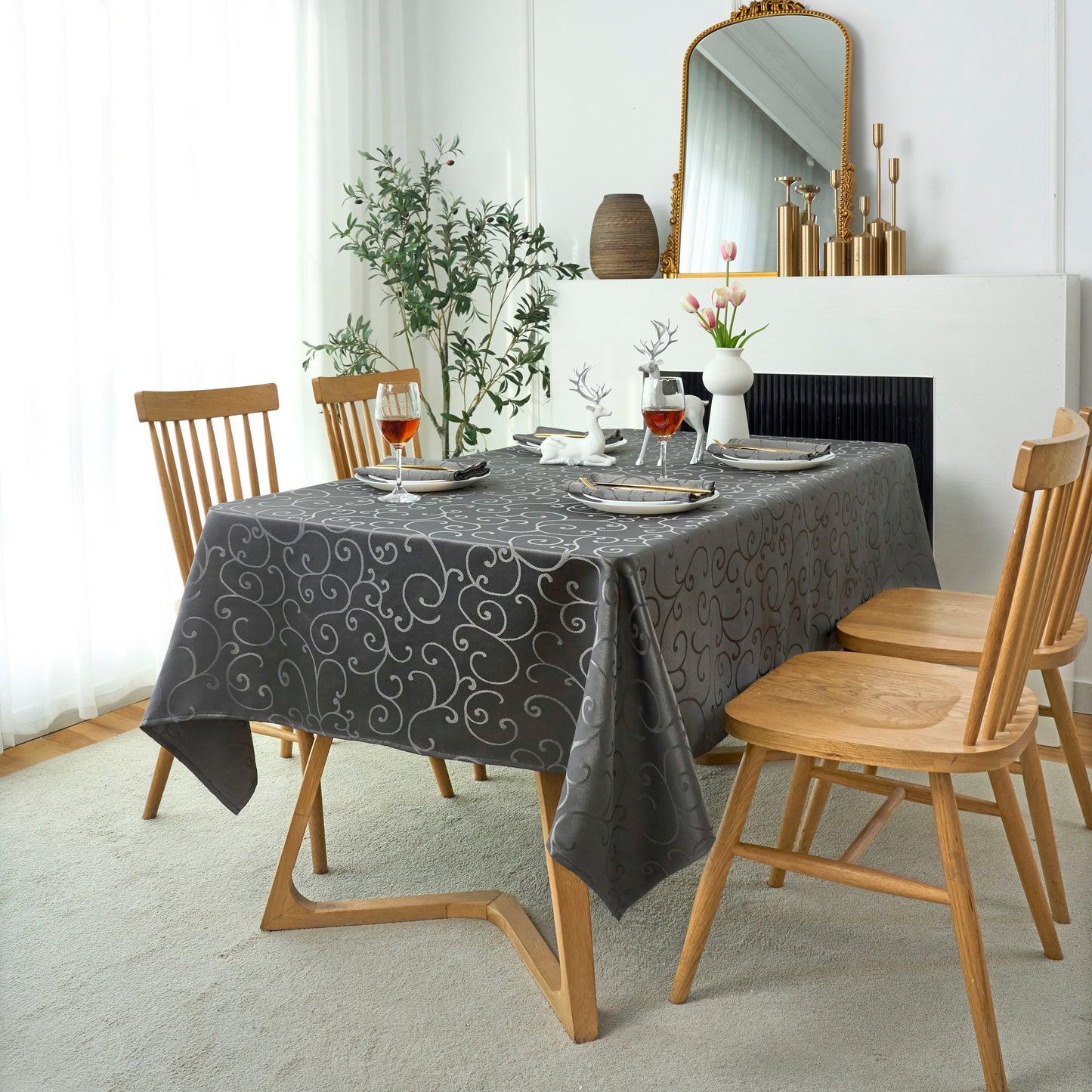 Jacquard Waterproof Thick Luxury Premium Solid Liquid Repellent Stain Resistant Decorative Home Kitchen Tablecloth, Charcoal Grey Color
