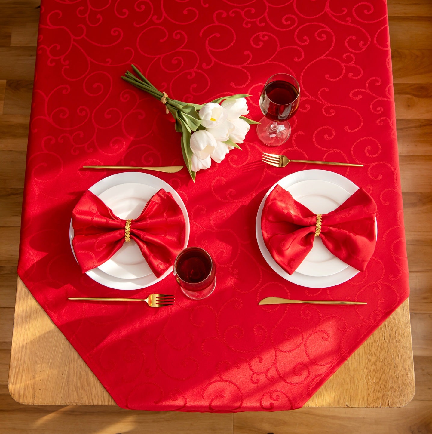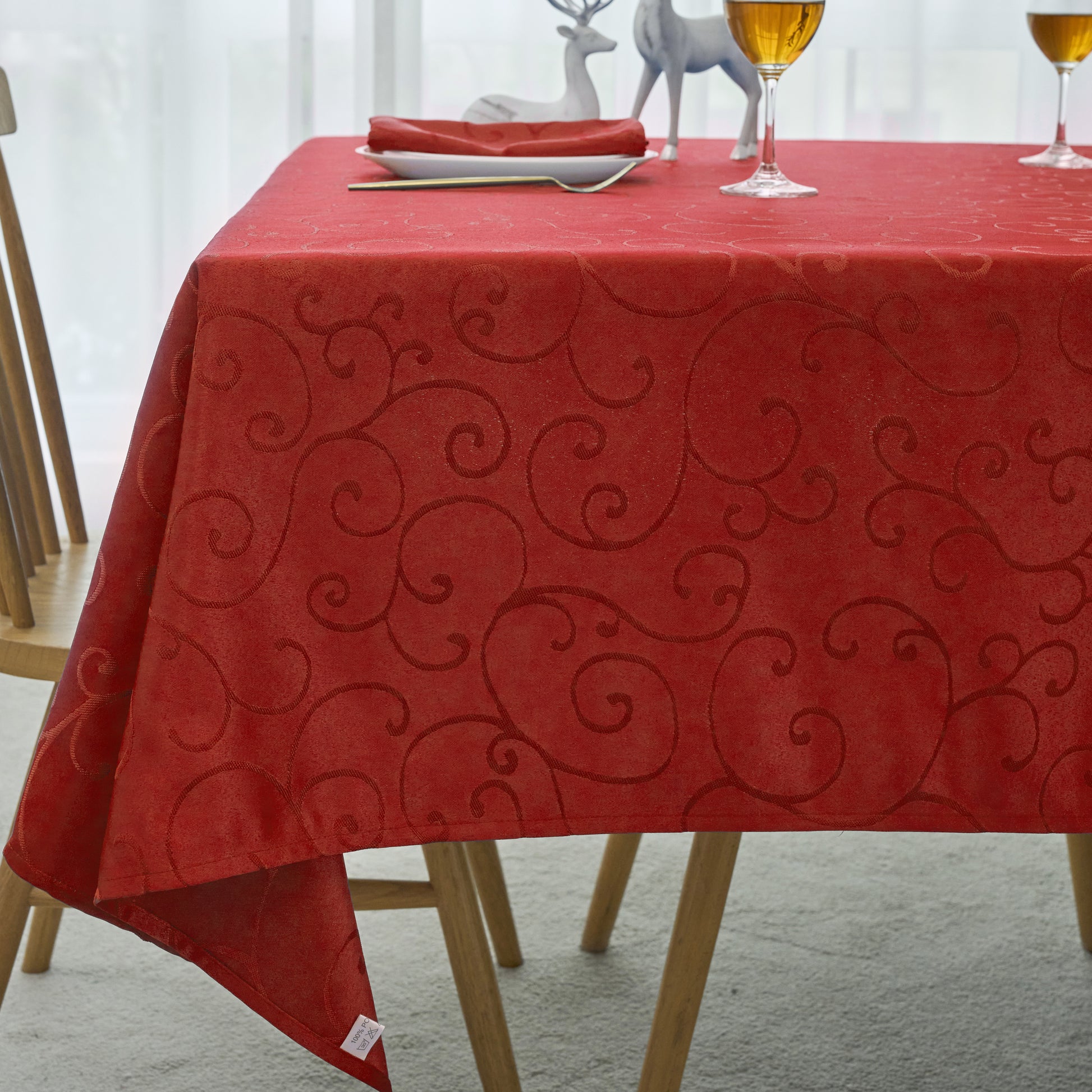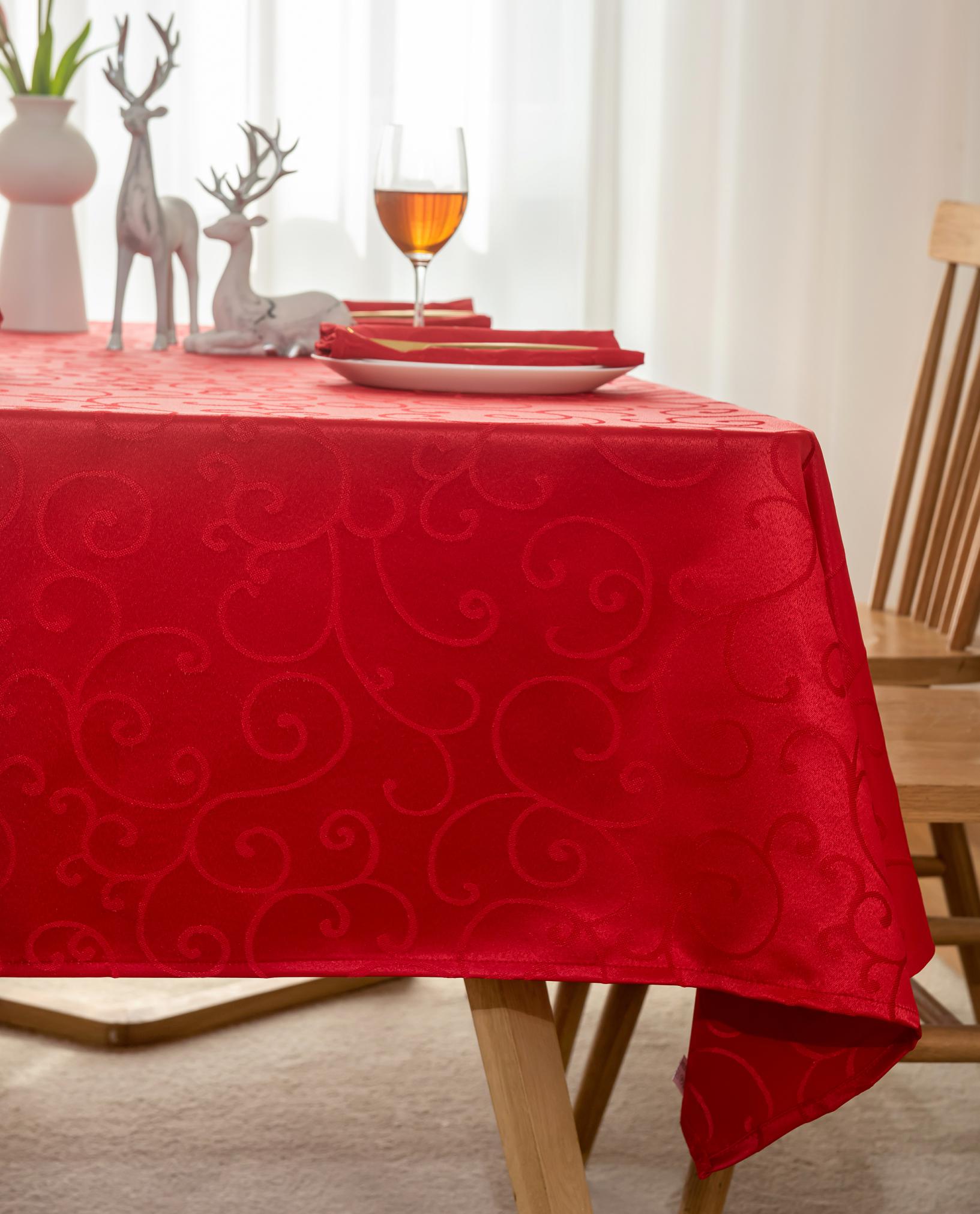 Jacquard Waterproof Thick Luxury Premium Solid Liquid Repellent Stain Resistant Decorative Home Kitchen Tablecloth, Red Color