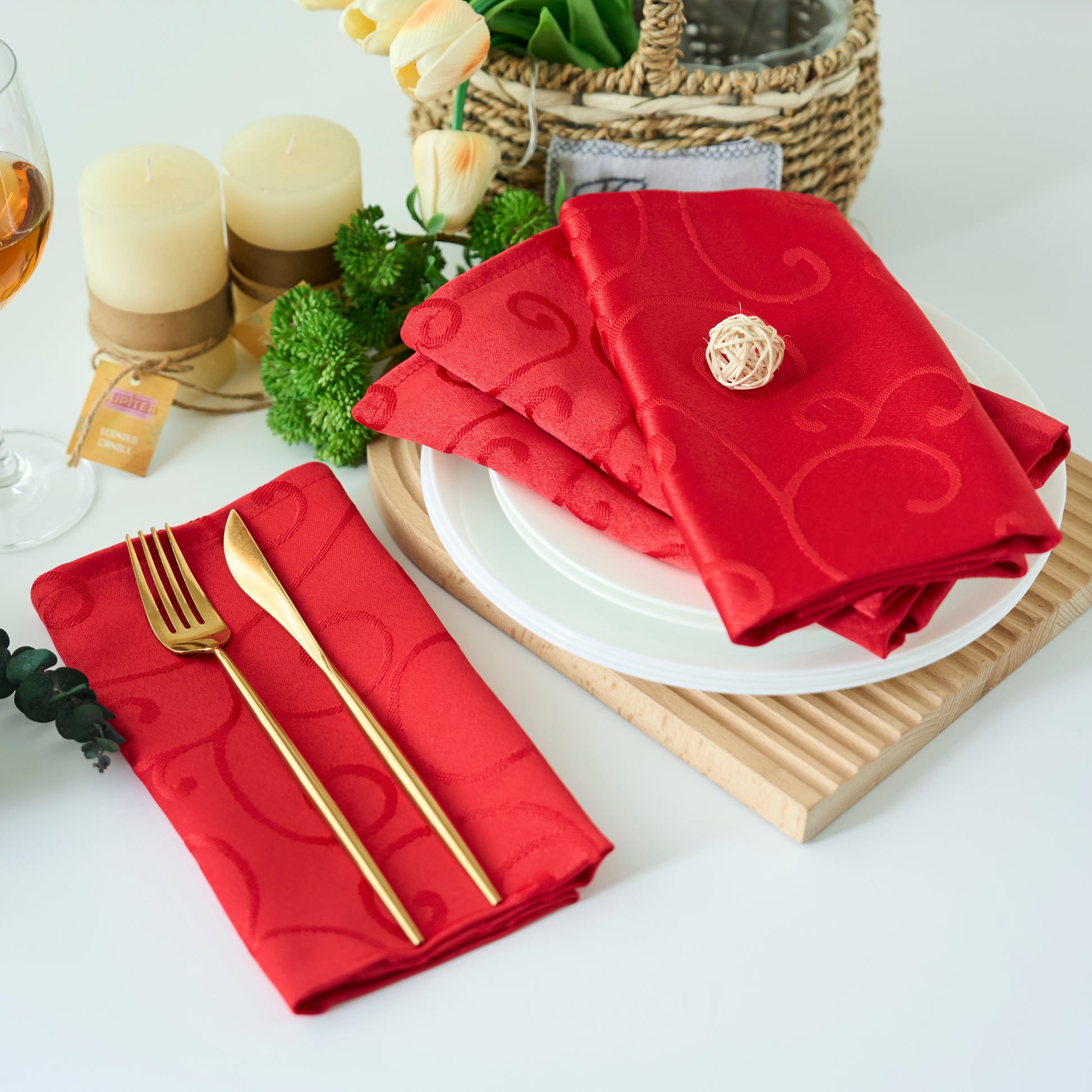 Design - Elegant Jacquard Seamless One Piece Design. Neatly Finished Hemmed Edge. Smooth Surface and Suitable for Any Table Setting Whether Casual or Formal. This Classic Textured Fabric Design is Perfect for Your Home Decor, Weddings, Christmas, Birthday, Banquet, or Any Holiday Family Party