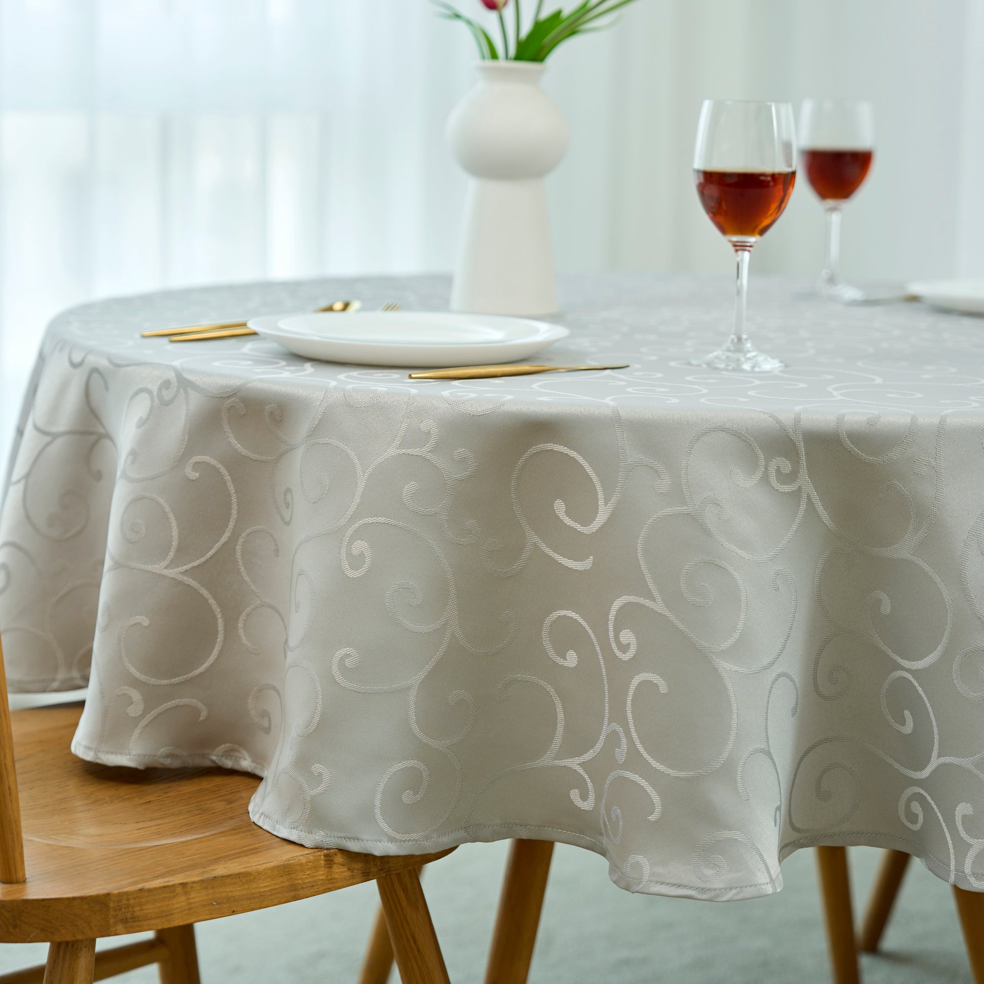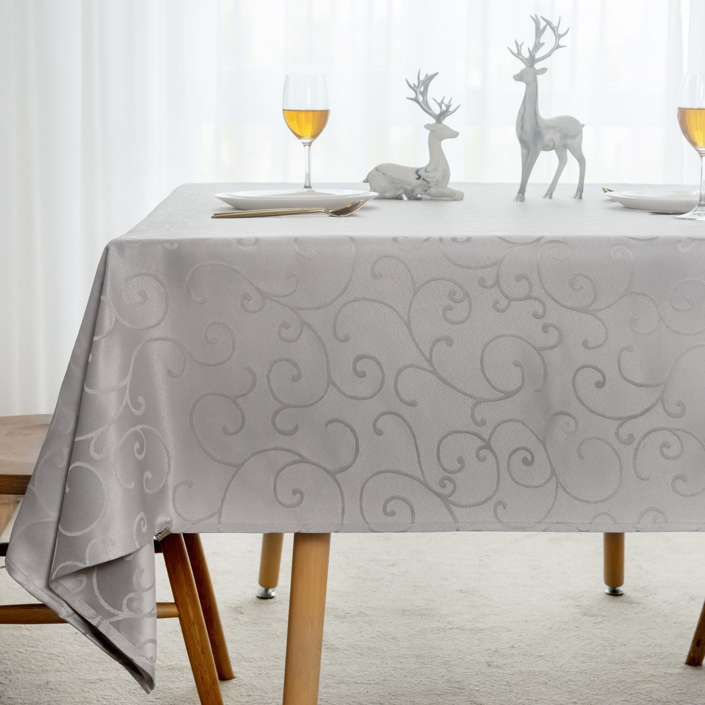Jacquard Waterproof Thick Luxury Premium Solid Liquid Repellent Stain Resistant Decorative Home Kitchen Tablecloth, Silver Color