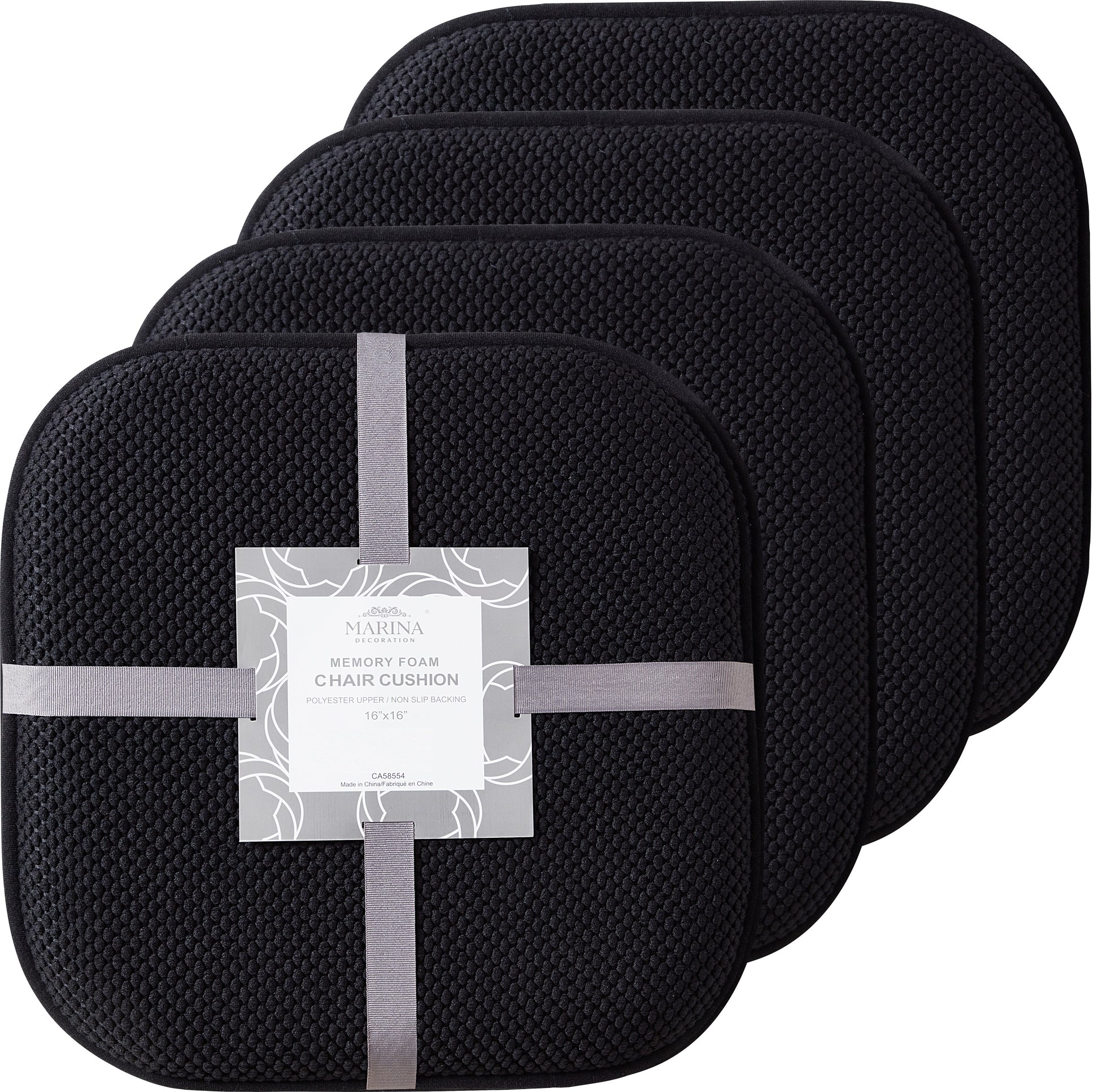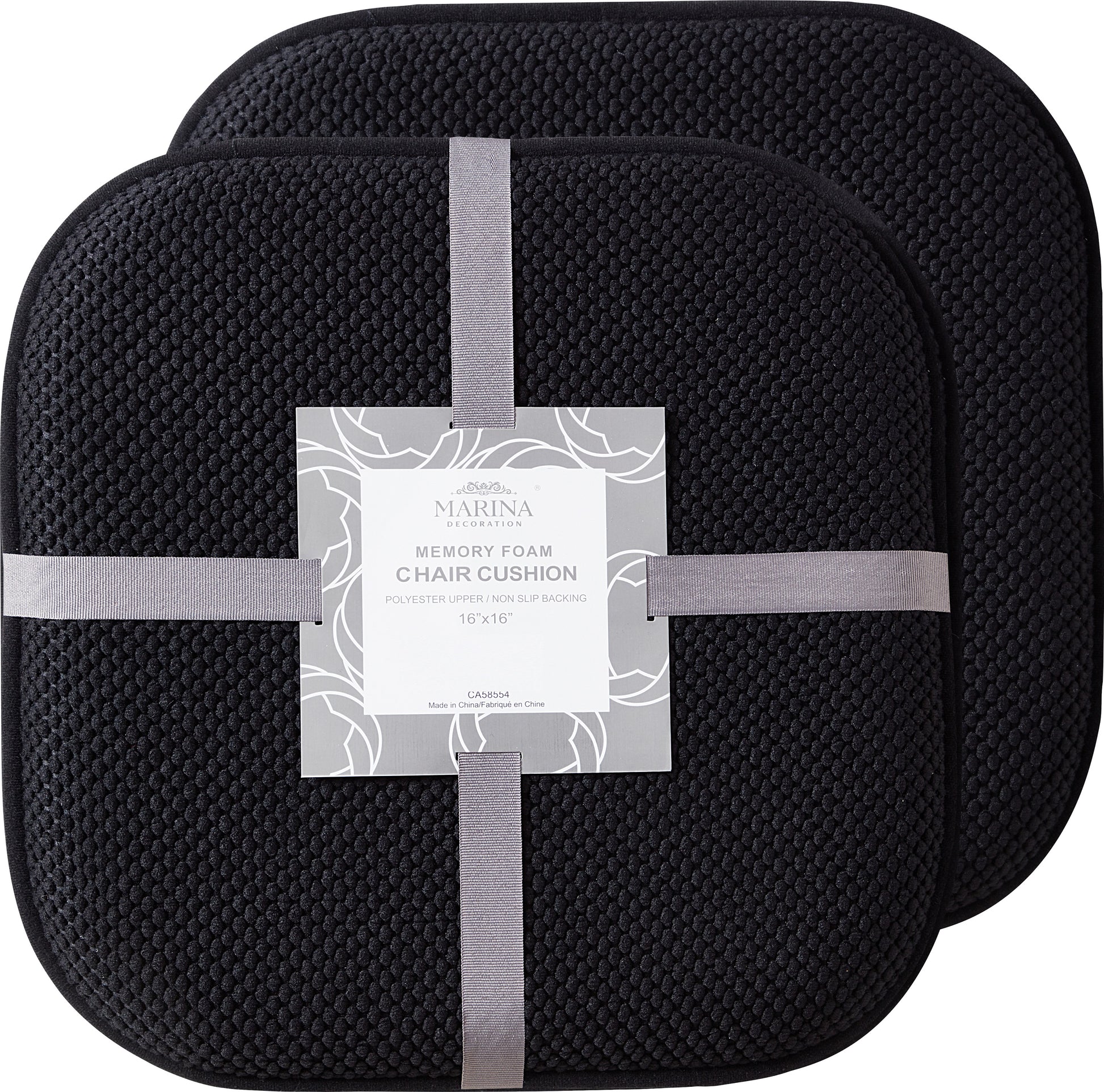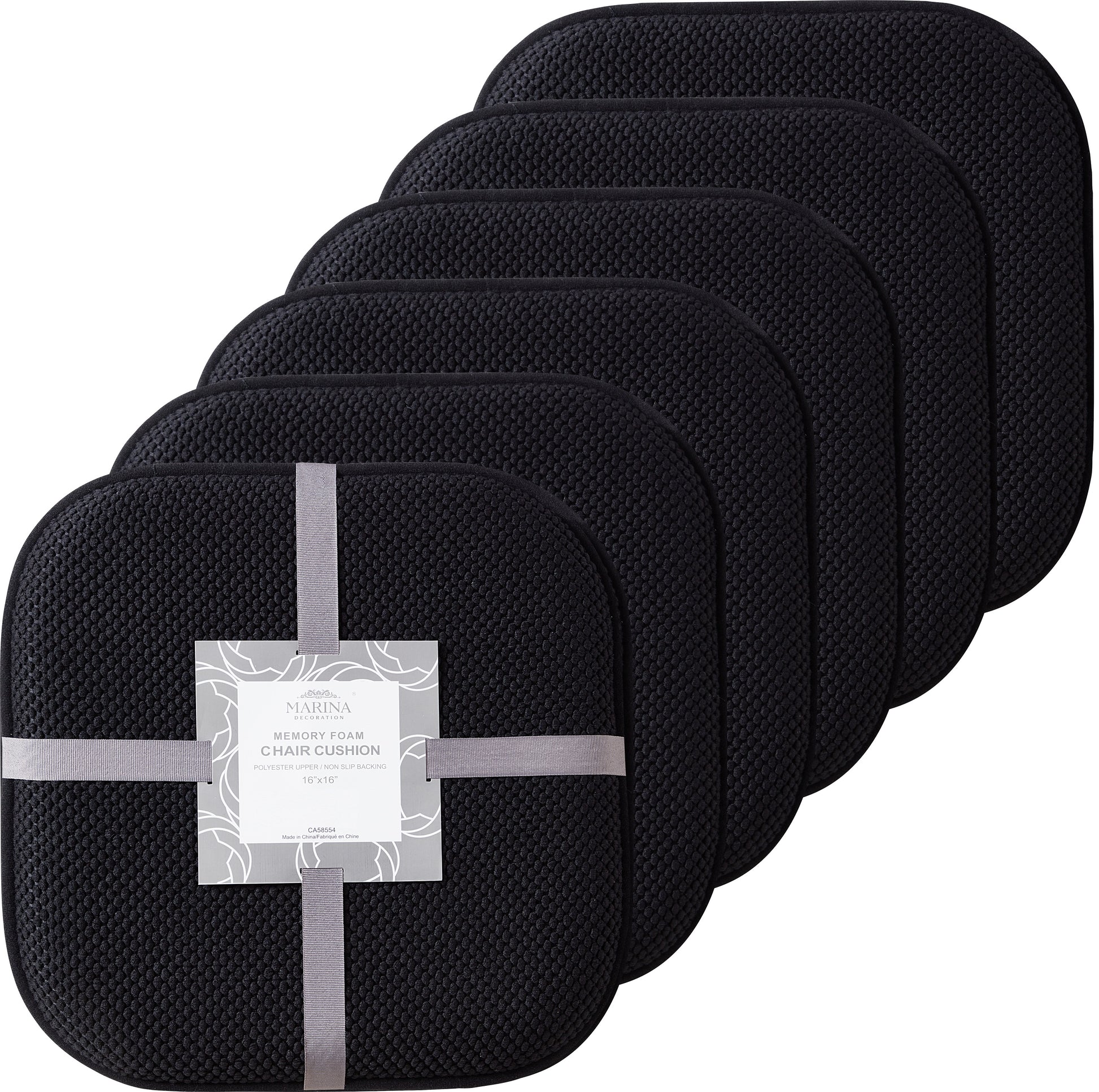 Memory Foam Honeycomb Premium Thick Chair Nonslip Rubber Back Seat Pads Kitchen Chair Cushion Set 16 x 16 Inch, Black