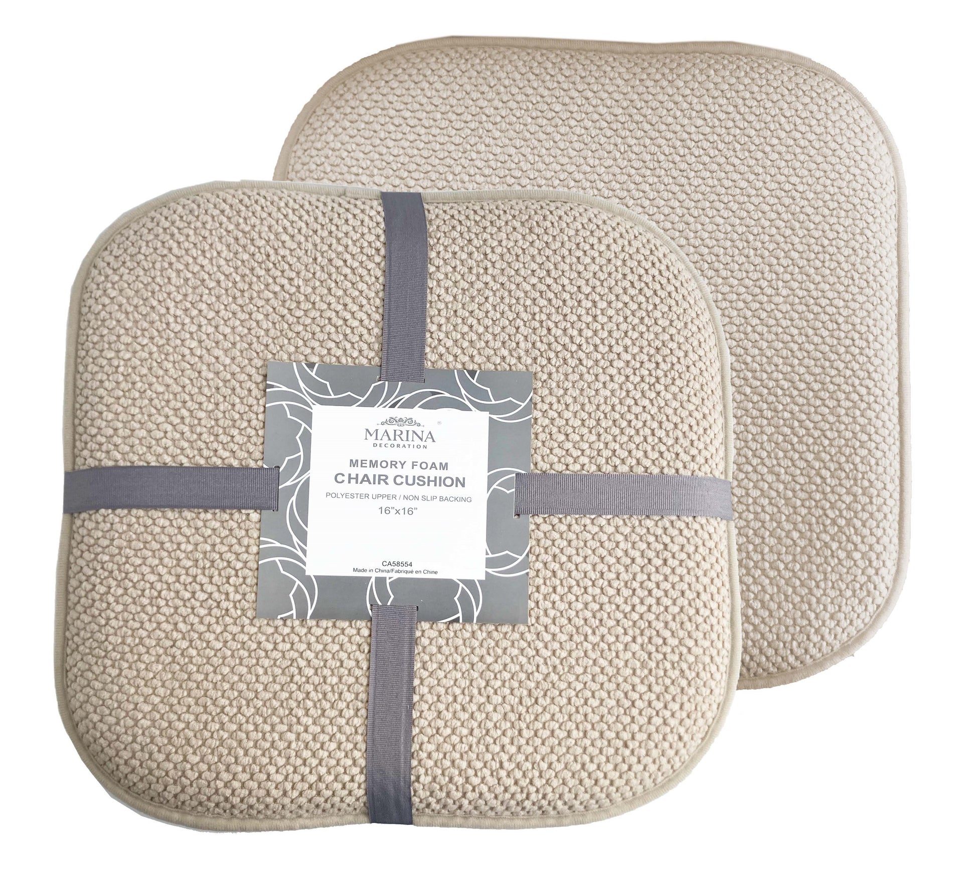 Memory Foam Honeycomb Premium Thick Chair Nonslip Rubber Back Seat Pads Kitchen Chair Cushion Set 16 x 16 Inch, Linen