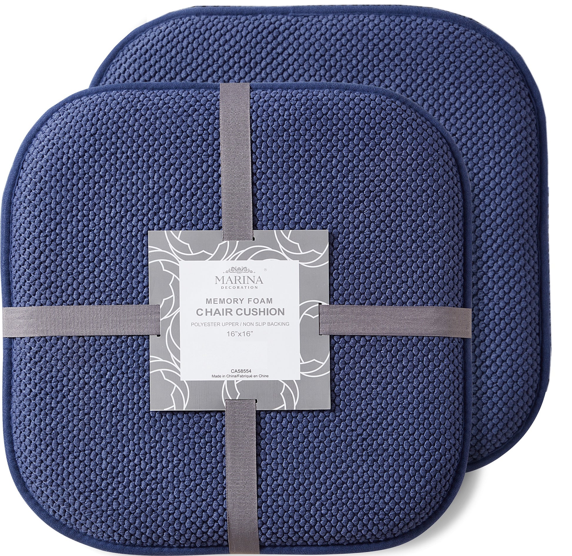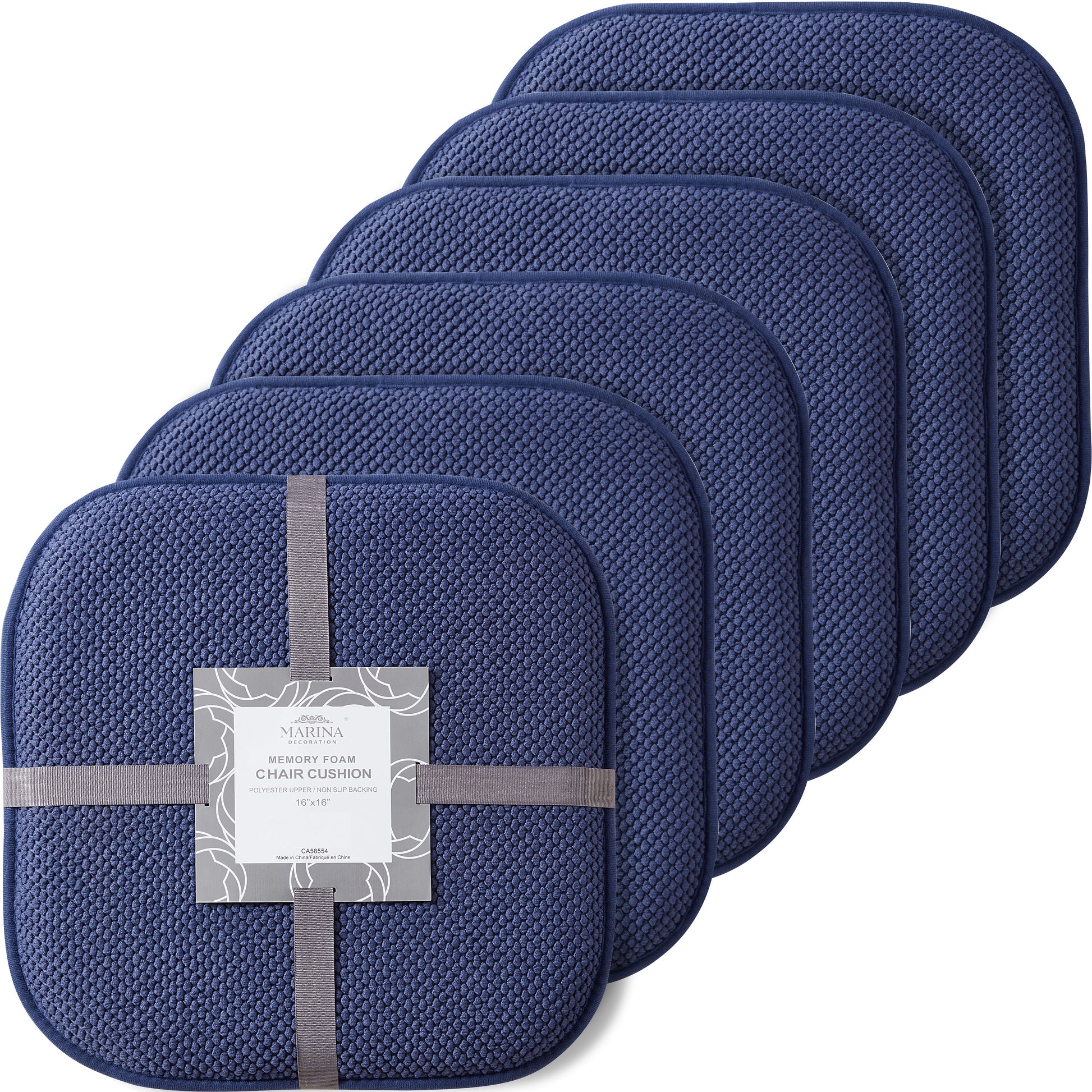 Memory Foam Honeycomb Premium Thick Chair Nonslip Rubber Back Seat Pads Kitchen Chair Cushion Set 16 x 16 Inch, Navy Blue
