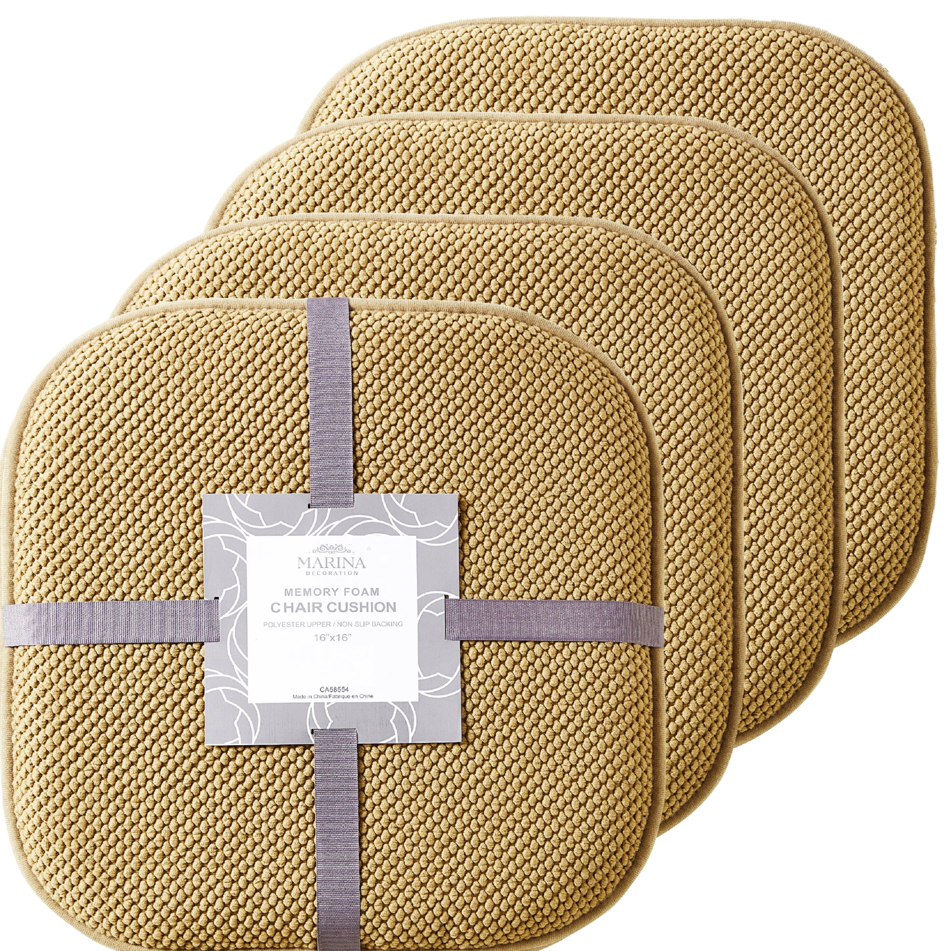 Memory Foam Honeycomb Premium Thick Chair Nonslip Rubber Back Seat Pads Kitchen Chair Cushion Set 16 x 16 Inch, Taupe
